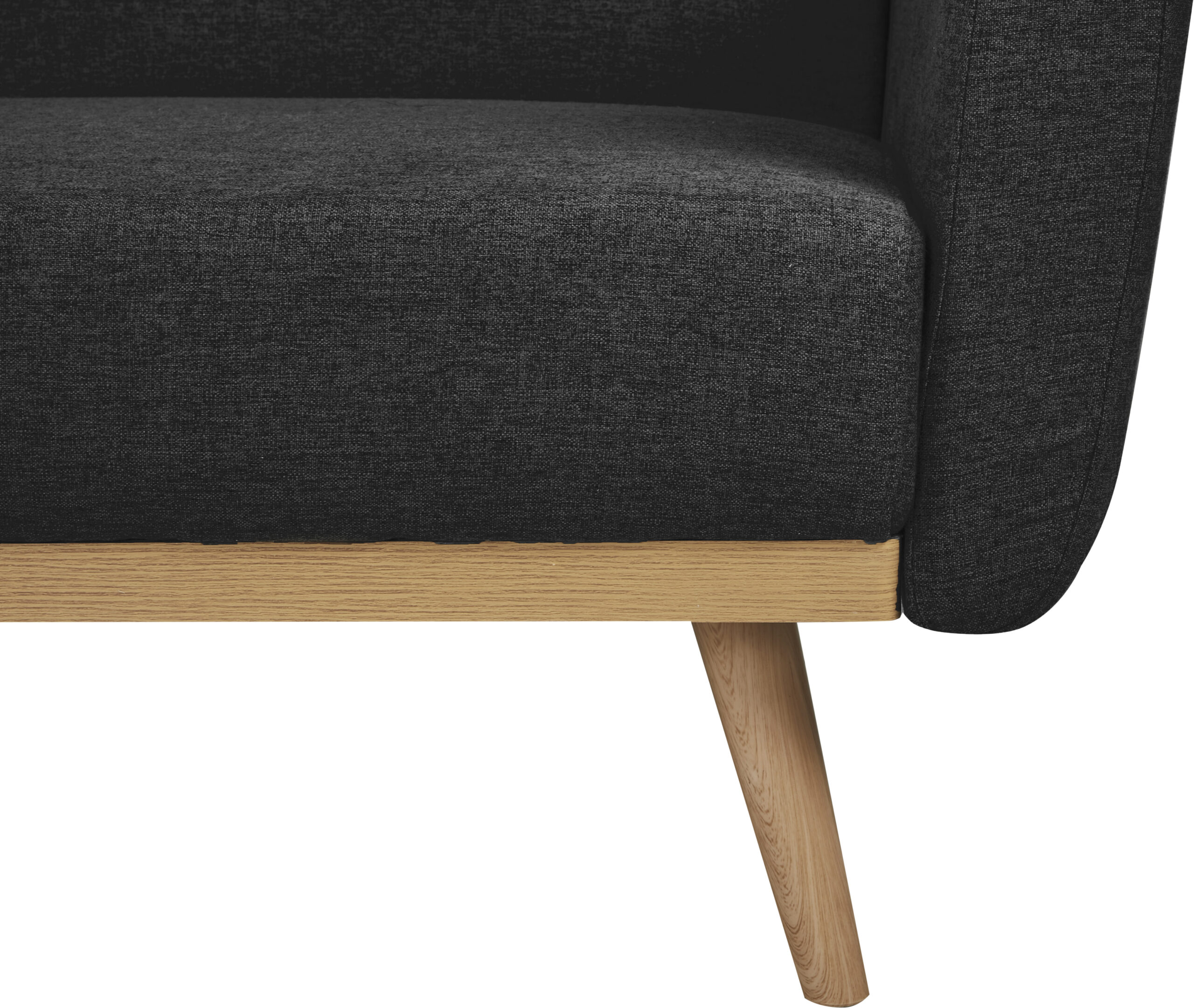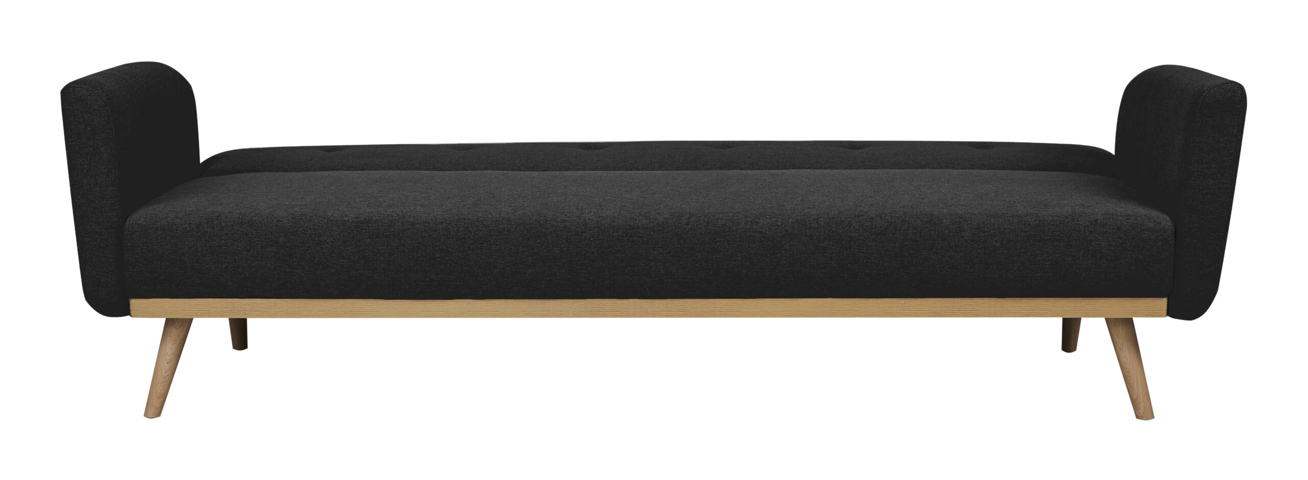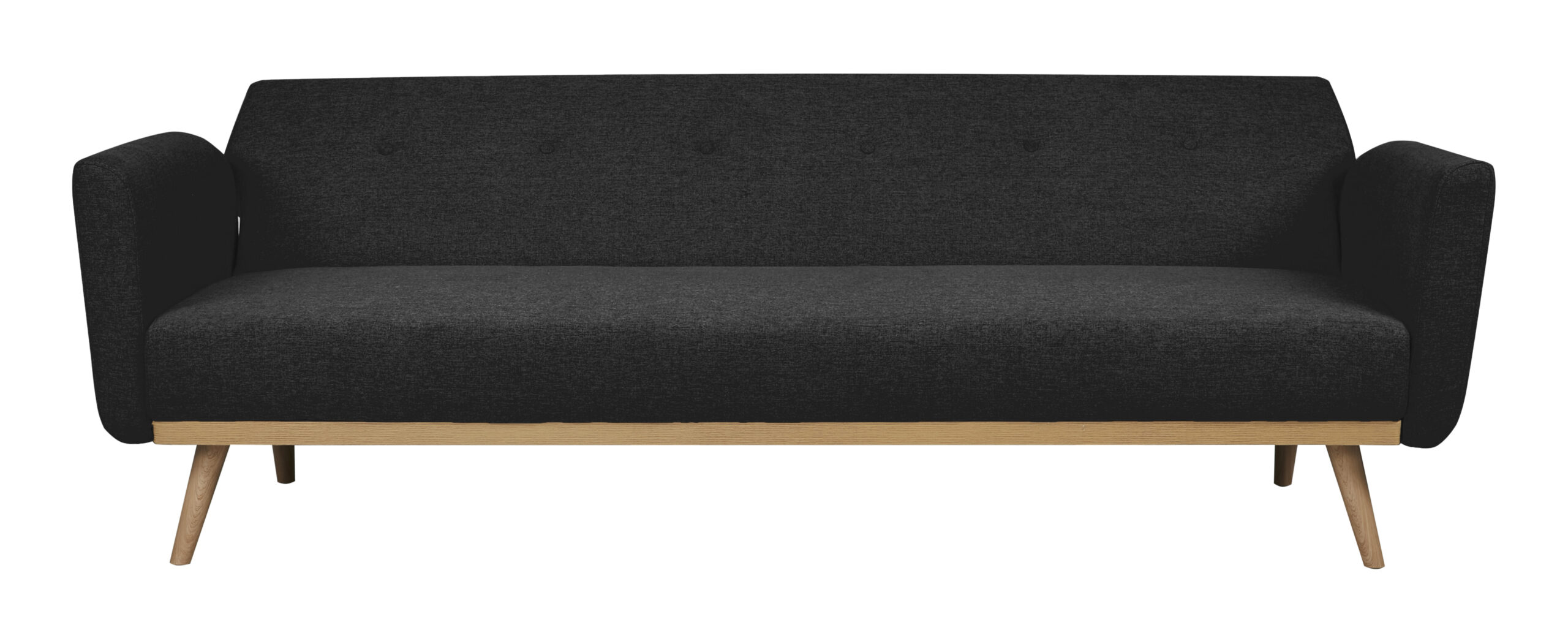 De 3-zits slaapbank wordt gepresenteerd in een stijlvolle, fijne structuurstof in zwart en stevige massief houten poten. Door de vouwfunctie van de rugleuning kan de bank snel worden omgebouwd tot slaapbank. Het massief houten frame zorgt niet alleen voor een stevige stand, maar biedt ook een geweldig contrast met de stoffen bekleding. De bekleding gaat helemaal rond en de rug is echt. De bekleding en de zit- en ligfunctie zorgen voor een aangenaam zit- of ligcomfort van een klasse apart. Het knoopstiksel op de rugleuning is een bijzonder hoogtepunt. Dit designjuweeltje wordt niet alleen een visueel hoogtepunt in je huis, maar ook je nieuwe plek van welzijn.
