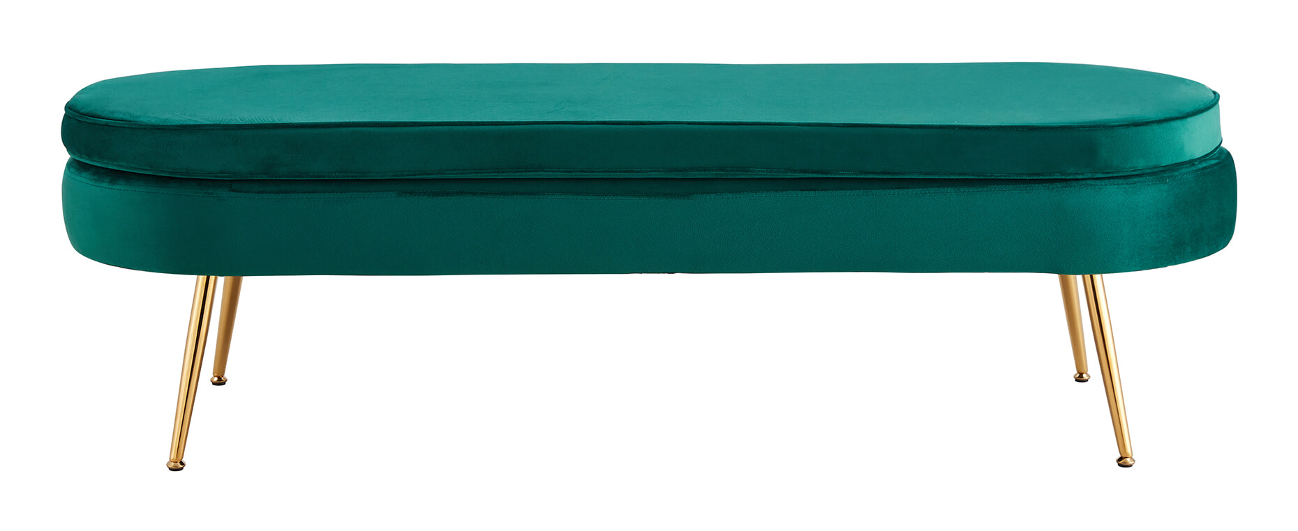 Glamoureus, elegant en praktisch – de poef met een stijlvolle stoffen bekleding in fluweel-look. Het 4-voets frame van goudkleurig metaal zorgt niet alleen voor een stevige stand, maar vormt ook een mooi contrast met de bekleding van de poef. Dankzij de beklede zitting is dit meubel ideaal als extra zitplaats of als voetensteun voor een bank. Maar deze voetenbank komt ook goed tot zijn recht als hij individueel wordt opgesteld. De ovale vorm zorgt voor een zachte uitstraling. Deze fauteuil kruk is een echt juweeltje en zal een visueel hoogtepunt in je huis worden.