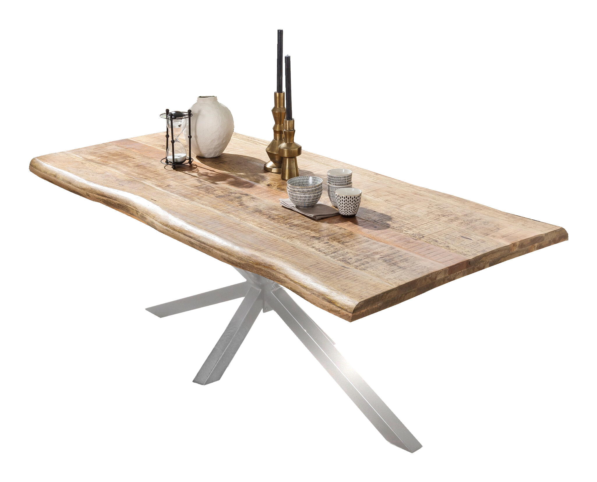 Artistiq Boomstam Eettafel 'Rochelle' Mangohout, 220 x 100cm, kleur Zilver