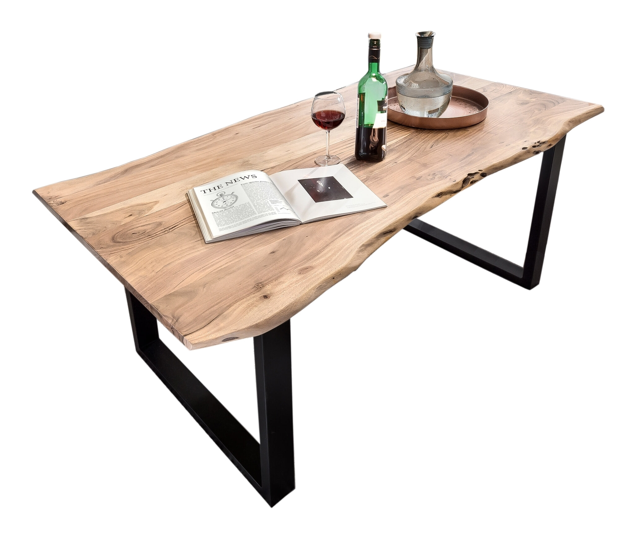 Eettafels met echte boomranden zijn de perfecte keuze voor een eetkamer met karakter. Het expressieve tafelblad van massief acaciahout is net zo individueel als jouw woonstijl. De duidelijk zichtbare houtnerf en de natuurlijk gegroeide vorm van de twee lange tafelranden zijn kenmerken die je kamer niet alleen huiselijker maken, want in combinatie met het zwart gepoedercoate metalen frame heeft het ook een tijdloos moderne uitstraling.