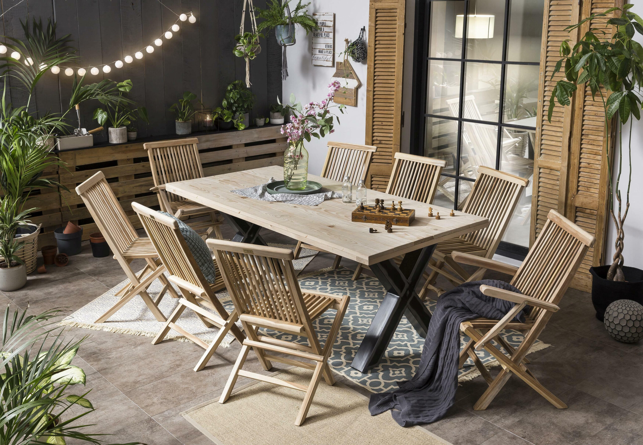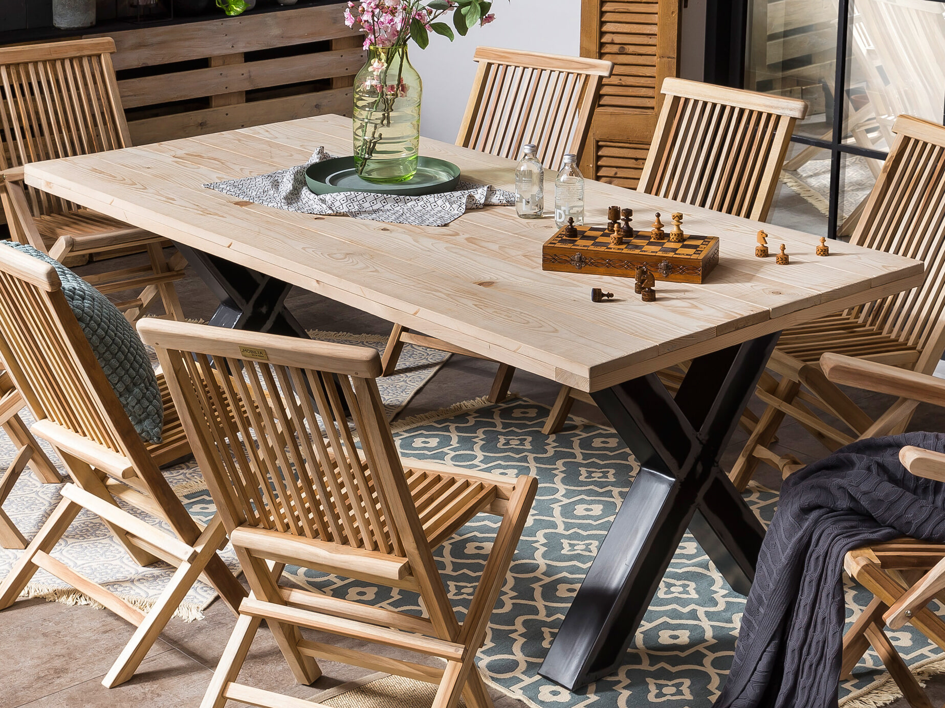 Eetkamer, veranda, serre of terras – de combinatie van robuust mangohout en zwaar metaal zorgt voor een moderne uitstraling die positief afwijkt van de norm. Bestaande uit 8 houten latten met een natuurlijke nerf, is dit tafelblad een echte blikvanger. Het kan “rustiek” en “elegant” zijn, het kan “binnen” en “buiten” gebruikt worden. Uiteindelijk bepaal je zelf het gewenste uiterlijk, want het natuurlijke oppervlak zal natuurlijk veranderen, afhankelijk van het gebruik. Je bent vrij om het hout te beschermen, te vernissen, te glazuren of te oliën – net zoals je het mooi vindt. Overeenkomstige verven zijn in hopen verkrijgbaar in elke bouwmarkt. Als je niets doet, zal de tafel zijn natuurlijke patina ontwikkelen en voortdurend van “gezicht” veranderen. De frames in “fabrieksstijl” zijn opzettelijk grof om de gewenste “used look” te onderstrepen. Door het gebruik buiten zal er zeker snel roest ontstaan. Maar ook hier kun je zelf bepalen waar je de tafel gebruikt en zo het uiterlijk beïnvloeden.