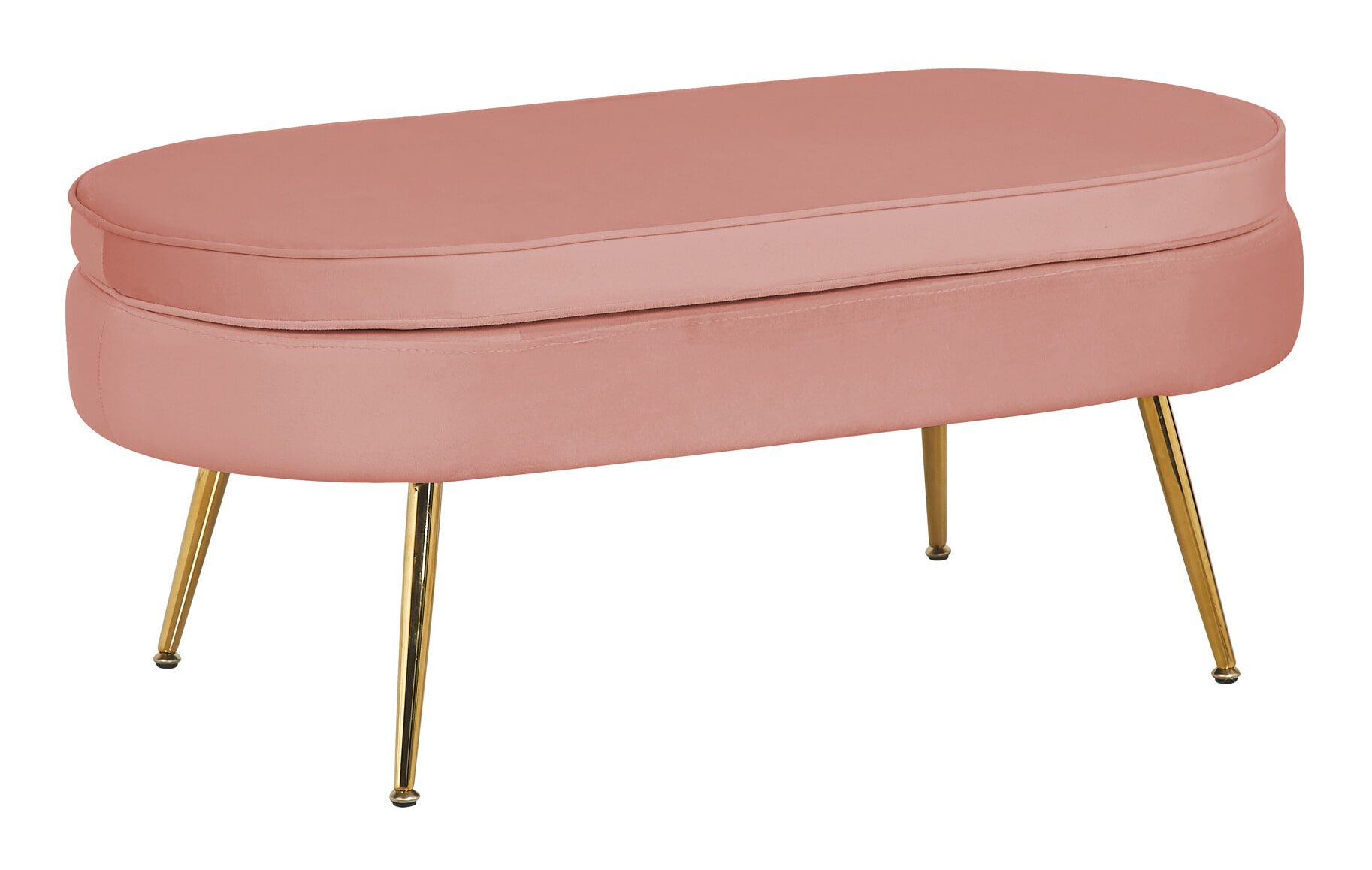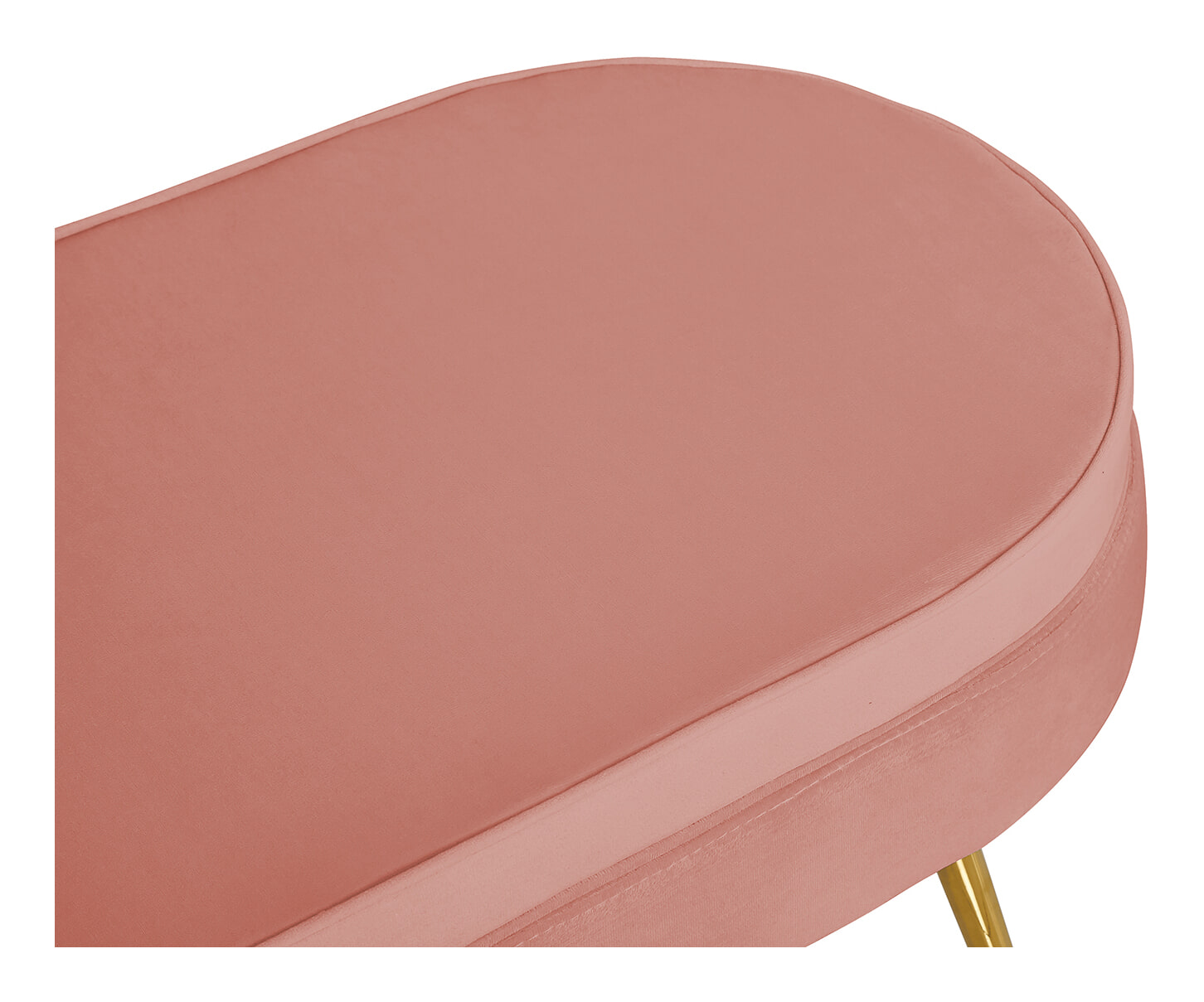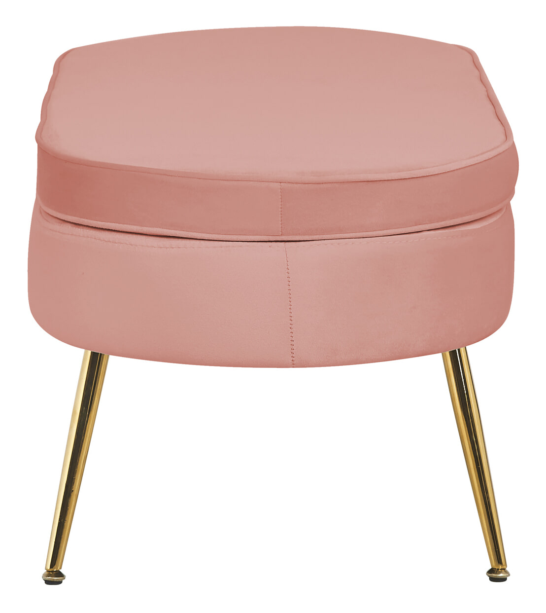 Glamoureus, elegant en ook praktisch – de zitpoef met stijlvolle stoffen bekleding in fluweellook. Het 4-poots frame van goudkleurig metaal zorgt niet alleen voor een veilige stand, maar biedt ook een mooi contrast met de bekleding van de poef. Dankzij de gestoffeerde zitting is dit meubel ideaal als extra zitmogelijkheid of als voetensteun voor een bank. Maar ook op zichzelf geplaatst komt deze zitkruk perfect tot zijn recht. De ovale vorm zorgt voor een zachte uitstraling. Deze fauteuilkruk is een echt juweeltje en wordt een visueel hoogtepunt in je huis.