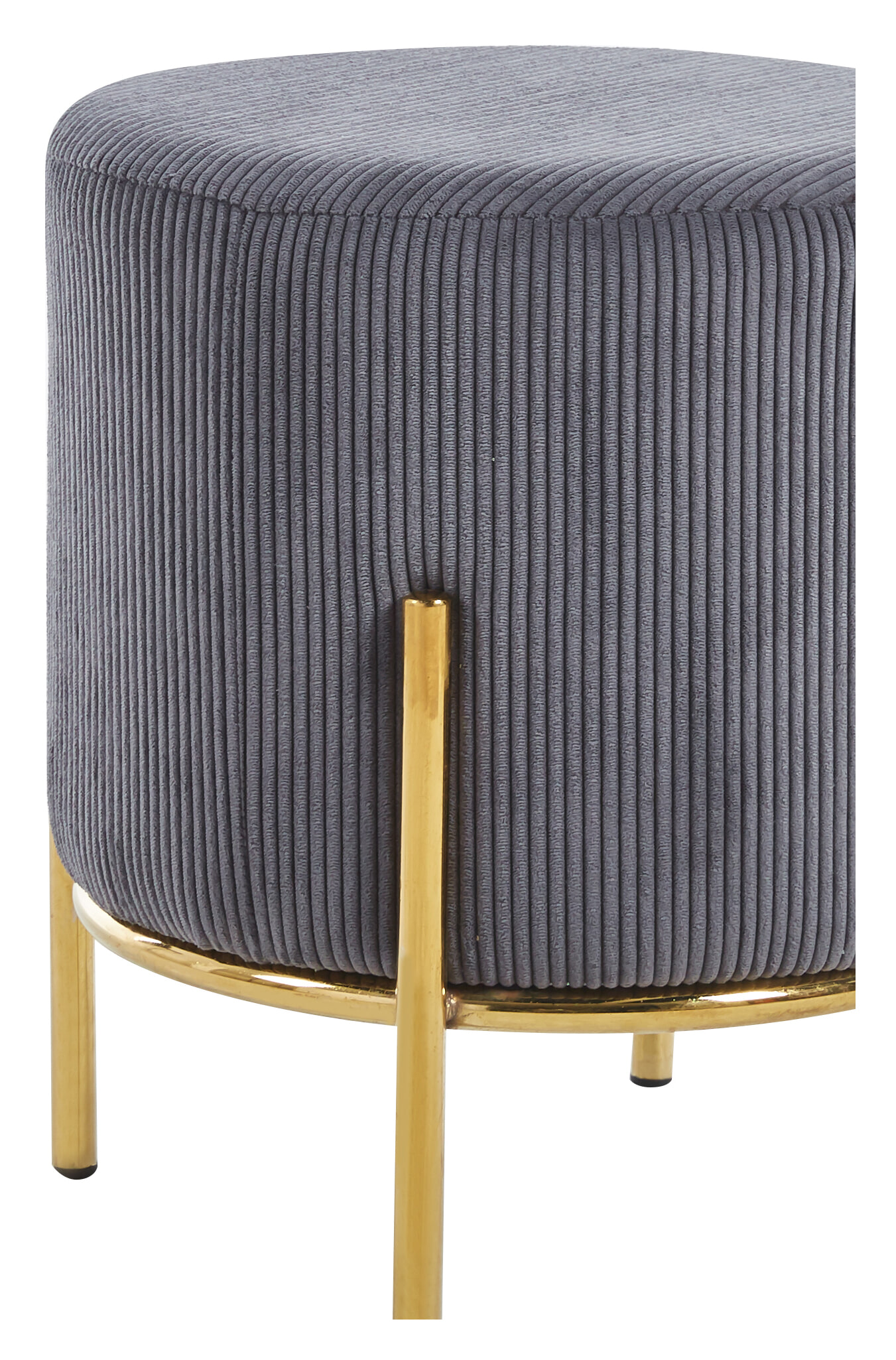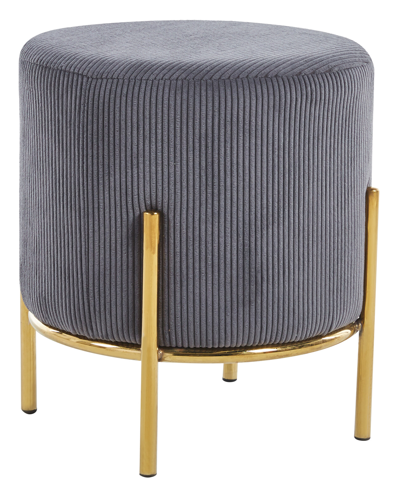 Als er spontane gasten komen, is extra zitruimte altijd een welkome zegen. Als dit er ook nog eens stijlvol uitziet en ruimtebesparend werkt, dan heb je een ideale designgenoot voor bank en zithoek. De kruk in ribfluweellook met een diameter van de zitting van 35 cm biedt precies deze combinatie van aantrekkelijk uiterlijk en functioneel gebruik. Hier kun je extra gasten op laten zitten of je voeten opleggen in volledige ontspanning. De zachte corduroy stof geeft de kruk een moderne uitstraling en de karakteristieke naden zorgen voor een interessante verschijning. Het design frame met hoge poten is gemaakt van goudkleurig metaal en maakt de look helemaal af.