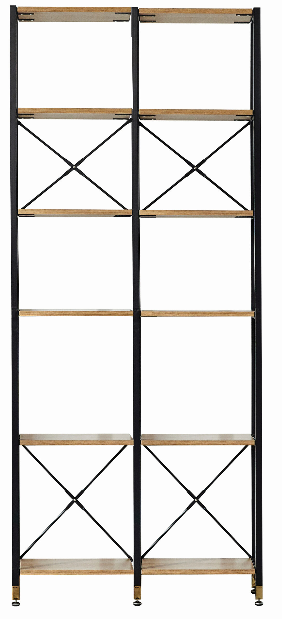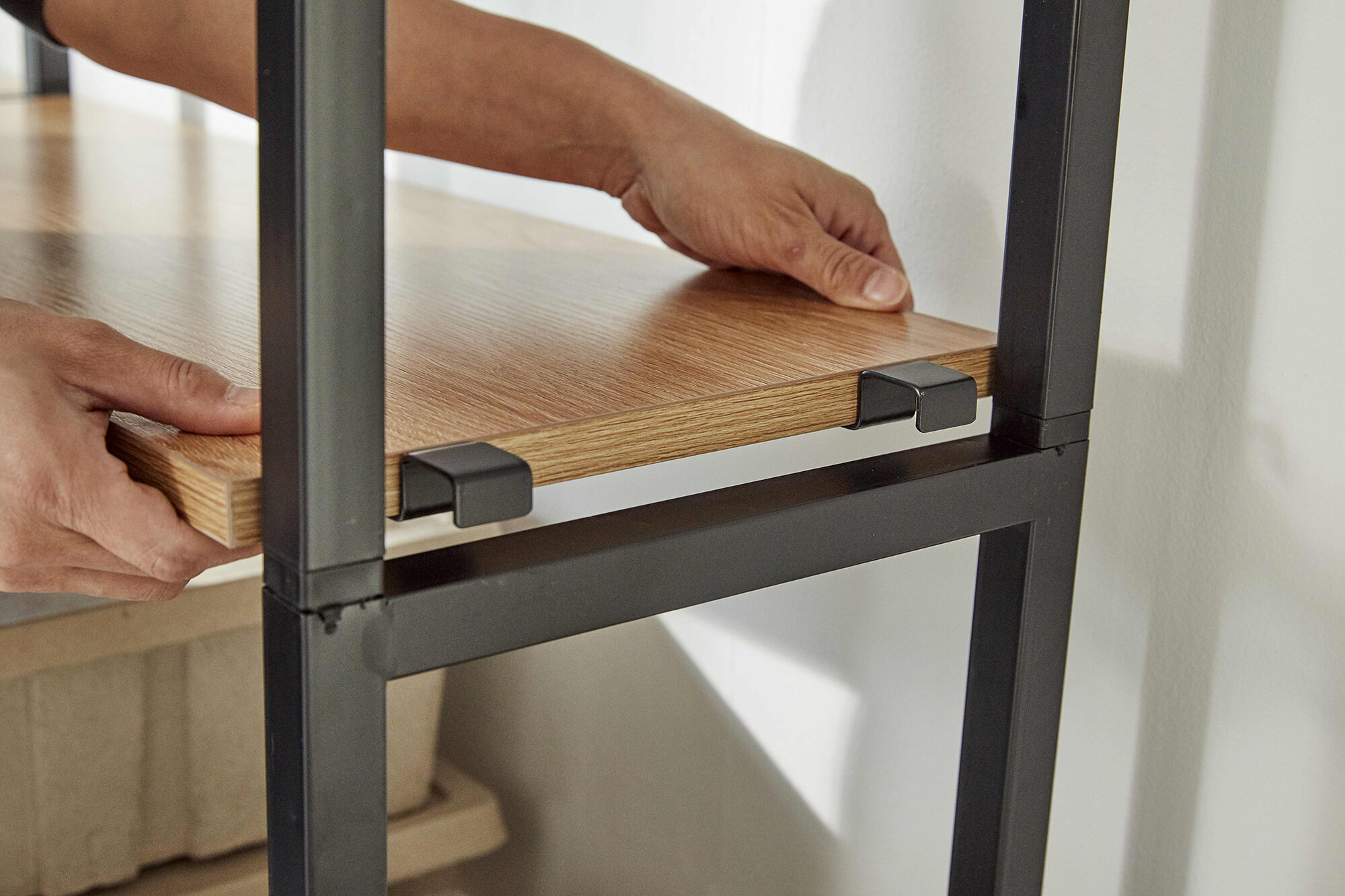 Nu komt er orde in de chaos. Met deze wandplankenset creëer je extra opbergruimte en is ruimtegebrek geen probleem meer. Met een hoogte van 210 cm biedt de wandplankenset je genoeg ruimte voor bijvoorbeeld boeken of decoratieve spullen. Terwijl het stevige frame van metaal is, zijn de planken en laden gemaakt van MDF met een acacia decor. Dankzij de open indeling van de staande plank kun je hem ook gebruiken als roomdivider.