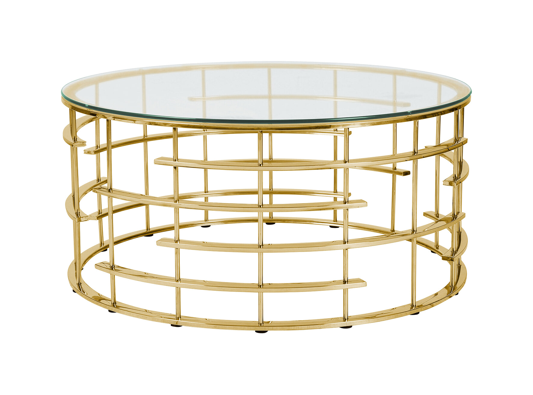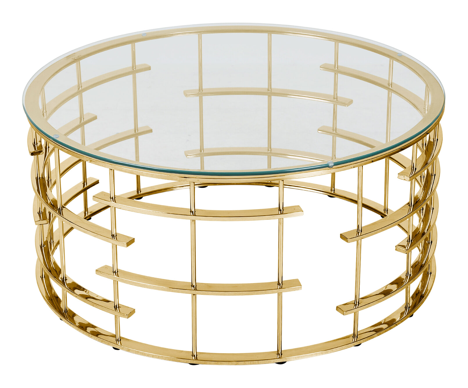 Als je op zoek bent naar een extravagant designhoogtepunt dat afwijkt van de norm, dan maak je gegarandeerd de juiste keuze met deze ronde salontafel van veiligheidsglas en robuust roestvrij staal. Het abstracte roestvrijstalen frame maakt de glazen tafel tot iets heel bijzonders en zorgt in een handomdraai voor een luxueuze verrijking van elke woon- en zithoek. Ronde bank- en bijzettafels staan bijzonder mooi bij kubusvormige banken en fauteuils. Het tafelblad is gemaakt van 8 mm dik veiligheidsglas en vormt in combinatie met het roestvrijstalen frame een bijzonder onderhoudsvriendelijke en slijtvaste combinatie. Het prachtige frame in goud zal altijd een spannende blikvanger zijn als highlight voor de bank.
