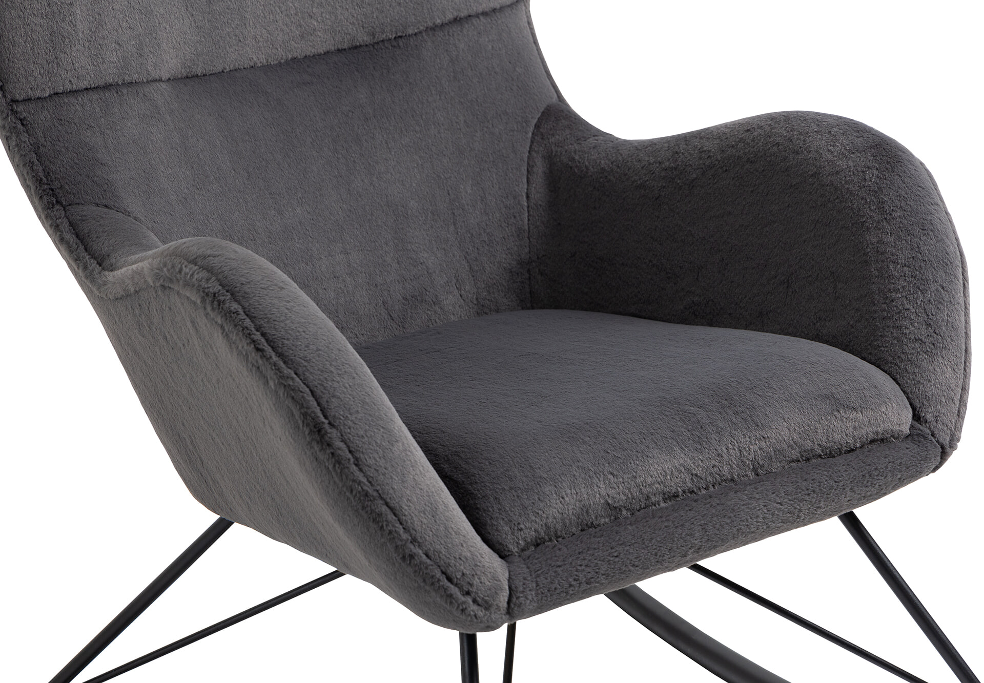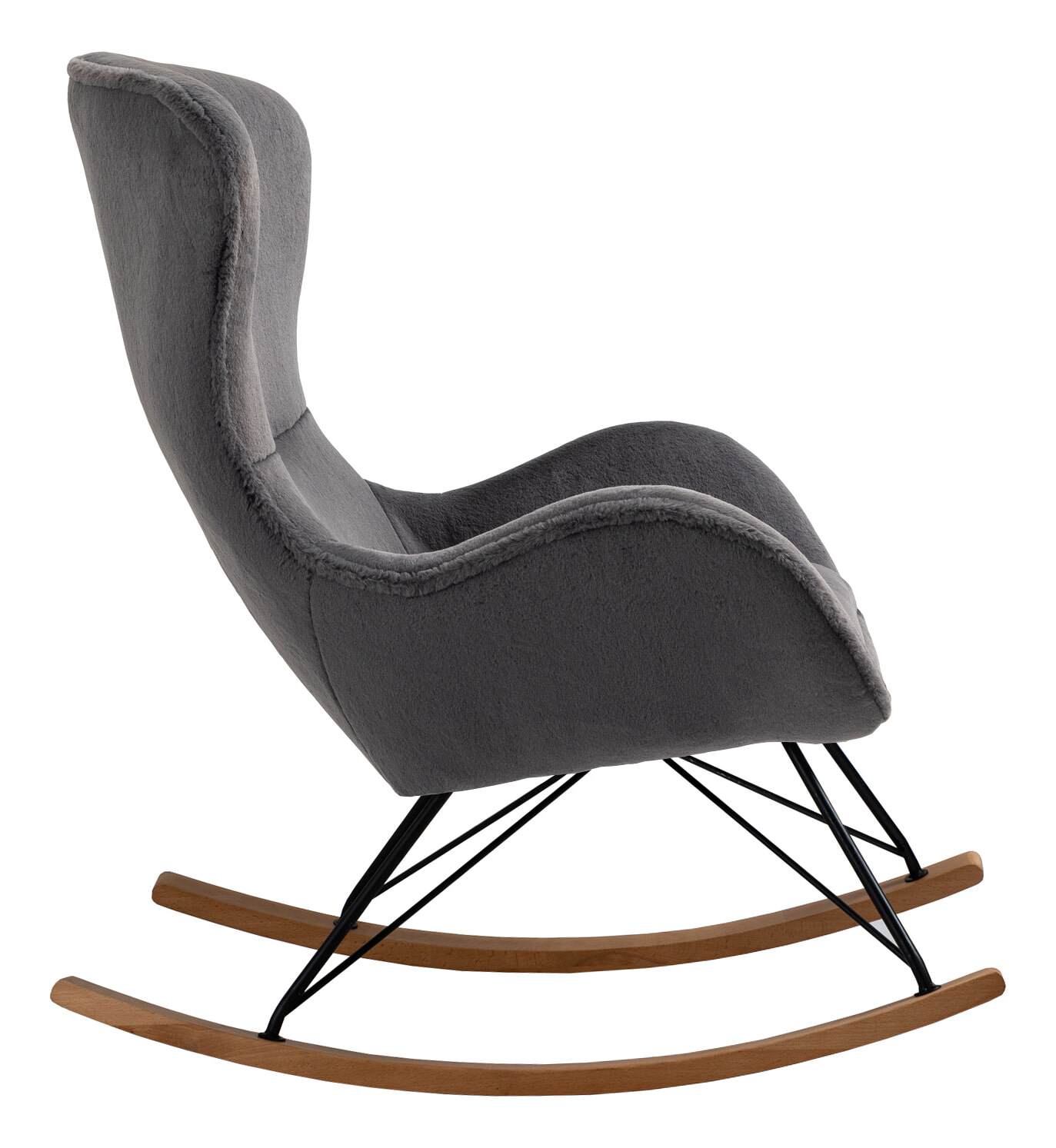 Deze schommelstoel in zachte lamsvachtlook wordt een absoluut favoriet stuk in de woonkamer. De modern vormgegeven schommelstoel biedt optimaal zitcomfort dankzij de gebogen armleuningen en rugleuning. De knuffelzachte zitting van hoogwaardig imitatiebont nodigt ook uit om lekker in weg te kruipen. De trendy Scandi-stijl wordt gecompleteerd door een zwart gelakt metalen frame en houten rails van massief eikenhout. Het moderne glijderframe zorgt voor zacht heen en weer schommelen en maakt de schommelstoel tot de ideale metgezel voor de woonkamer, slaapkamer of leeshoek.
