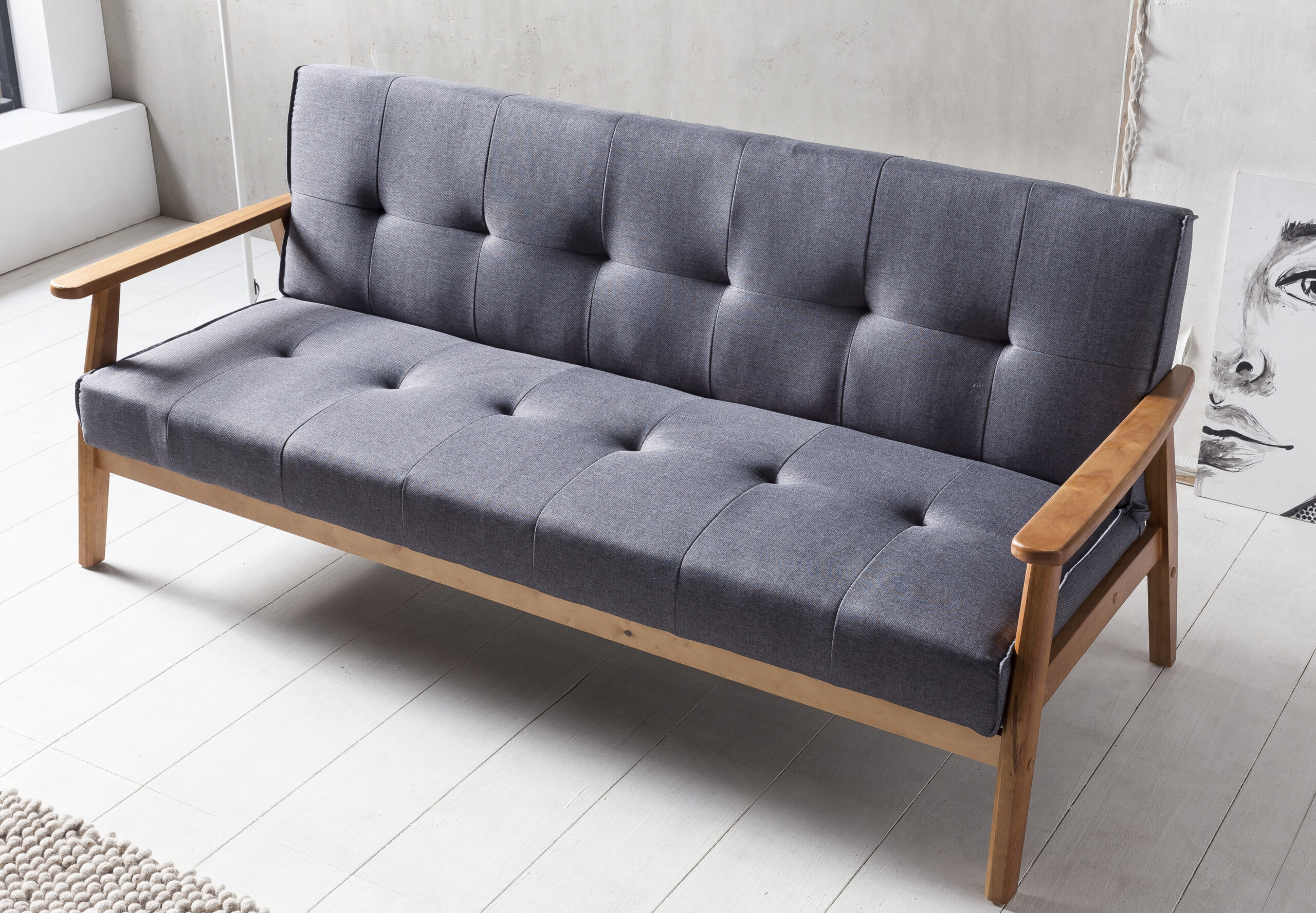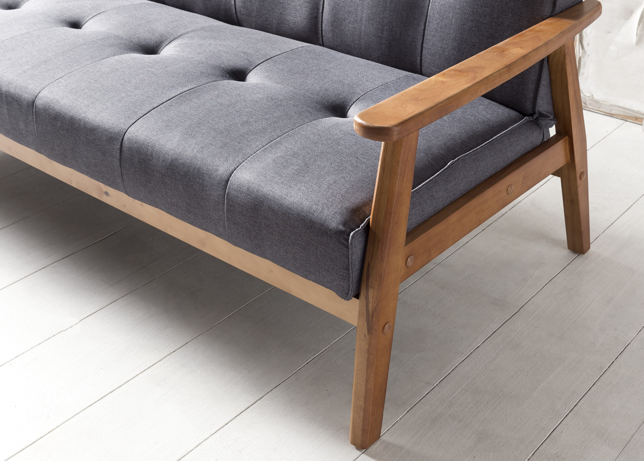 Stoffen bekleding (100% polyester) en massief houten onderstel