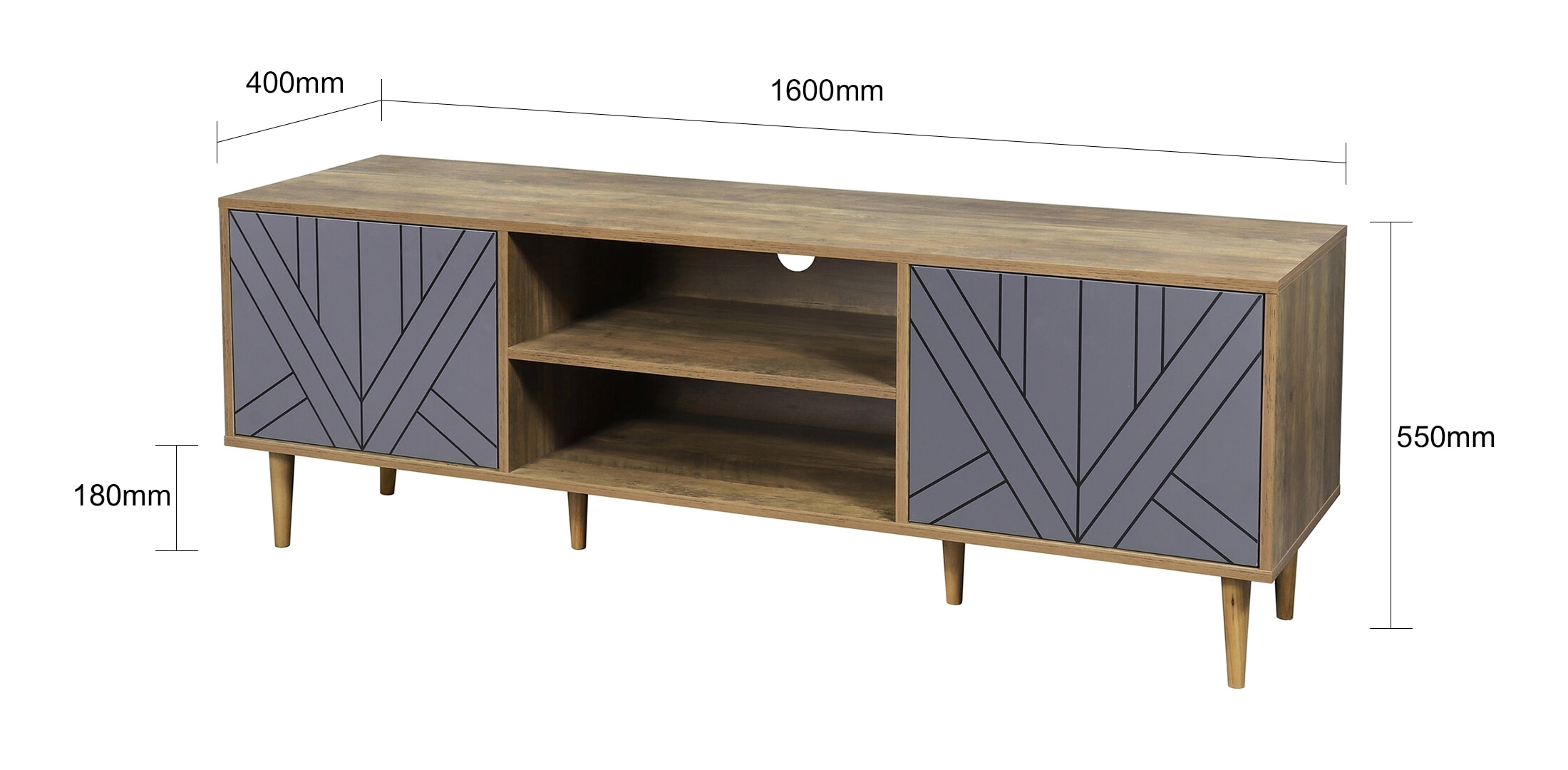 Artistiq TV-meubel Beckham 160cm, kleur Grijs / Naturel