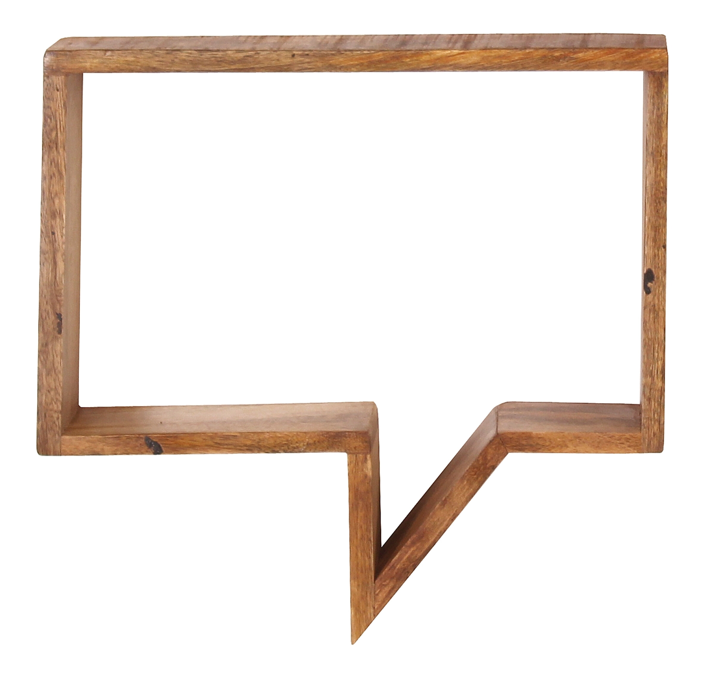 Met deze wandplank kun je je favoriete stukken in stijl presenteren en je muren een heel bijzonder tintje geven. Het frame is gemaakt van mangohout. Dit ziet er niet alleen stijlvol uit, het is ook zeer robuust en stabiel. Dankzij zijn veelzijdigheid kan de plank bijna overal gebruikt worden. Een bijzondere blikvanger is de originele vorm van de wandplank, die lijkt op een komische tekstballon. Waar de wandplank ook wordt geïnstalleerd – het is beslist een blikvanger.