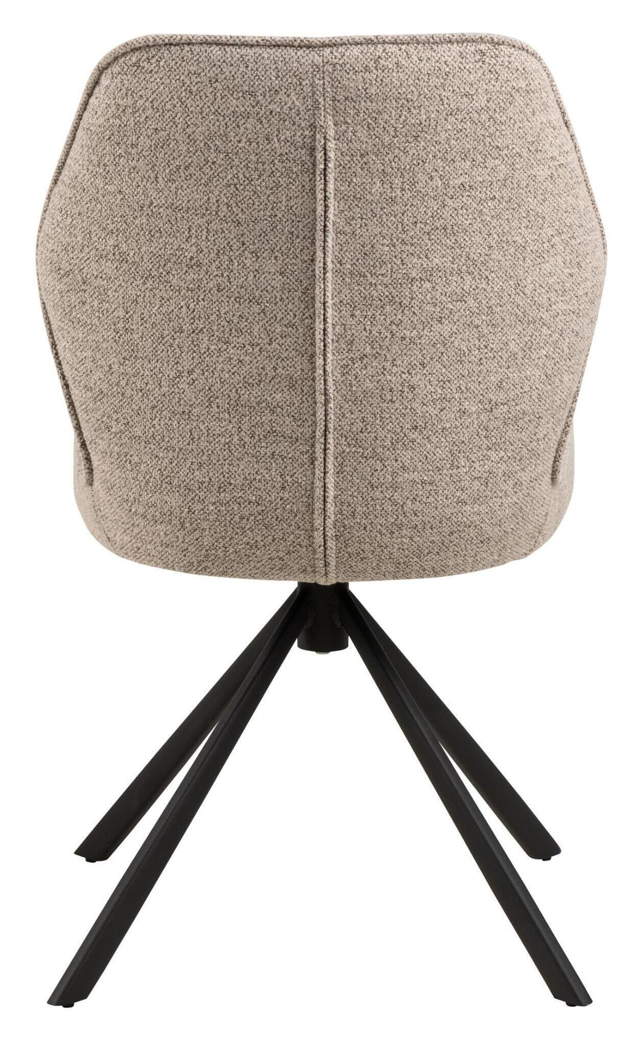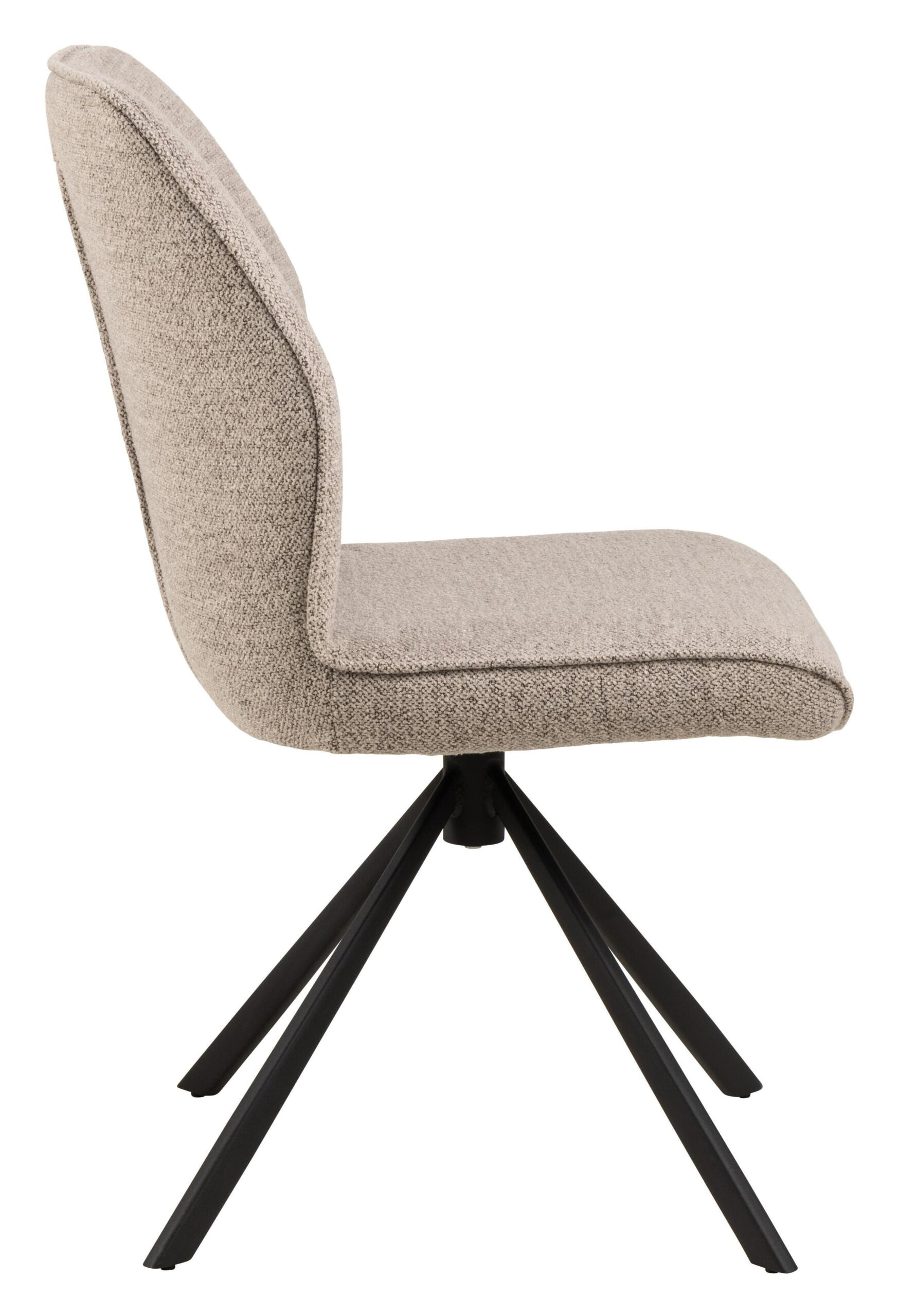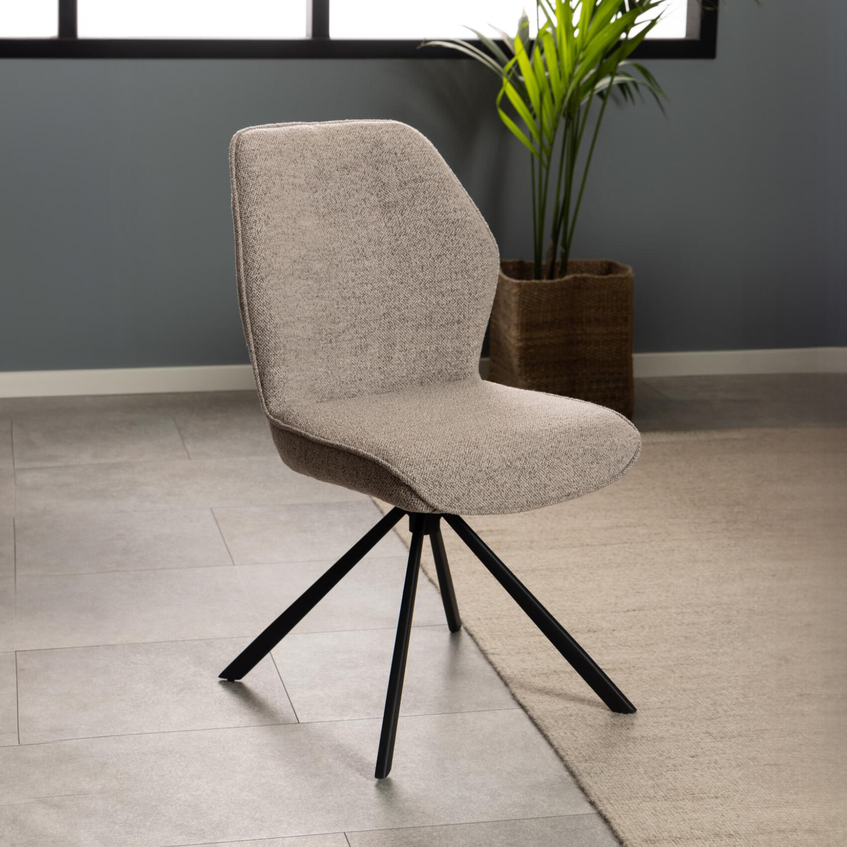 Gedefinieerd door zijn karakteristieke silhouet en een vleugje moderne elegantie is deze eetkamerstoel perfect voor elk modern huis. De zitting is bekleed met een taupe bouclé stof met een zachte krulstructuur voor een luxe uitstraling. Om de moderne look nog meer te benadrukken, is het zwarte 4-sterren metalen onderstel voorzien van een draaifunctie. Maak het je gemakkelijk en geniet van het moment.