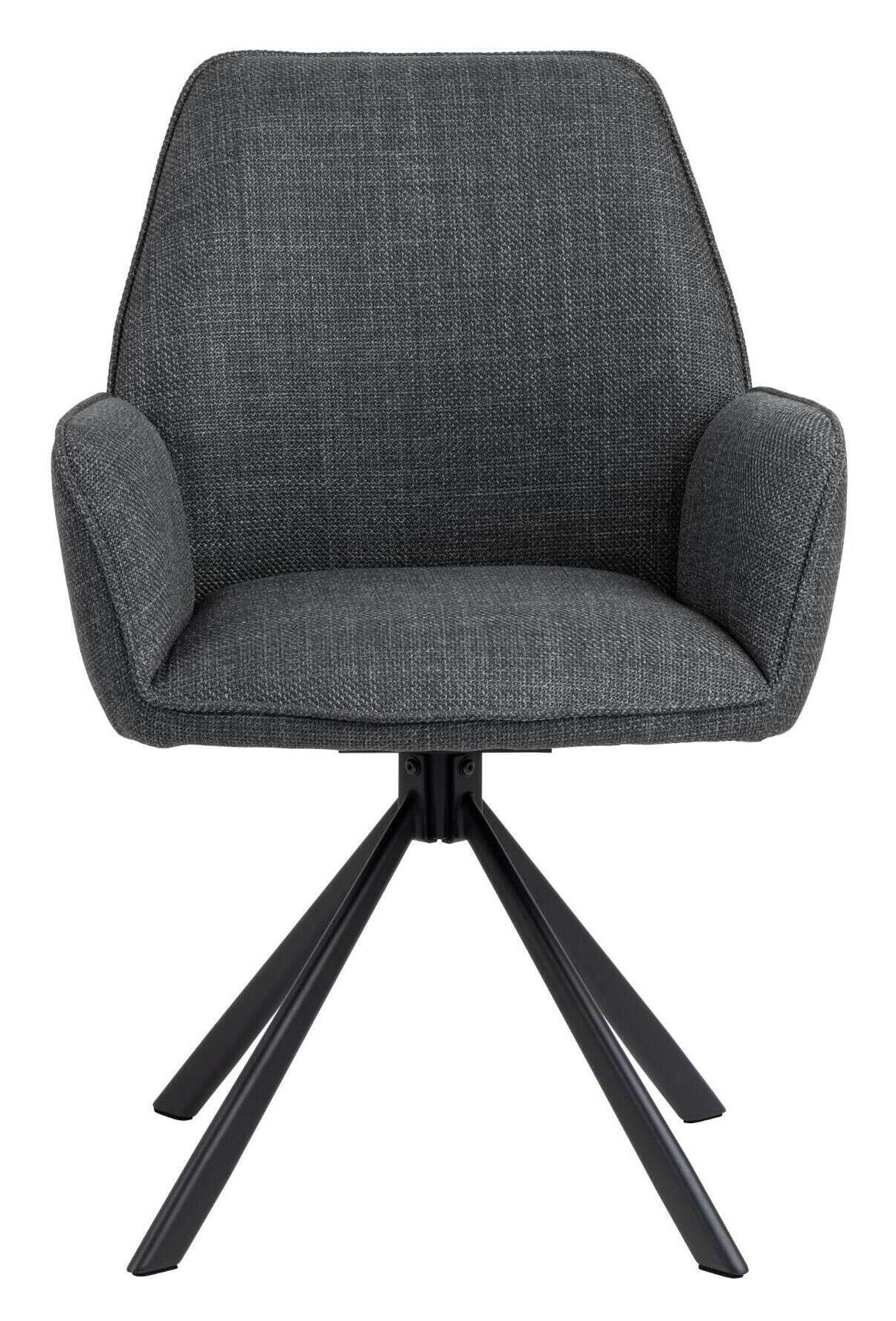 De eetkamerstoel verheft elke eetkamer met zijn eigentijdse silhouet en is versierd met een beige stof met een tweekleurig effect en een biesdetail, wat de stoel een getextureerde look geeft. Aangevuld met het zwarte stalen onderstel met 4 sterren en een draaifunctie, combineert de stoel stijl en functionaliteit en weerspiegelt daarmee het moderne tijdperk.