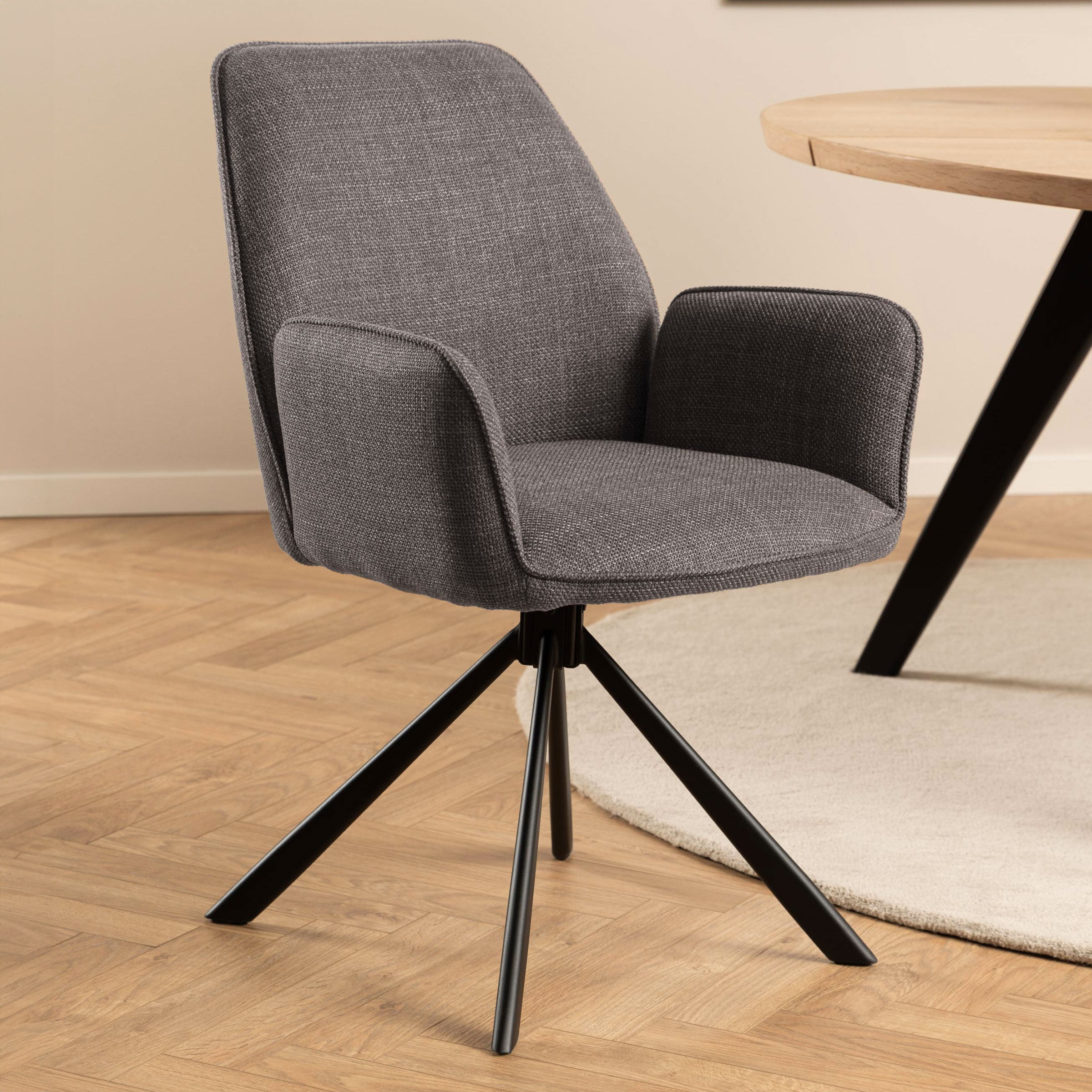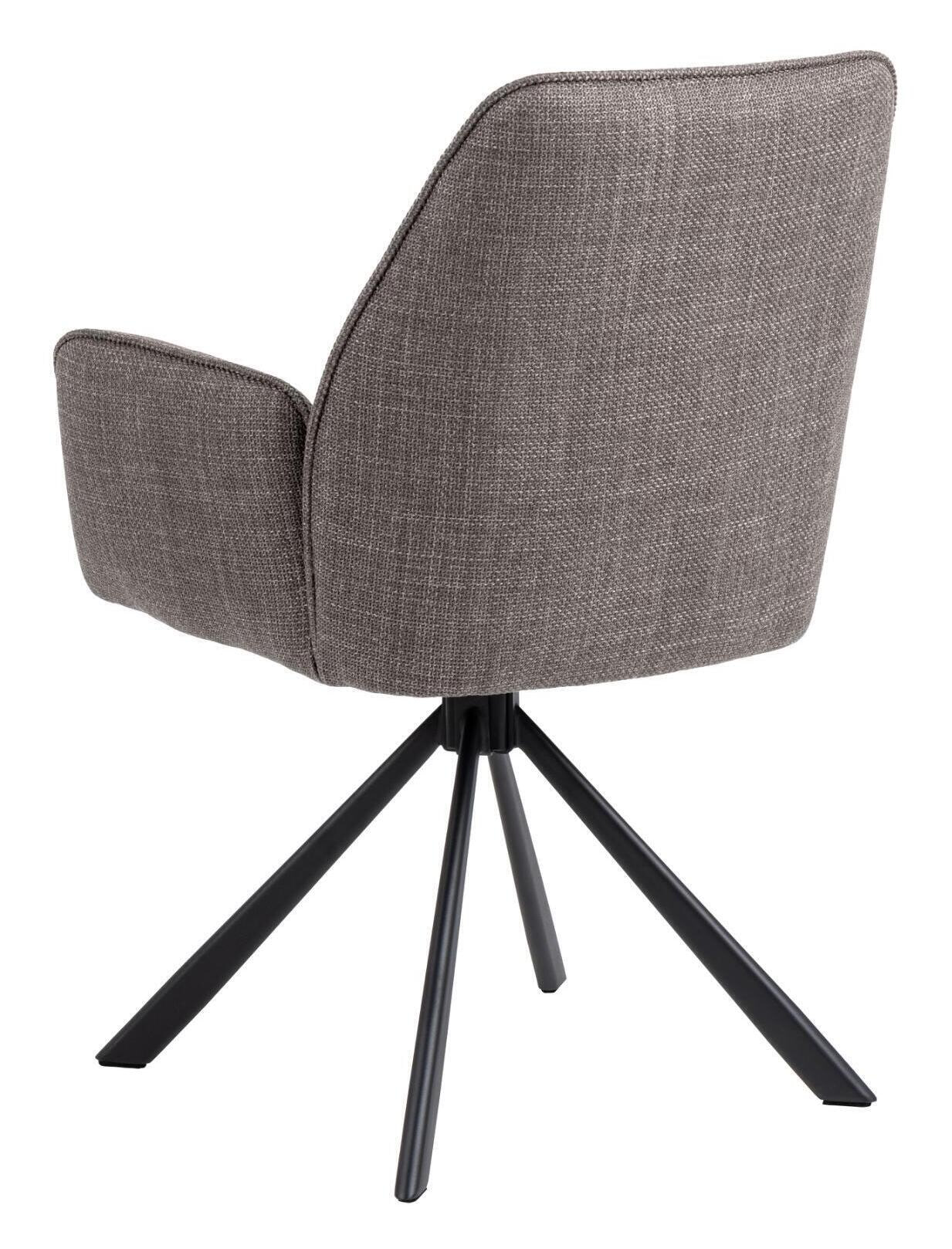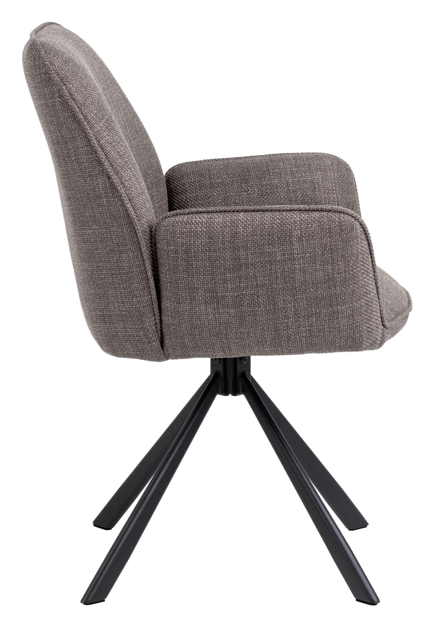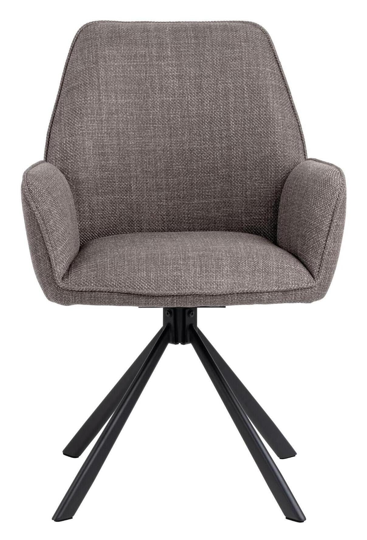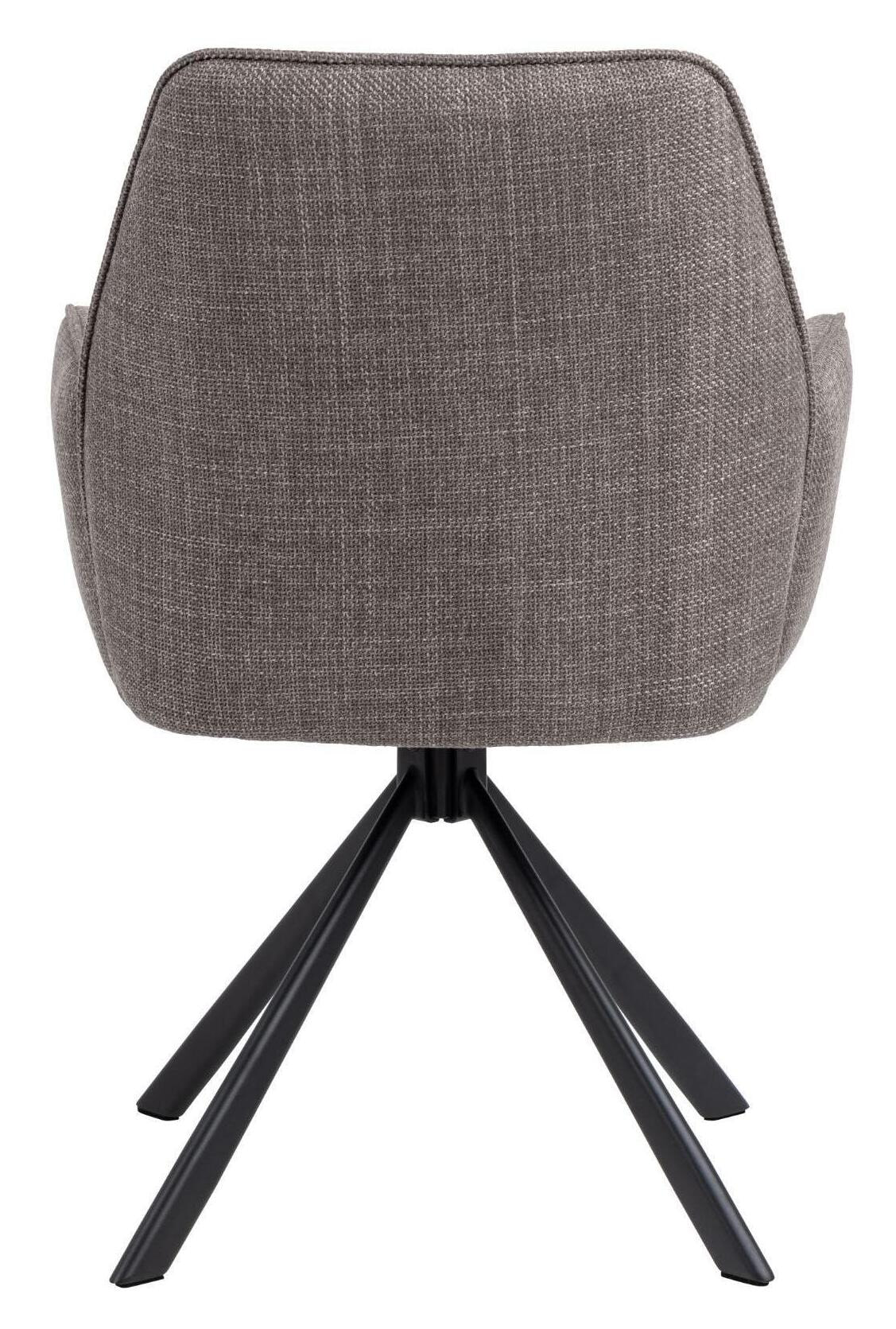 De eetkamerstoel verheft elke eetkamer met zijn eigentijdse silhouet en is versierd met een beige stof met een tweekleurig effect en een biesdetail, wat de stoel een getextureerde look geeft. Aangevuld met het zwarte stalen onderstel met 4 sterren en een draaifunctie, combineert de stoel stijl en functionaliteit en weerspiegelt daarmee het moderne tijdperk.