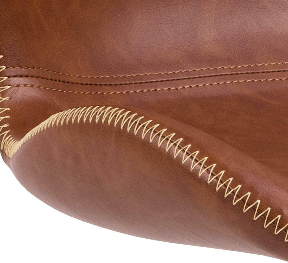 Verfraai je eetkamer met deze moderne eetkamerstoel. Een organisch gevormde zitting met een gebogen rug biedt een ondersteunende en comfortabele zit, terwijl de bekleding een vintage vibe uitstraalt dankzij de lederlook stof – het is echt de perfecte mix van stijl en comfort. Geniet van het ruwe gepoedercoate metalen onderstel met draaibaarheid.