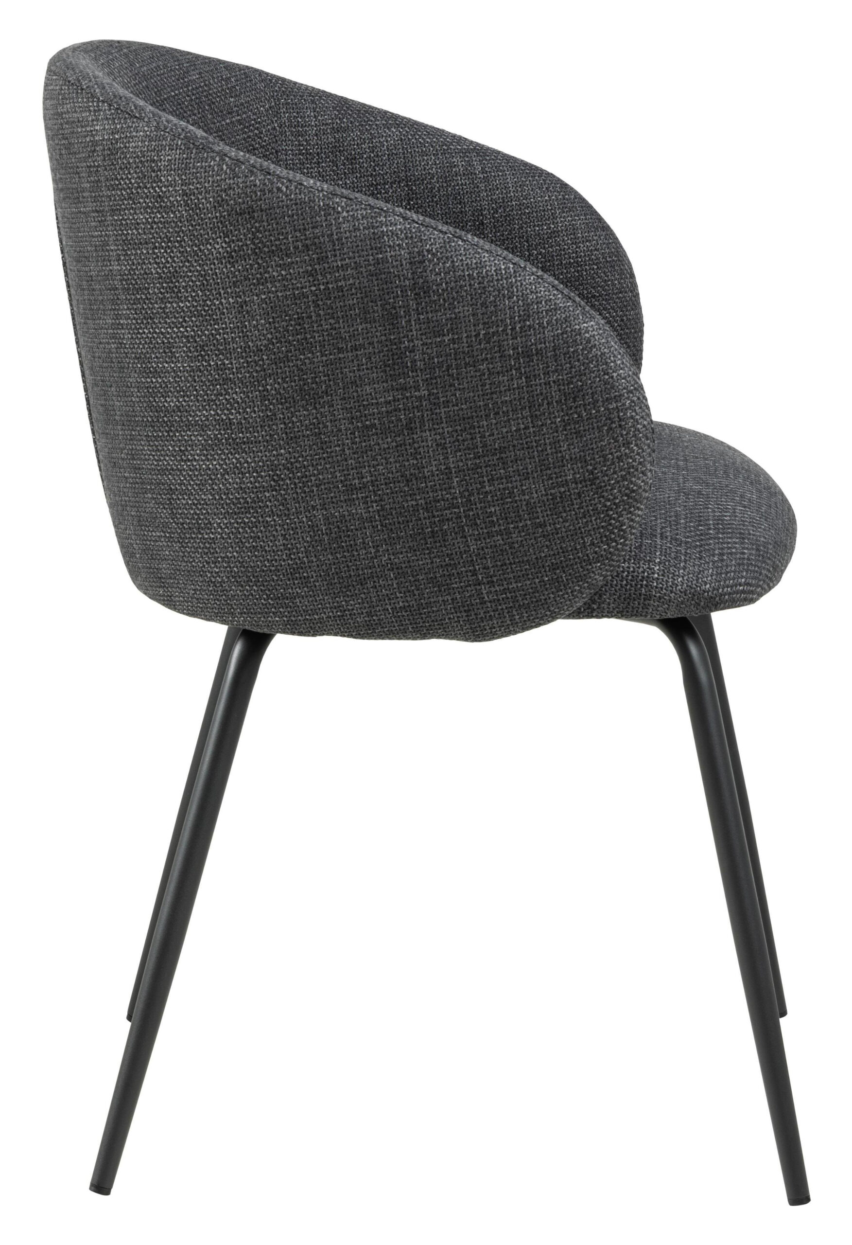 Speciale gelegenheden of alledaags dineren, deze eetkamerstoel kan het allebei. De organische rondingen van de zitting en de slanke zwarte stalen poten geven de stoel een vrouwelijke uitstraling. Gewikkeld in een gestructureerde stof met een tweekleurig effect, maakt de beige bekleding de stoel interessant om naar te kijken. Zo’n stoel is een geweldige aanvulling op zachte interieurs, waar hij moeiteloos in past.