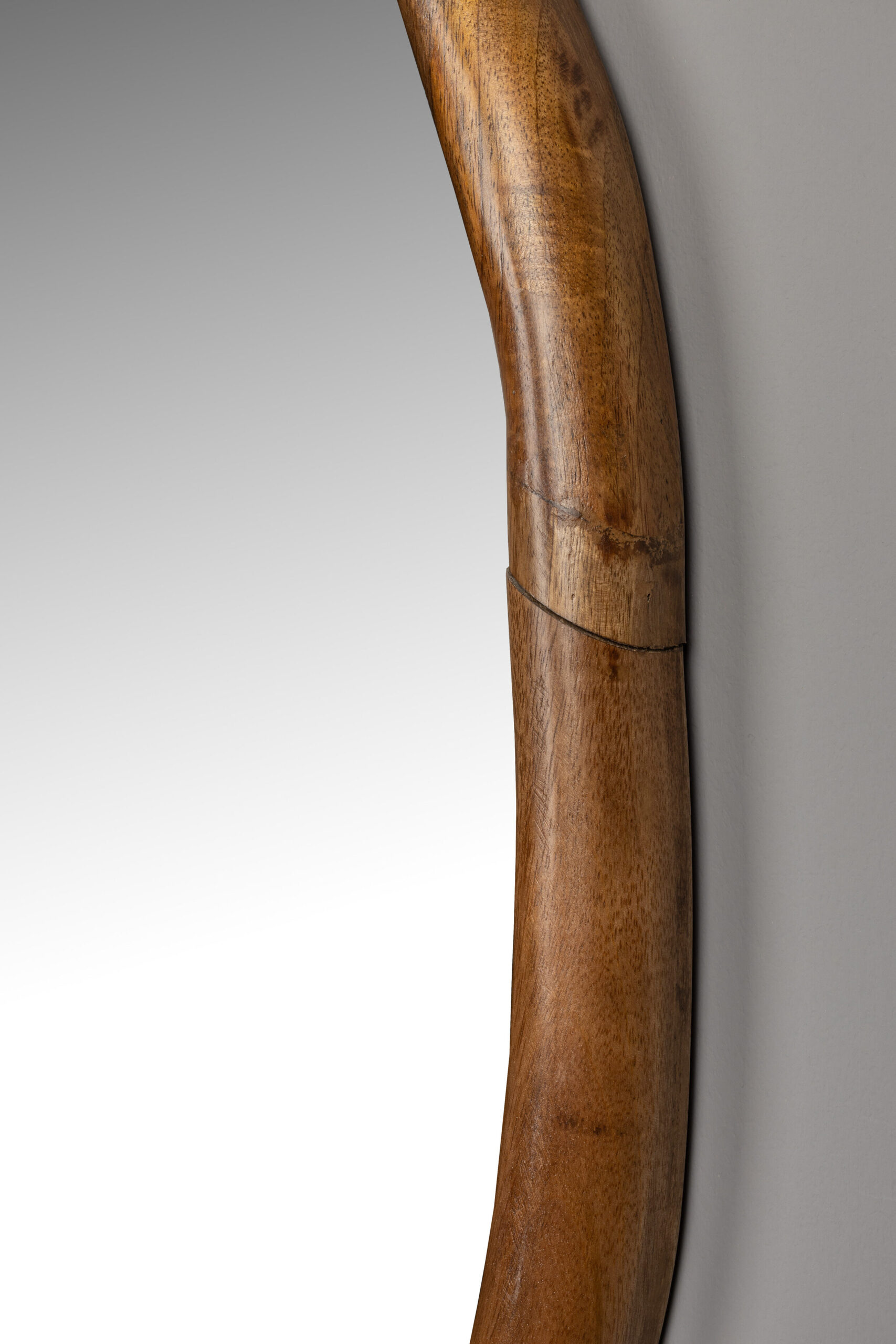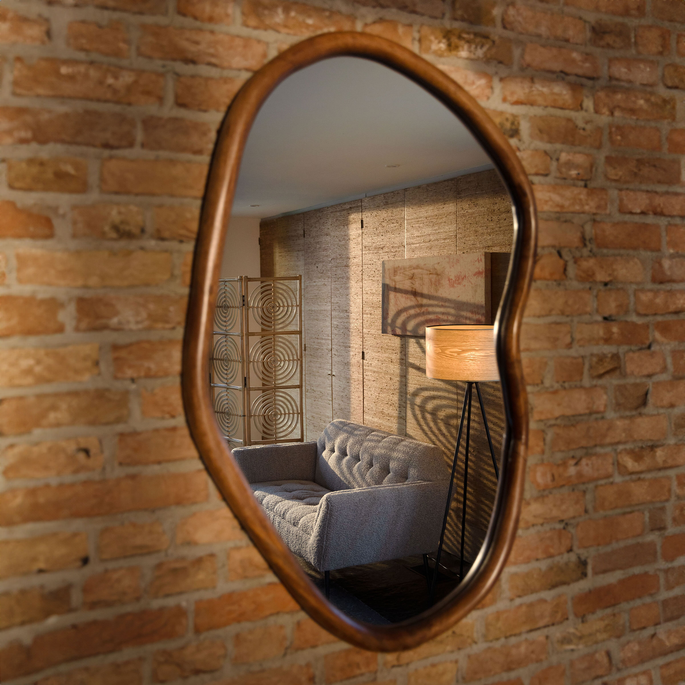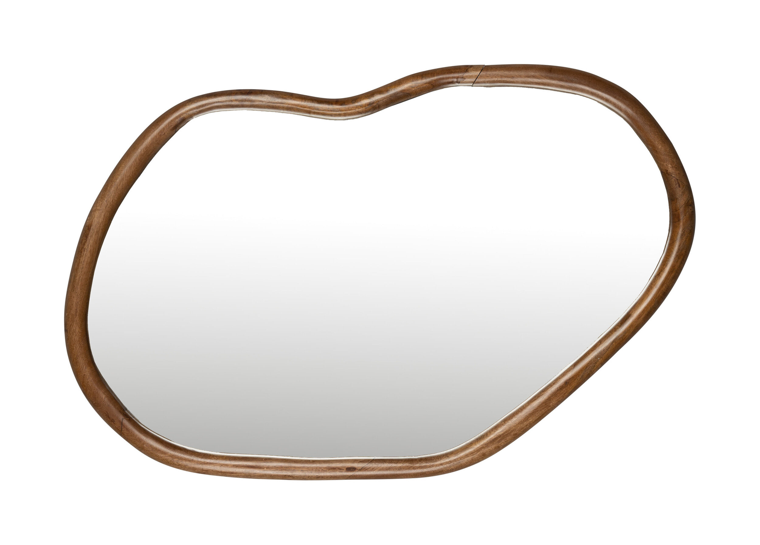 Spiegel ‘Ashley’ van Dutchbone is een expressieve organisch gevormde spiegel met een opvallende, dikke rand van mangohout, geïnspireerd op design uit de seventies. Het warme hout en de vloeiende lijnen geven Ashley een karaktervolle uitstraling die perfect aansluit bij een retro interieur. De rijke houtnerf en natuurlijke kleurvariaties maken elke spiegel uniek, terwijl de speelse vorm zorgt voor een levendig en stijlvol accent aan de wand.