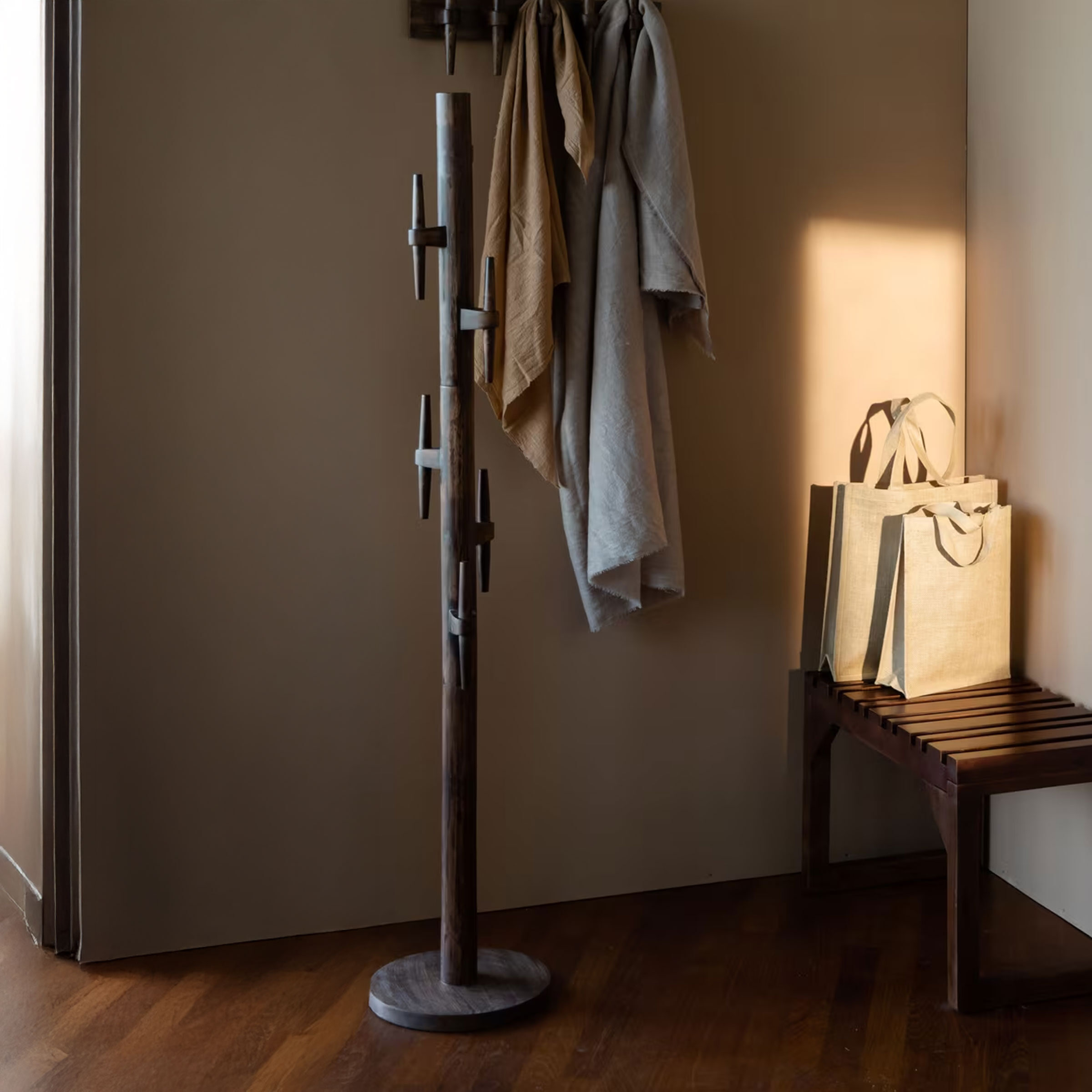Dutchbone Staande Kapstok Jakub Met 5 haken, Mangohout