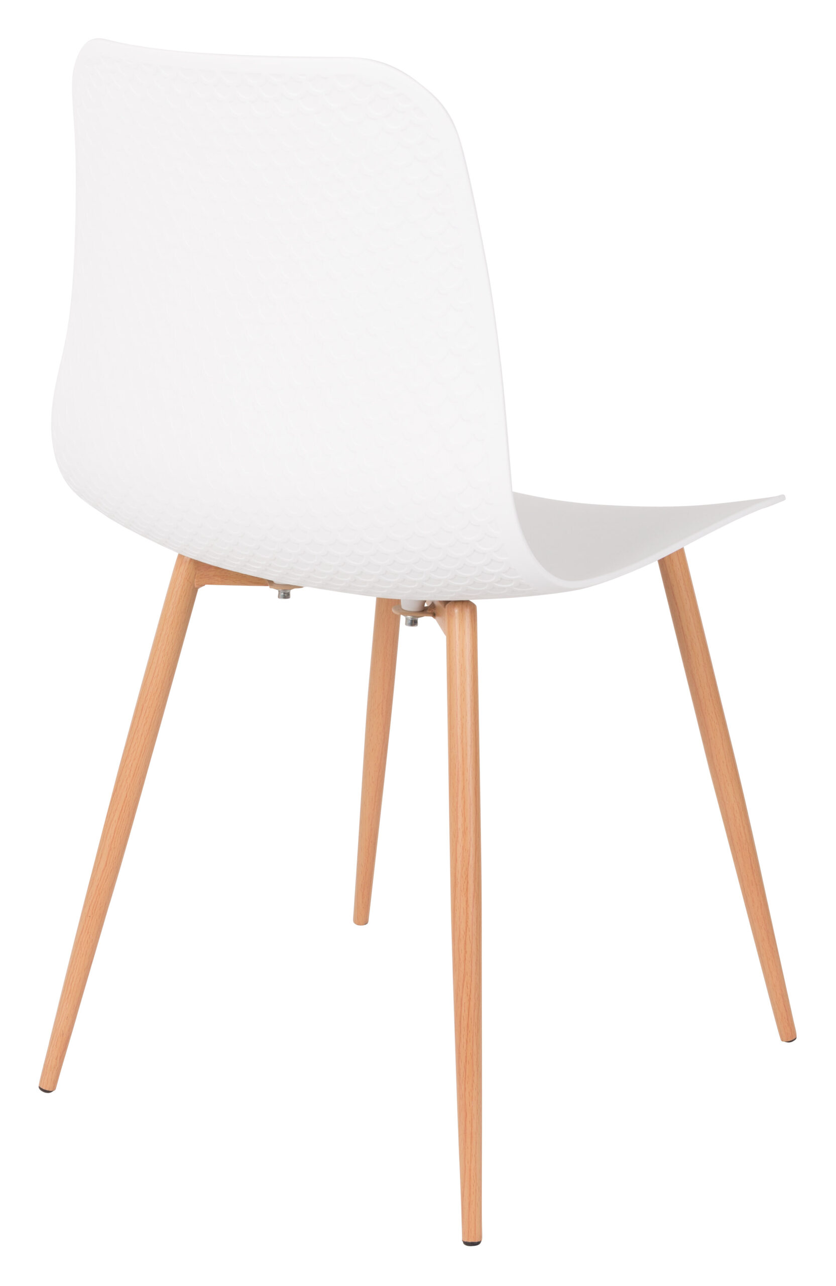 - Materiaal: Kunststof zitting, metalen pootjes met houtlook