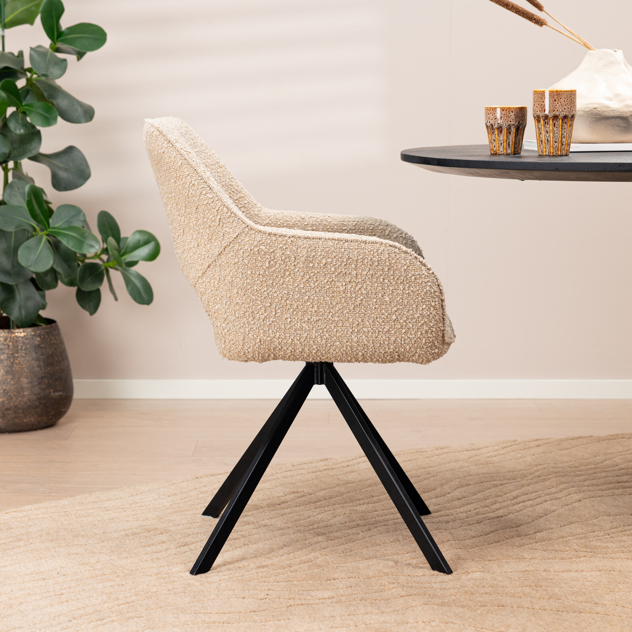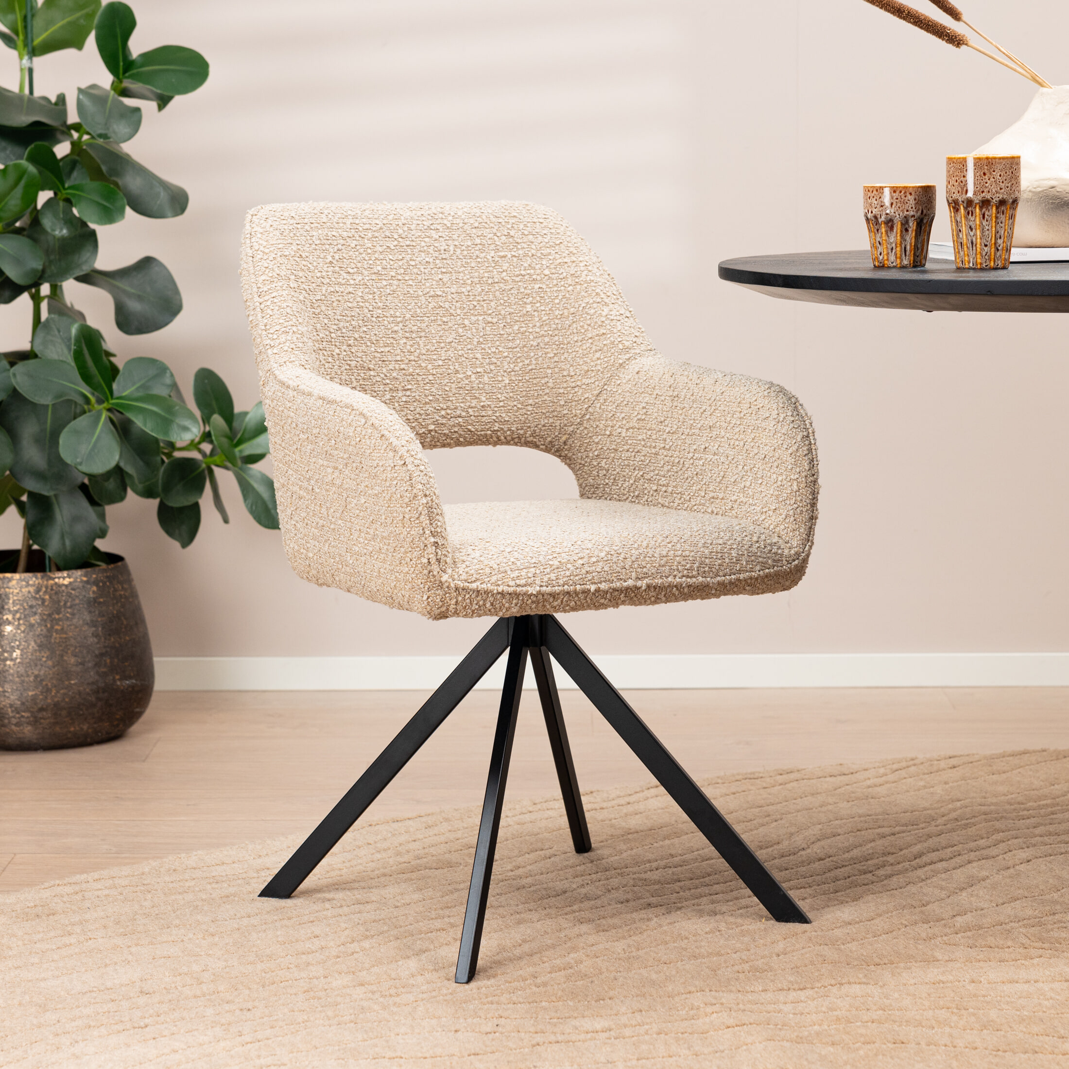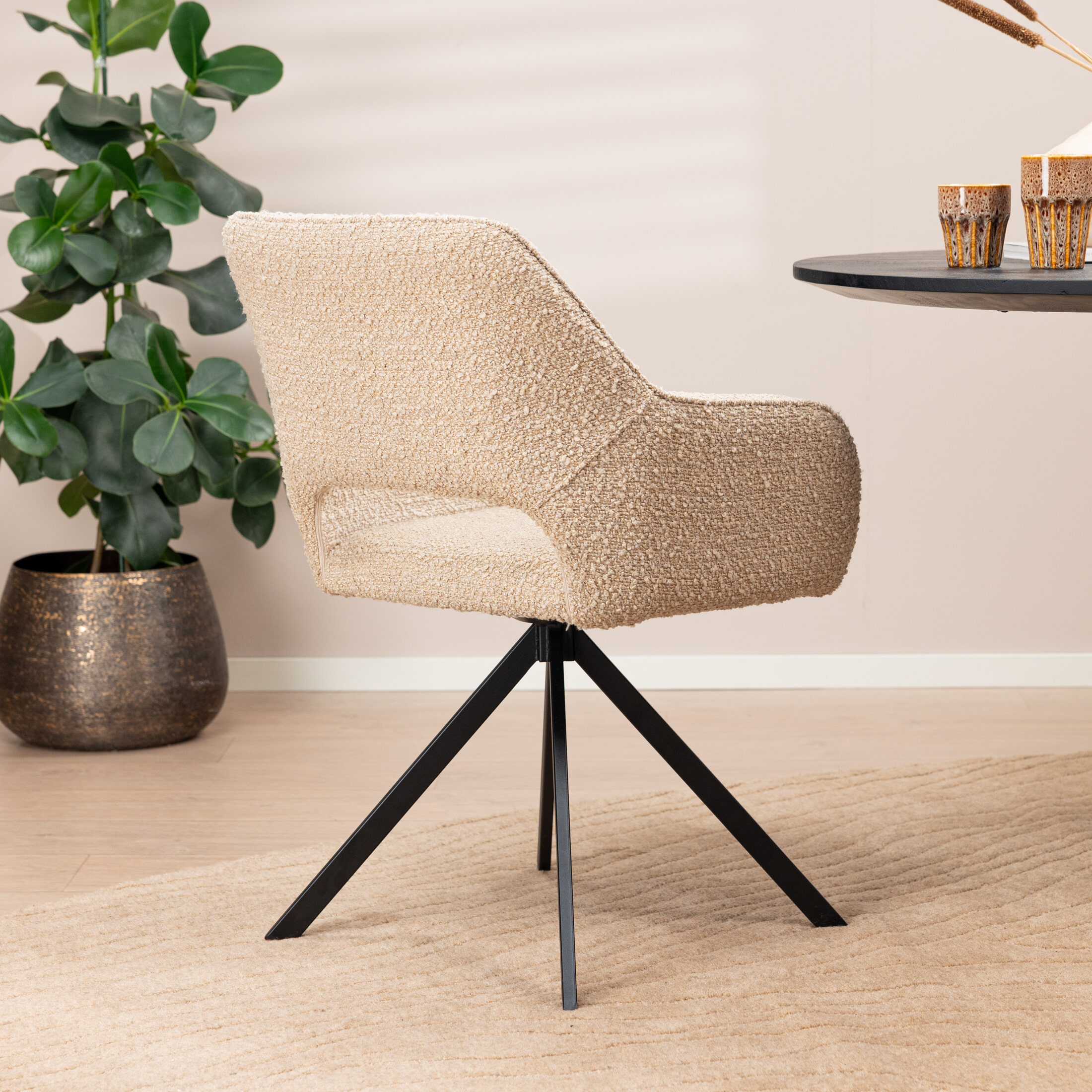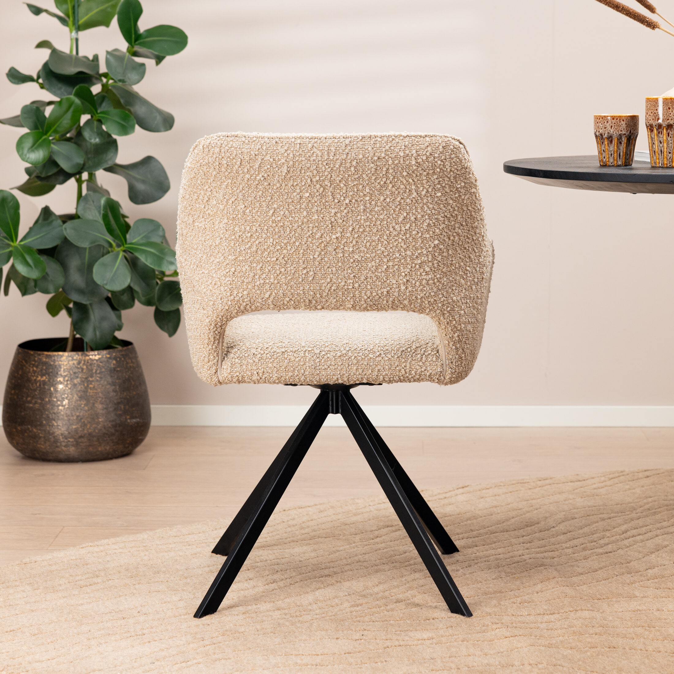 Eleonora Draaibare Eetkamerstoel 'Fabio' Bouclé, kleur Zand