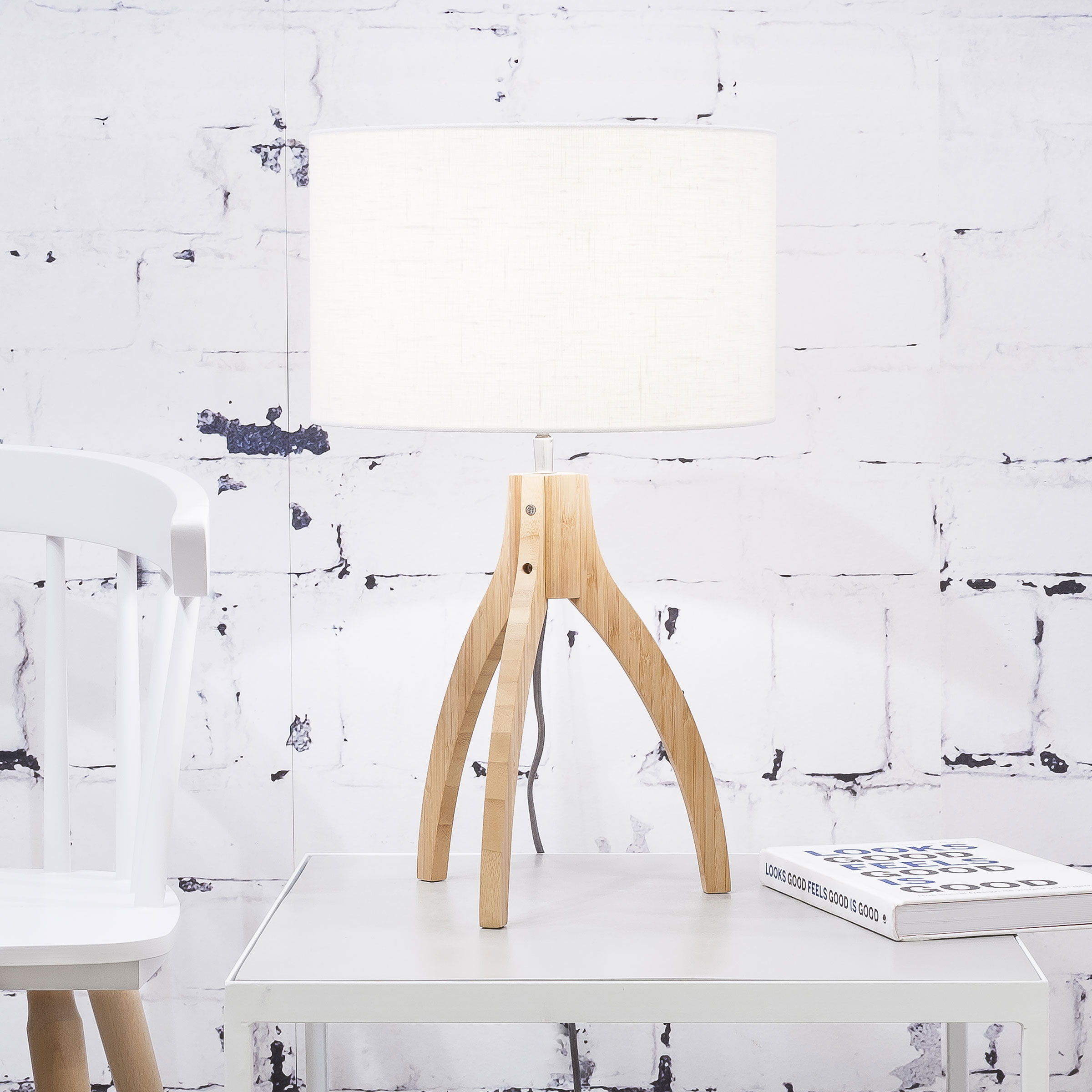 Good&Mojo Tafellamp 'Annapurna' Bamboe en Eco linnen, kleur Wit
