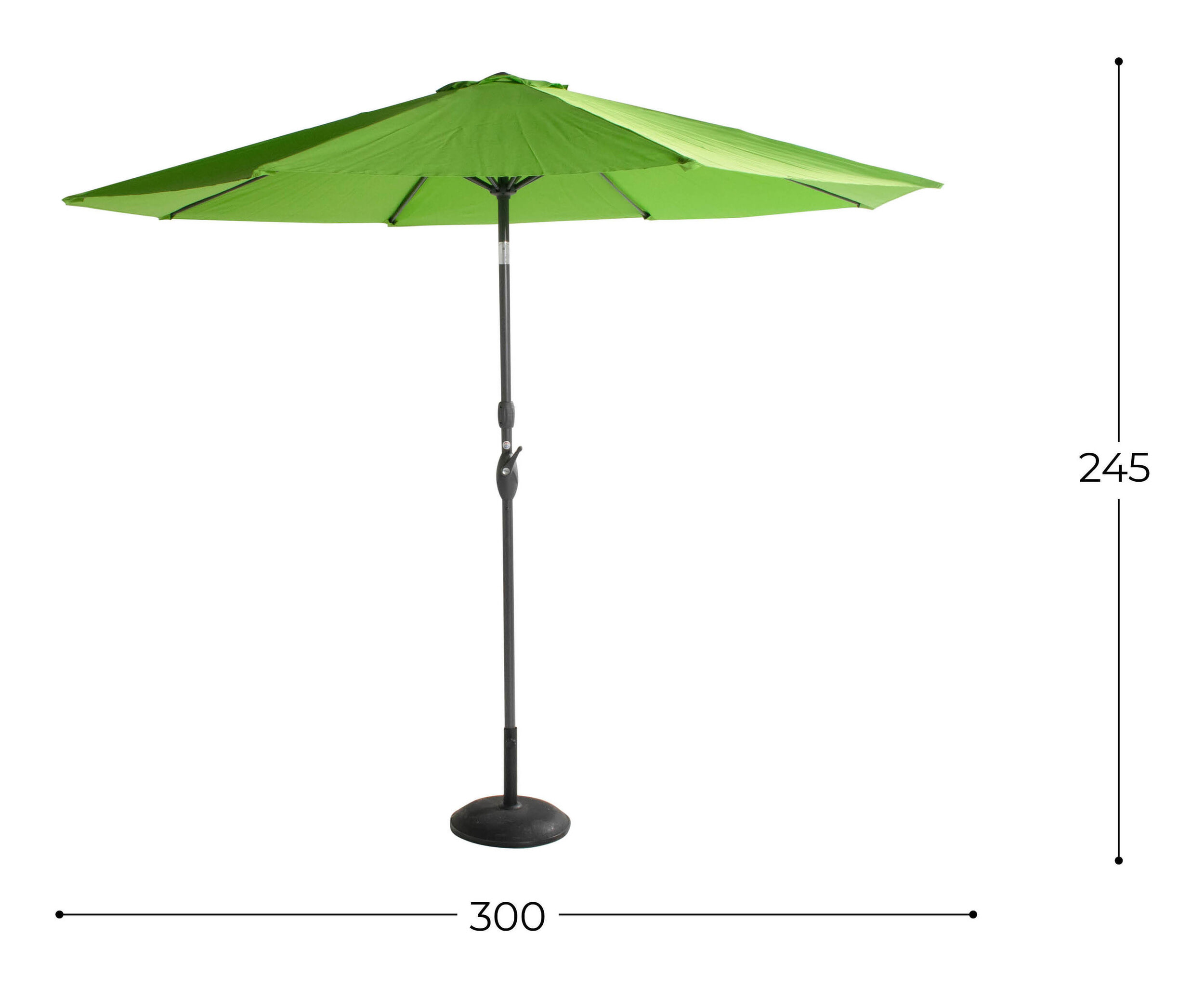 - Overige info: 200gr polyester, 8 ribben, buis 38mm, geleverd zonder parasolvoet.