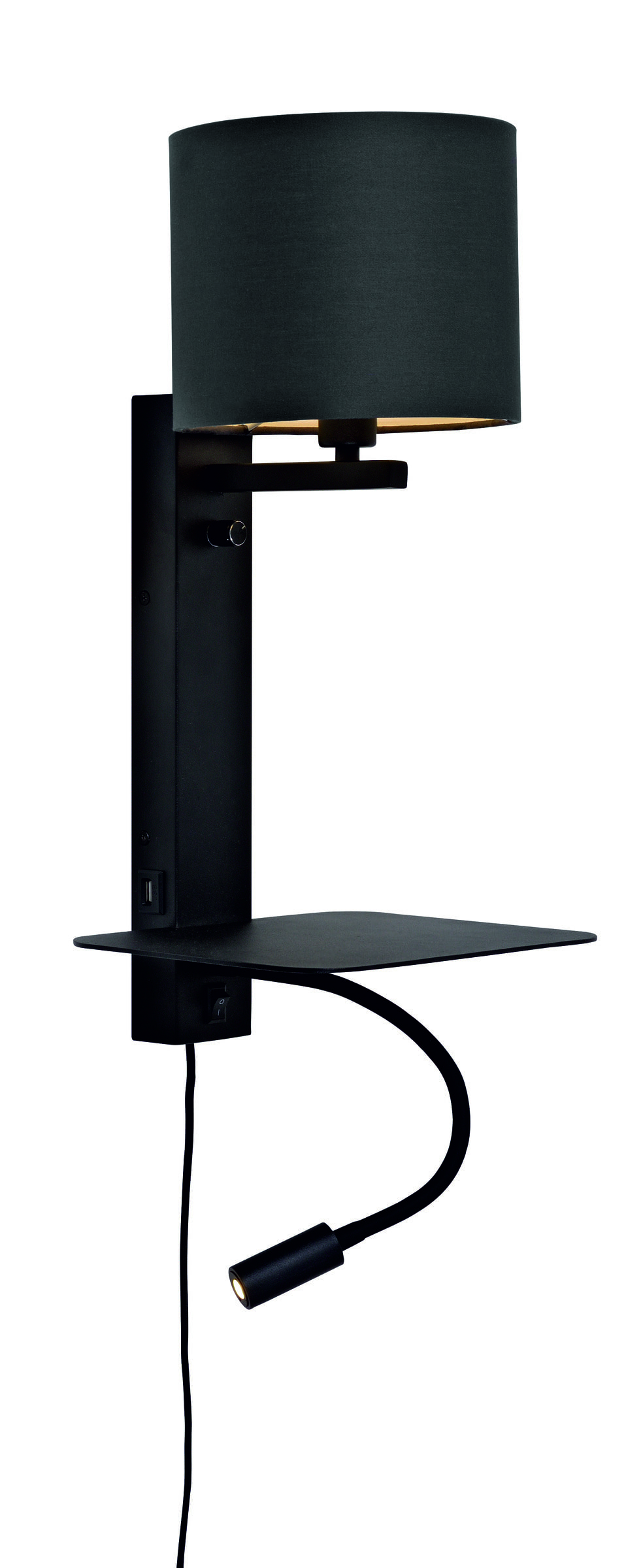 its about RoMi Wandlamp Florence Met plankje en leeslamp, kleur Zwart