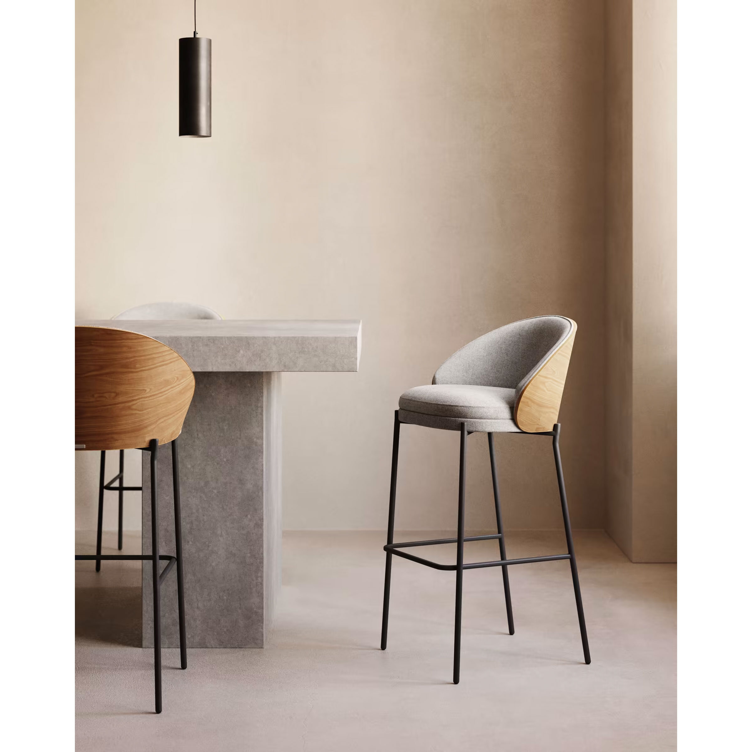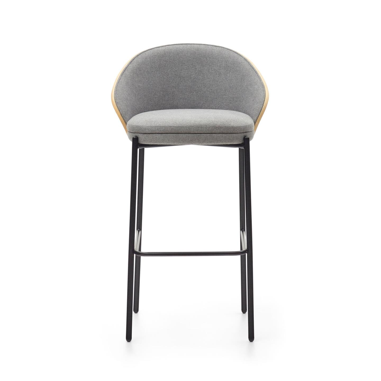 Kave Home Barkruk 'Eamy' Essenhout, kleur Lichtgrijs/Naturel (zithoogte 77cm)