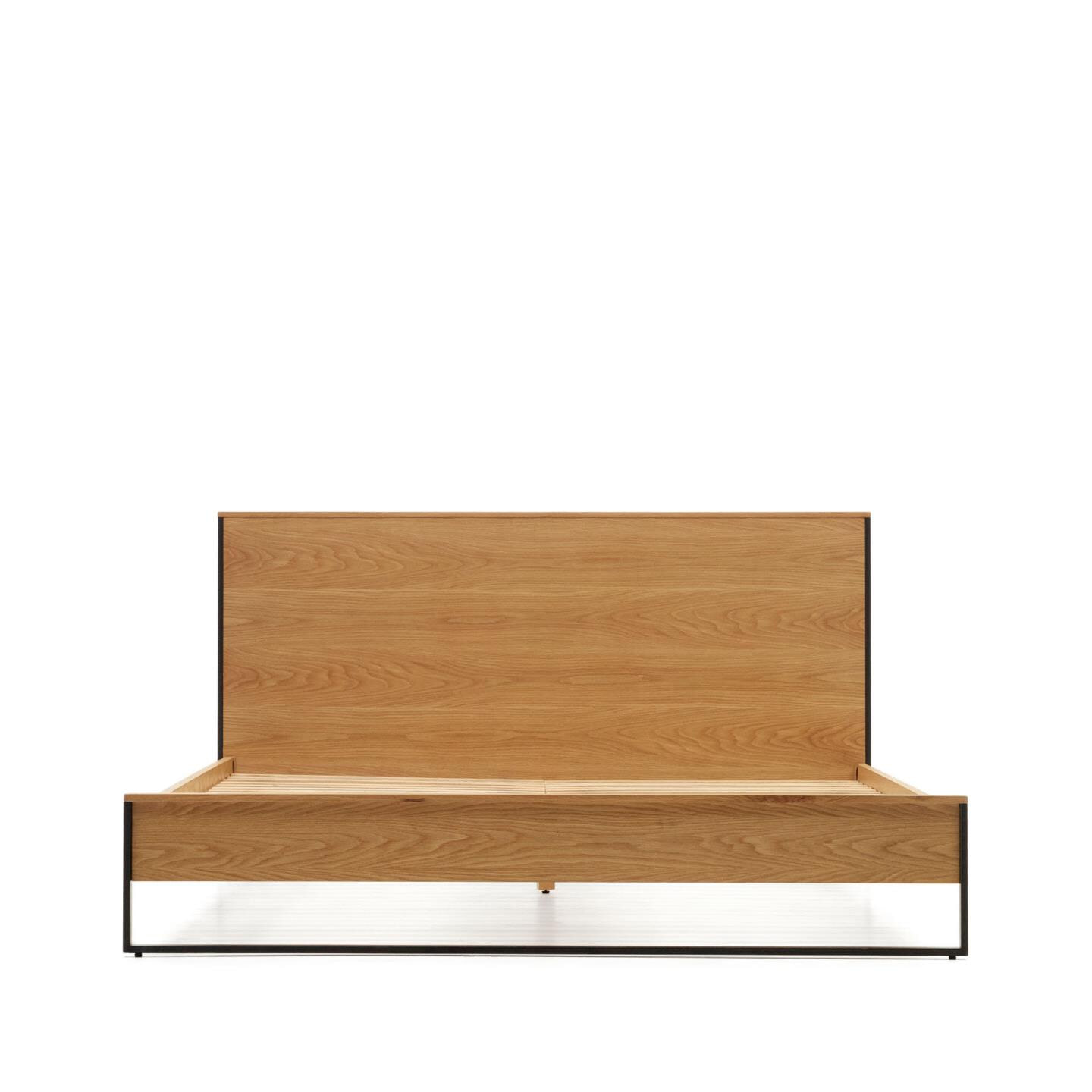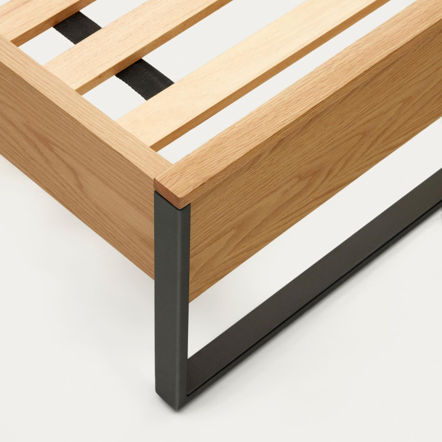 - Eiken fineer bed met zwart gelakte stalen poten voor een matras van 160 x 200 cm.