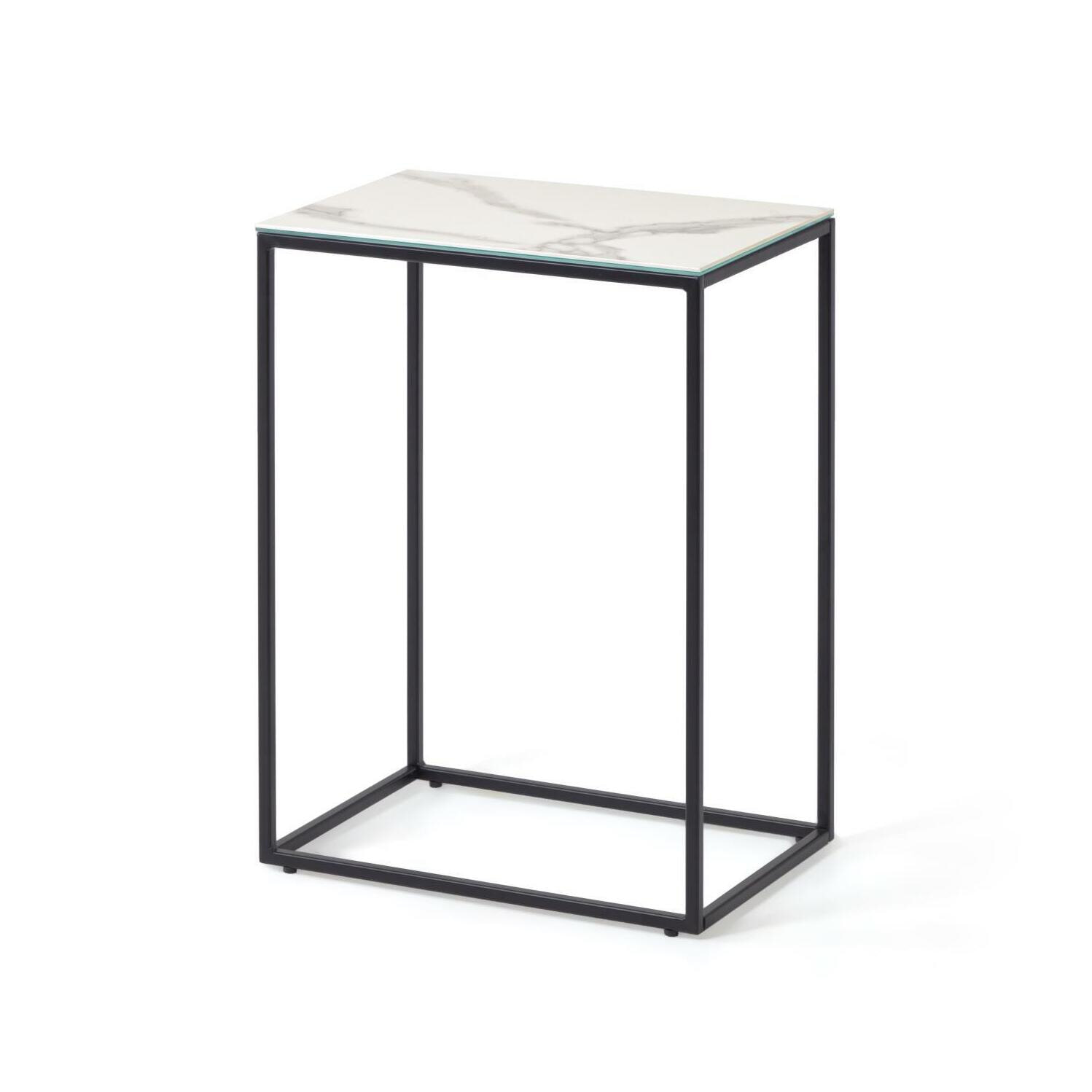 Kave Home Bijzettafel Rewena Keramiek met marmerlook, 45 x 30cm, kleur Wit