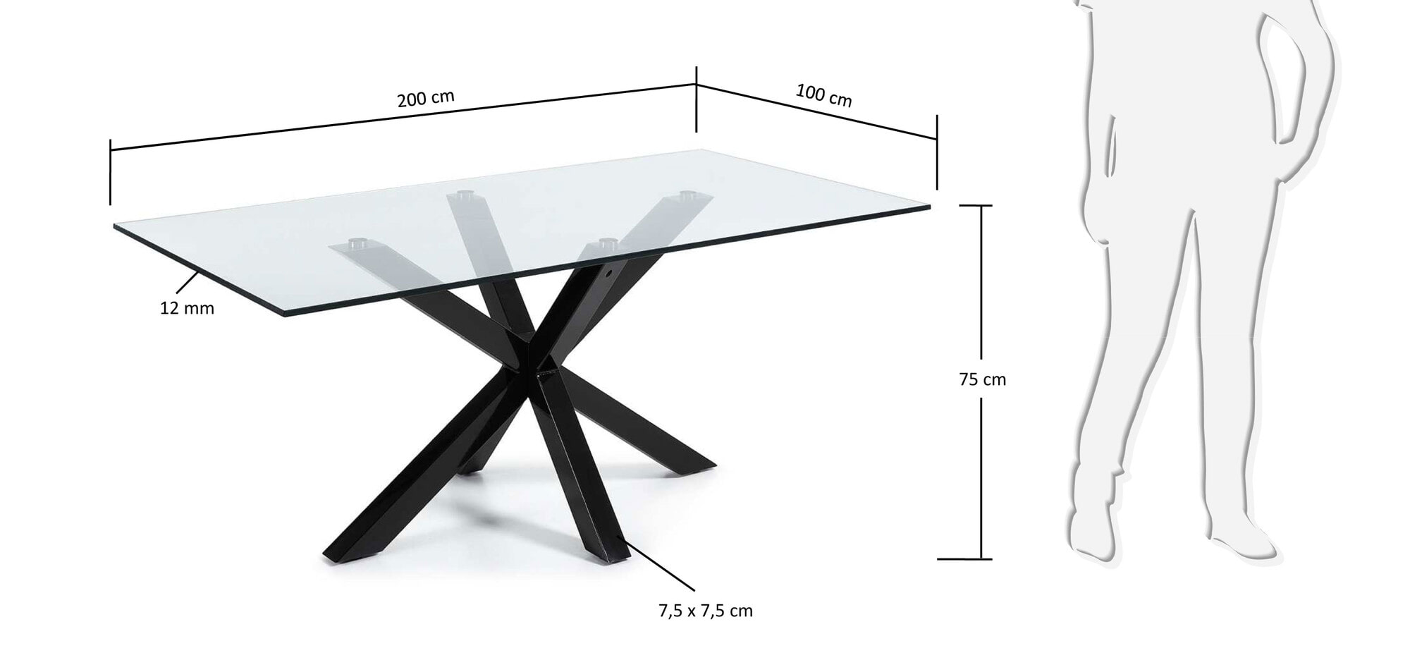 Kave Home Glazen eettafel 'Argo' met zwart onderstel, 200 x 100cm