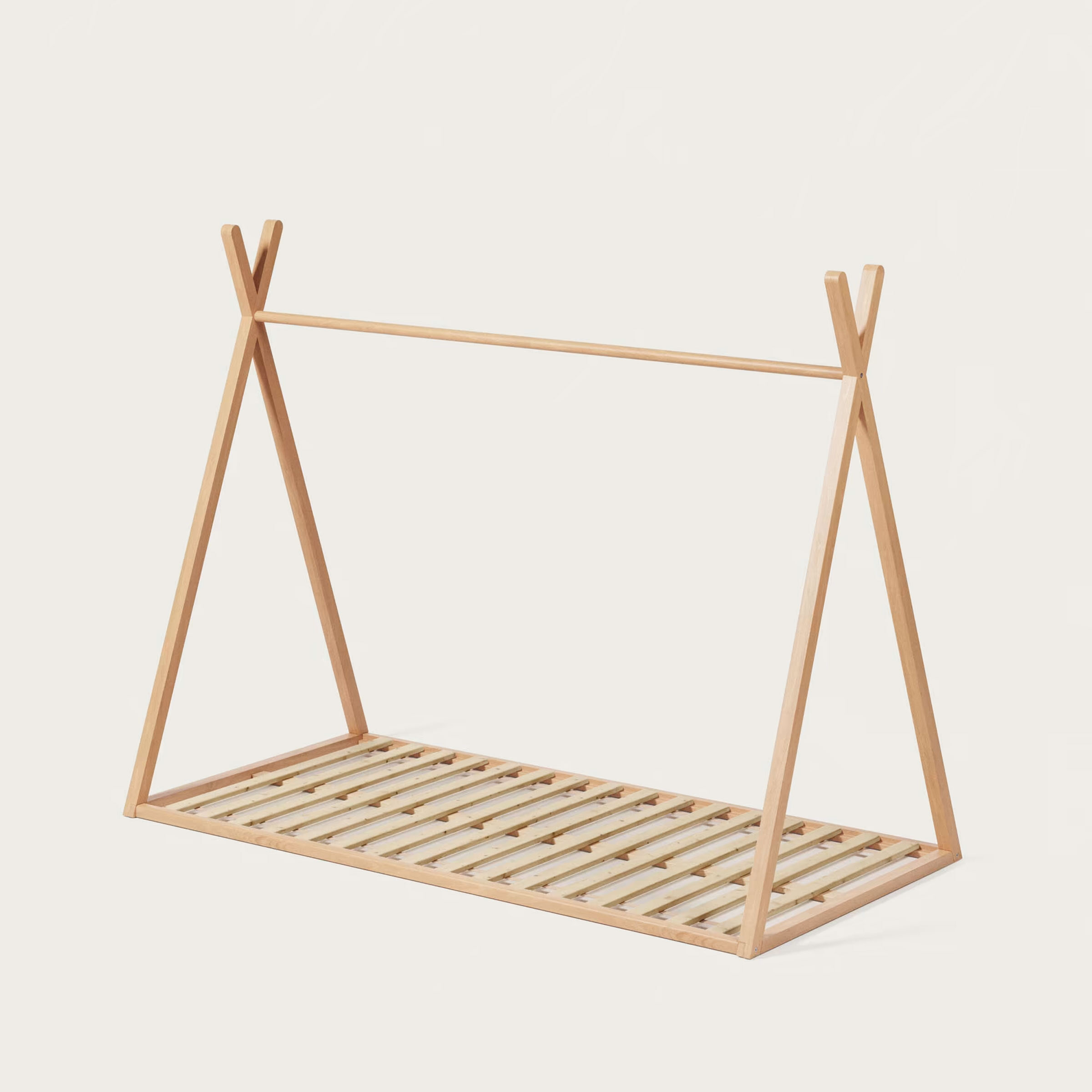 De beste manier om de fantasie van je kleintje de vrije loop te laten, is met dit massief essenhouten tipi-bed. Het bed heeft de vorm van een tipi en is laag, zodat het veilig is en de zelfstandigheid en bewegingsvrijheid van je kleintje stimuleert.