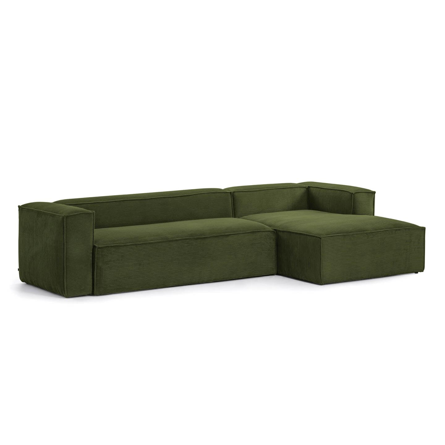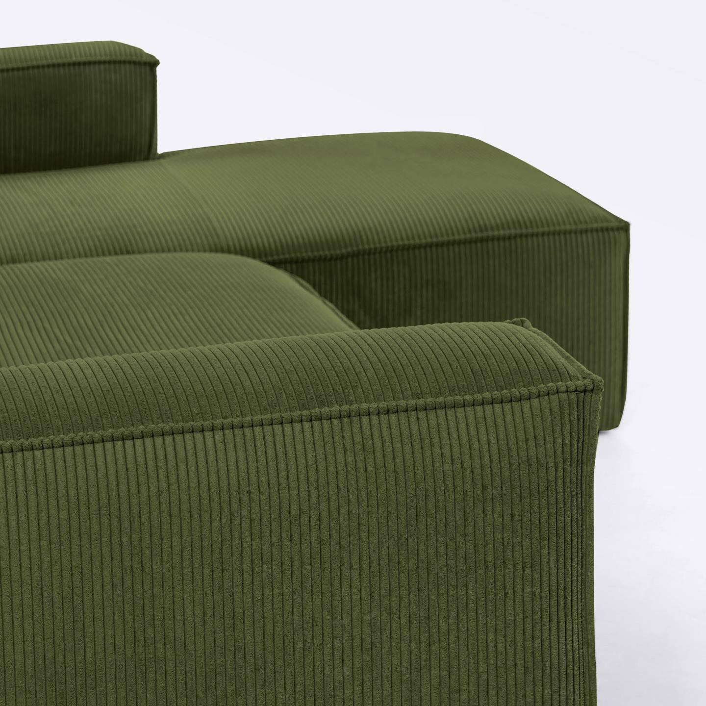 - 4-zitsbank met chaise longue bekleed met dik ribfluweel dat zeer zacht aanvoelt en een hoge weerstand heeft.