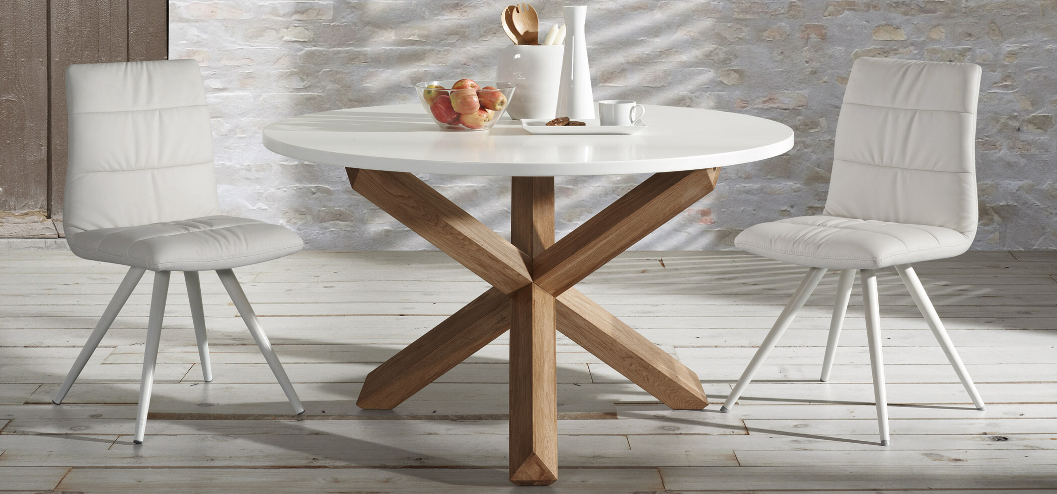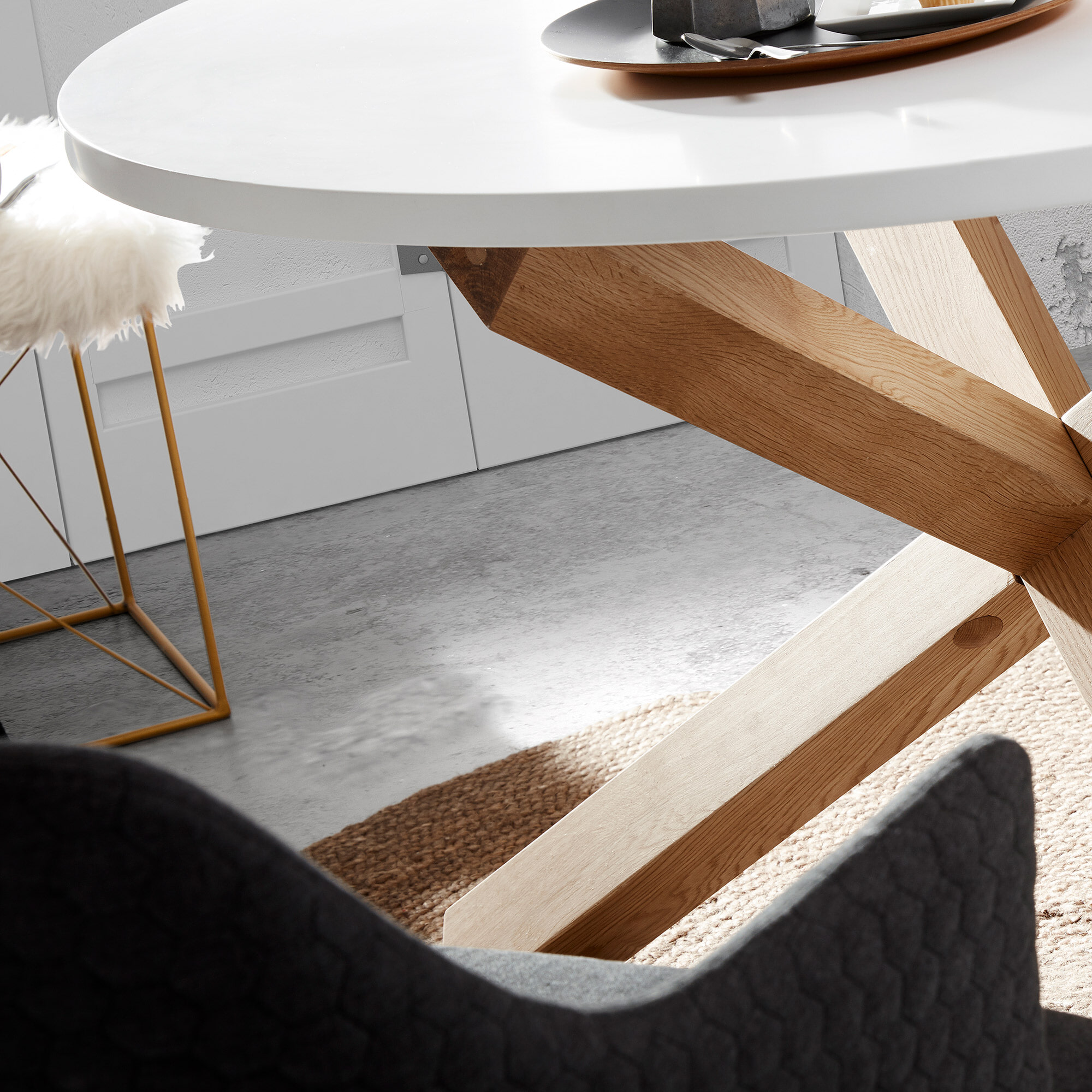 Kave Home Ronde Eettafel 'Lotus' 120cm, kleur Wit/Eiken
