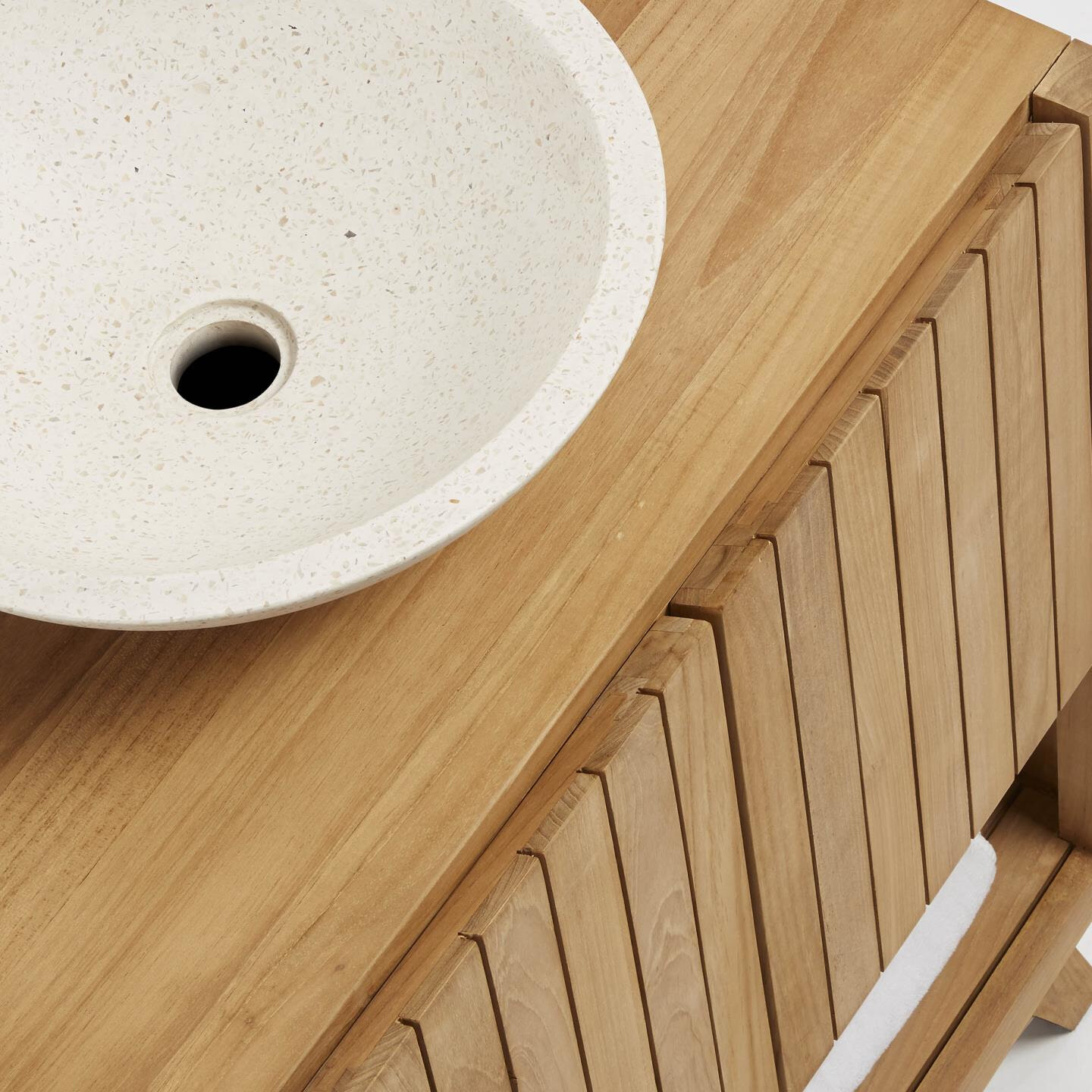 Maak je Kuveni badkamermeubel compleet met deze witte, terazzo wastafel. En creëer zo, gewoon thuis, je eigen spa.