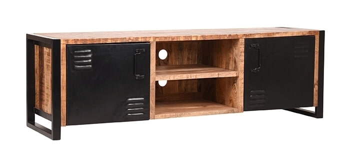 Tv-meubel Brussels in de maat 115 cm van LABEL51 is met zijn ruwe mango houten oppervlaktes, gecombineerd met een prachtig zwart metalen frame en robuuste deurtje een zeer industrieel en stoer meubel.