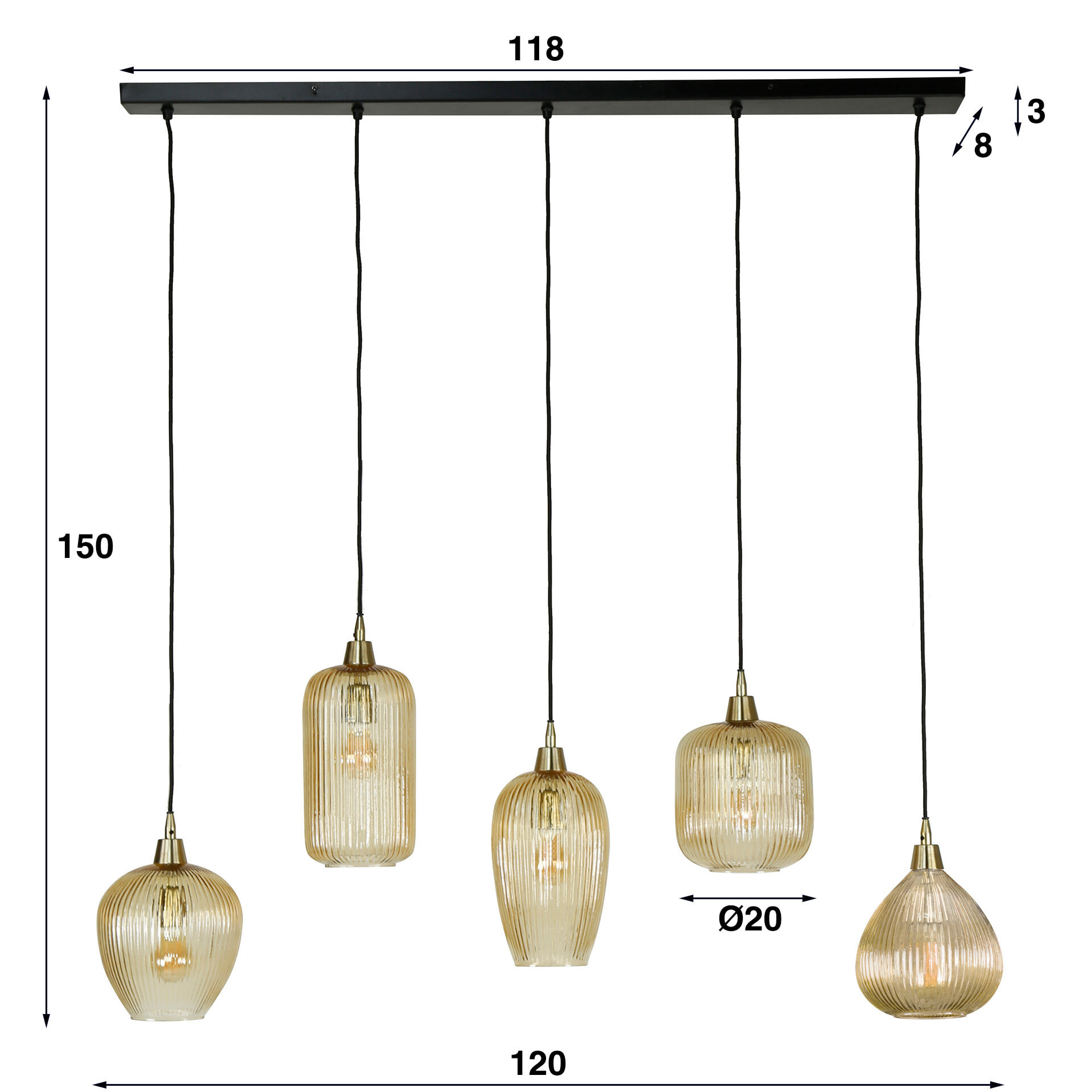 Deze stijlvolle hanglamp is een ware must-have voor liefhebbers van luxe en warme verlichting! De vijf kapjes, bestaand amberkleurig glas, zorgen voor een sfeervolle en chique uitstraling. Dankzij de warme tint van het glas wordt het licht op een zachte manier verspreid, wat bijdraagt aan een gezellige atmosfeer. De hoogte van de kappen is verstelbaar tot 150 cm, waardoor je eenvoudig een speels effect kunt creëren.