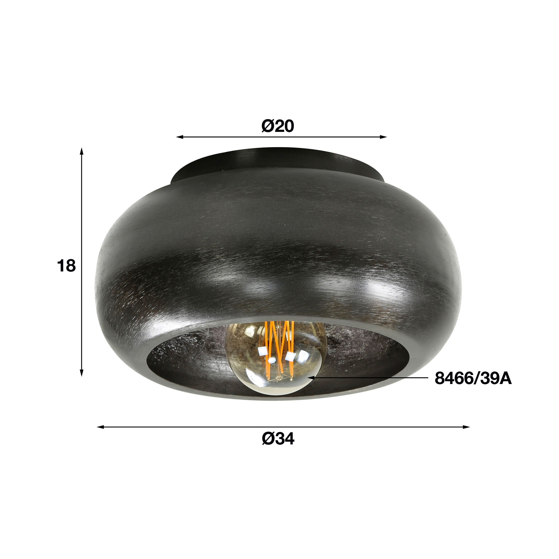 - Kap (afmeting): Ø34 cm, h = 18 cm
