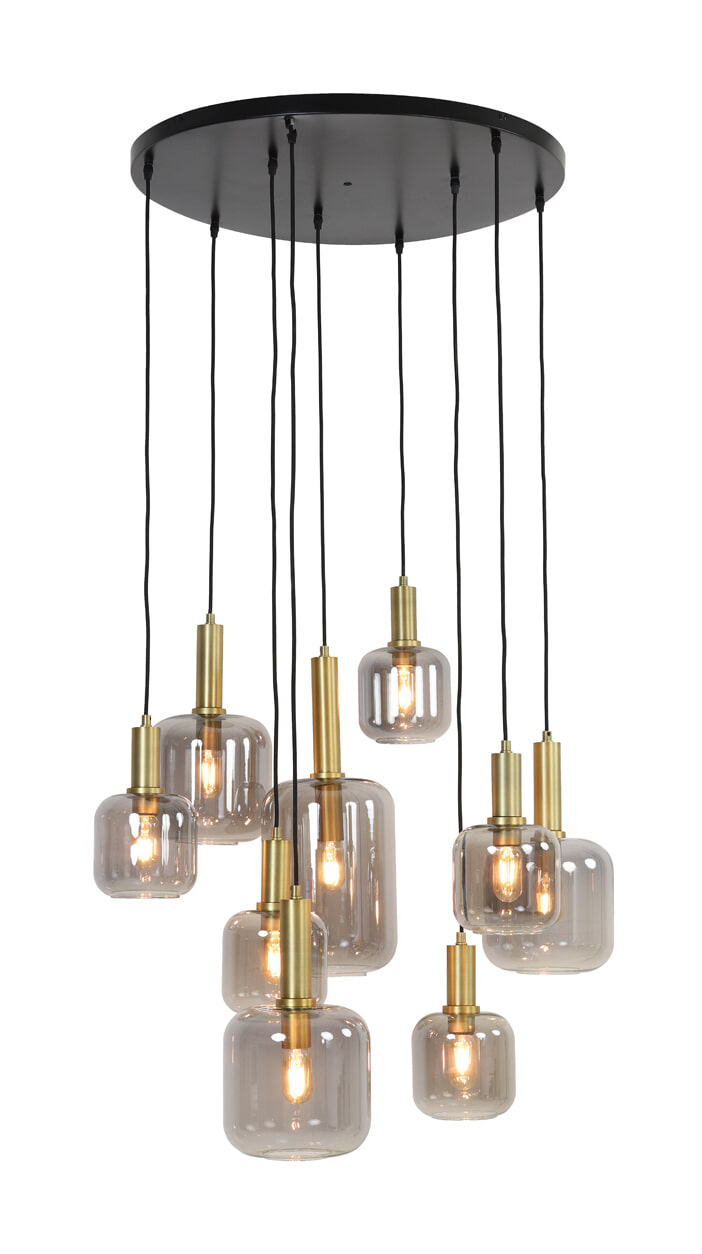 Light & Living Hanglamp Lekar 9-Lamps, kleur Antiek Brons/Smoke