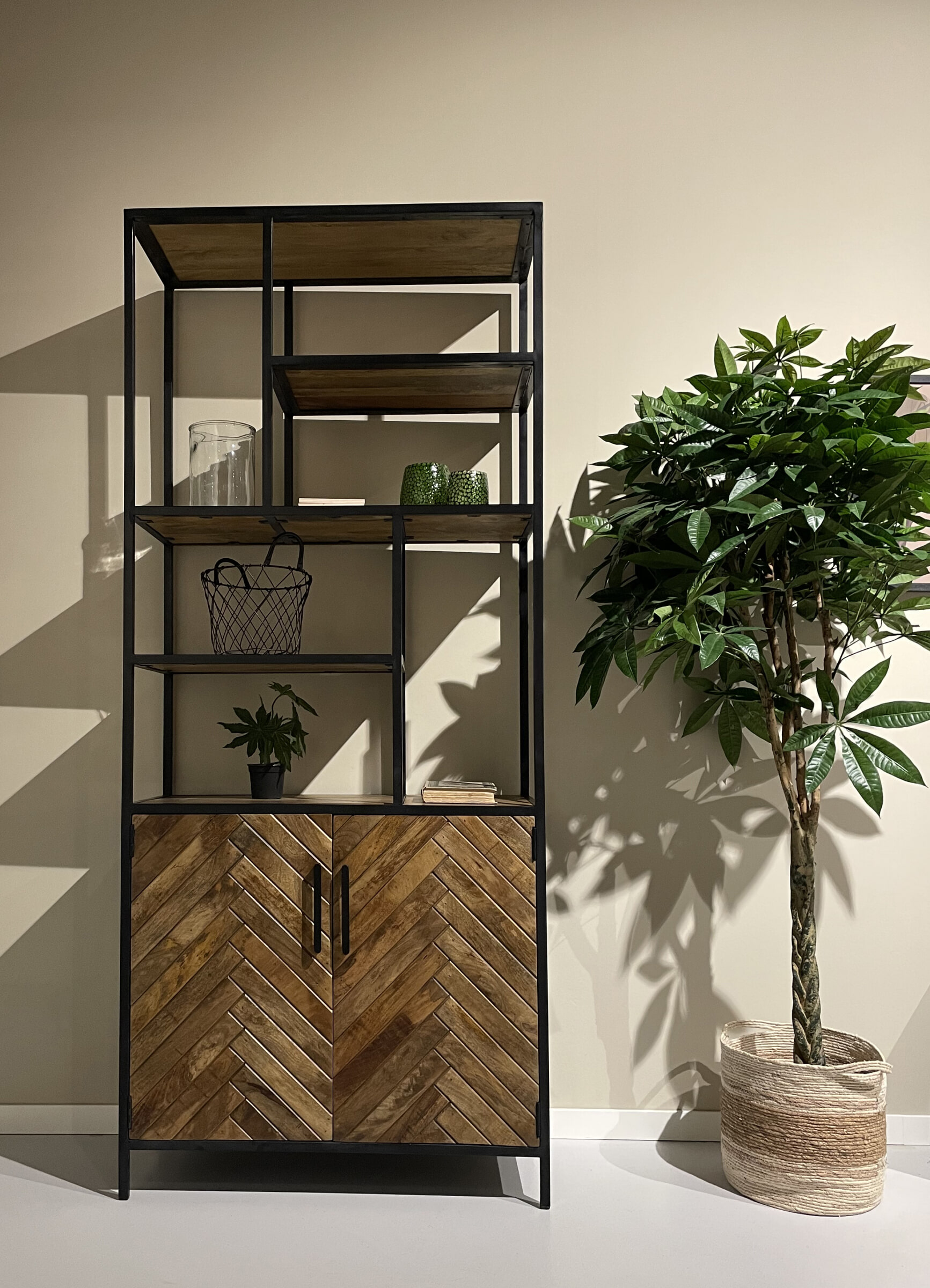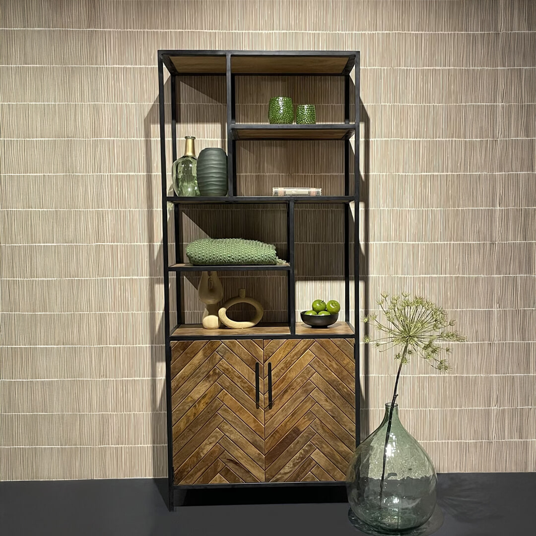 Livingfurn Wandkast Brooklyn Mangohout en staal, 210 x 90cm