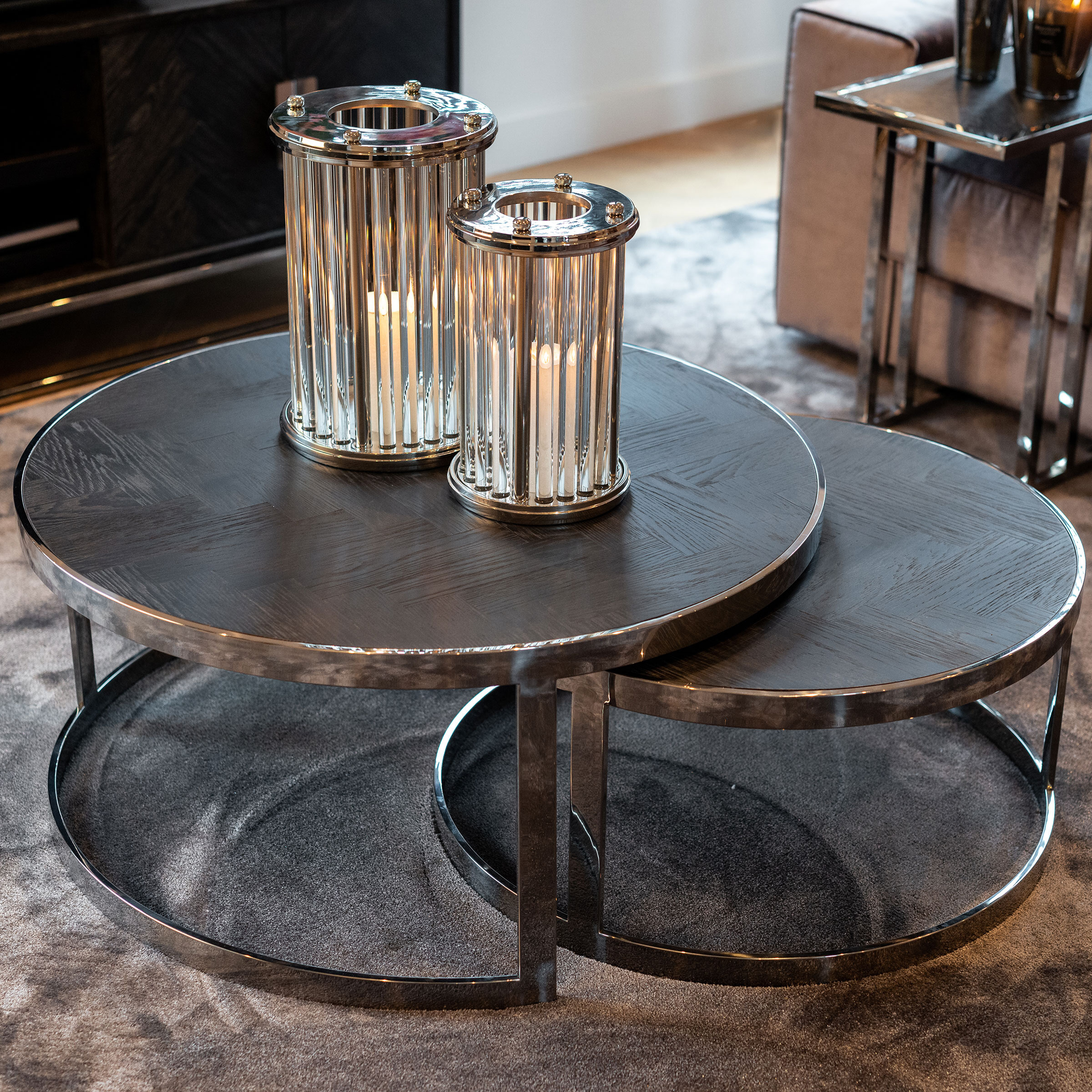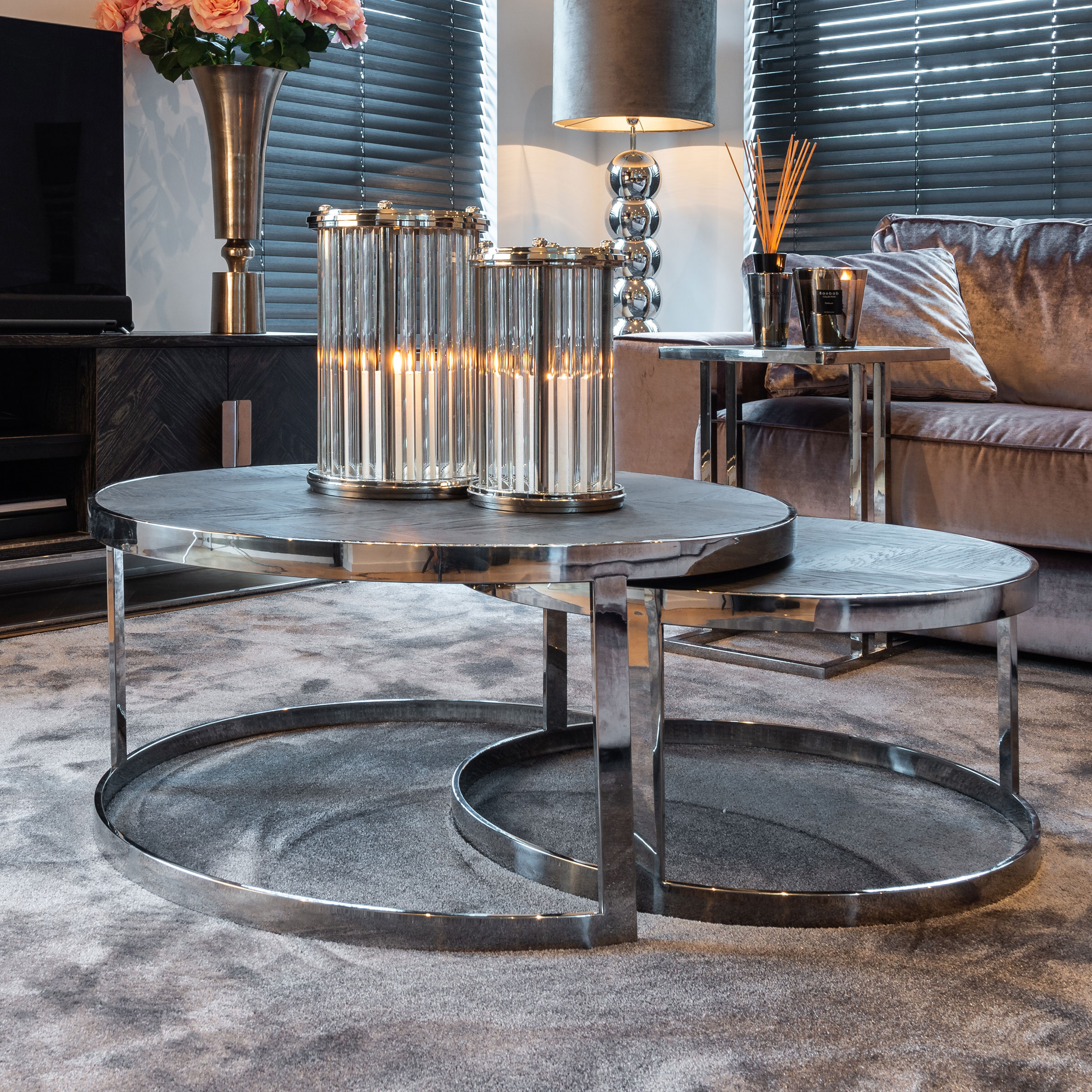 Salontafel Blackbone silver set van 2 rond is een verrijking voor je zithoek! Deze stoere, maar toch elegante salontafel set is gemaakt van zwart eiken met glimmend, zilverkleurig RVS.