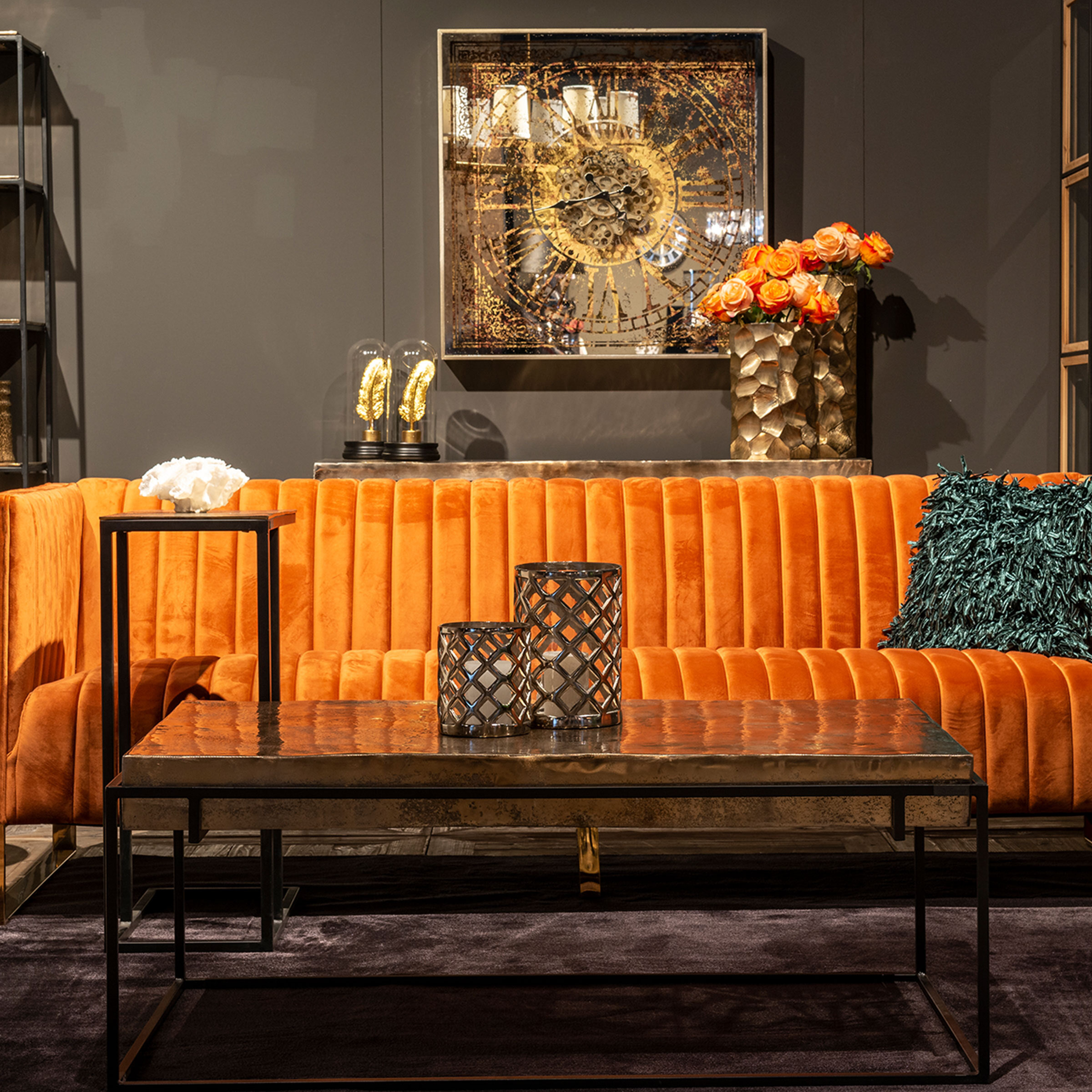 Salontafel Calloway champagne gold is gemaakt van aluminium met ijzeren frame.