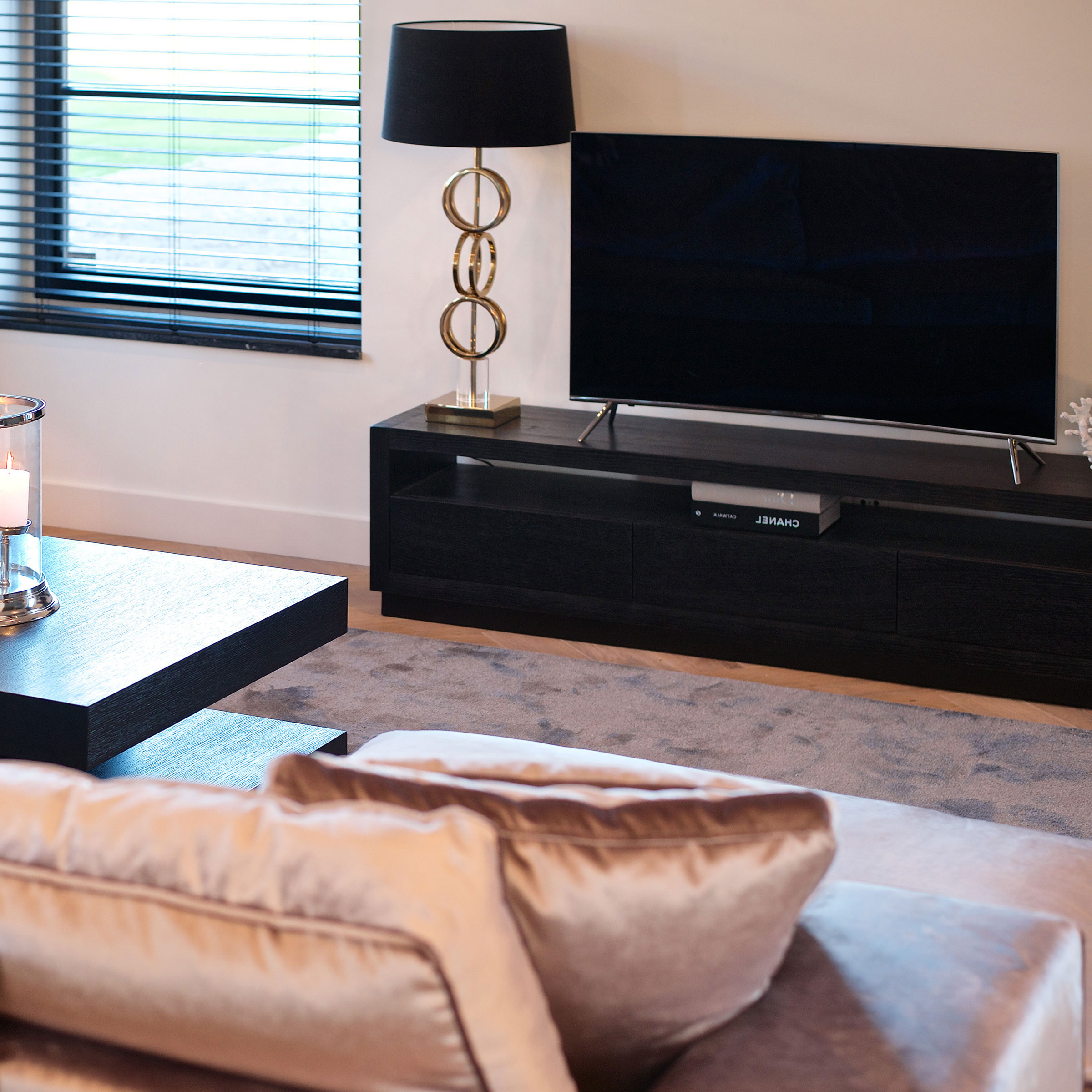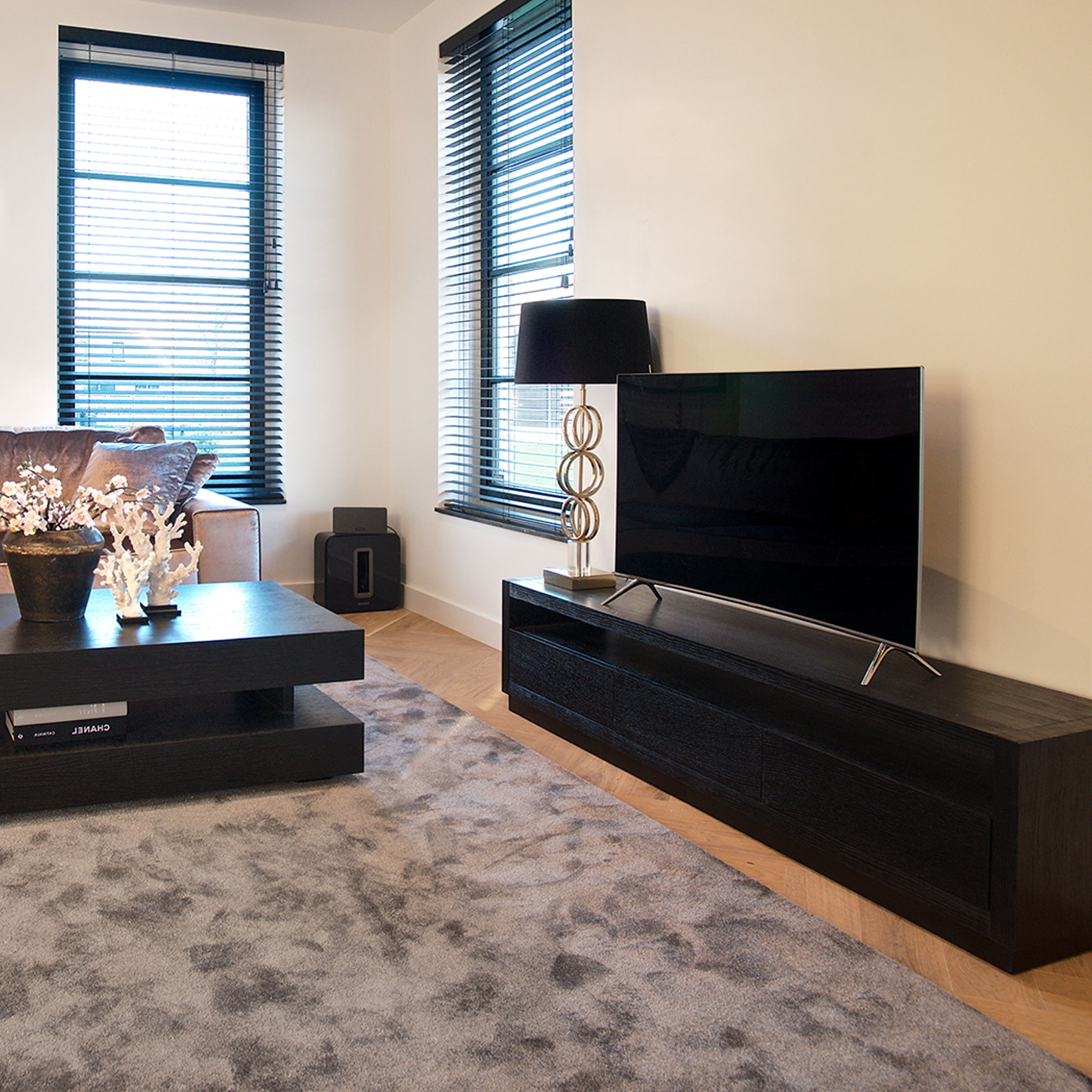 Basic met een stoere, chique touch. Combineer met twee smalle boekenkasten en top connection om een grote tv kast te creëeren.