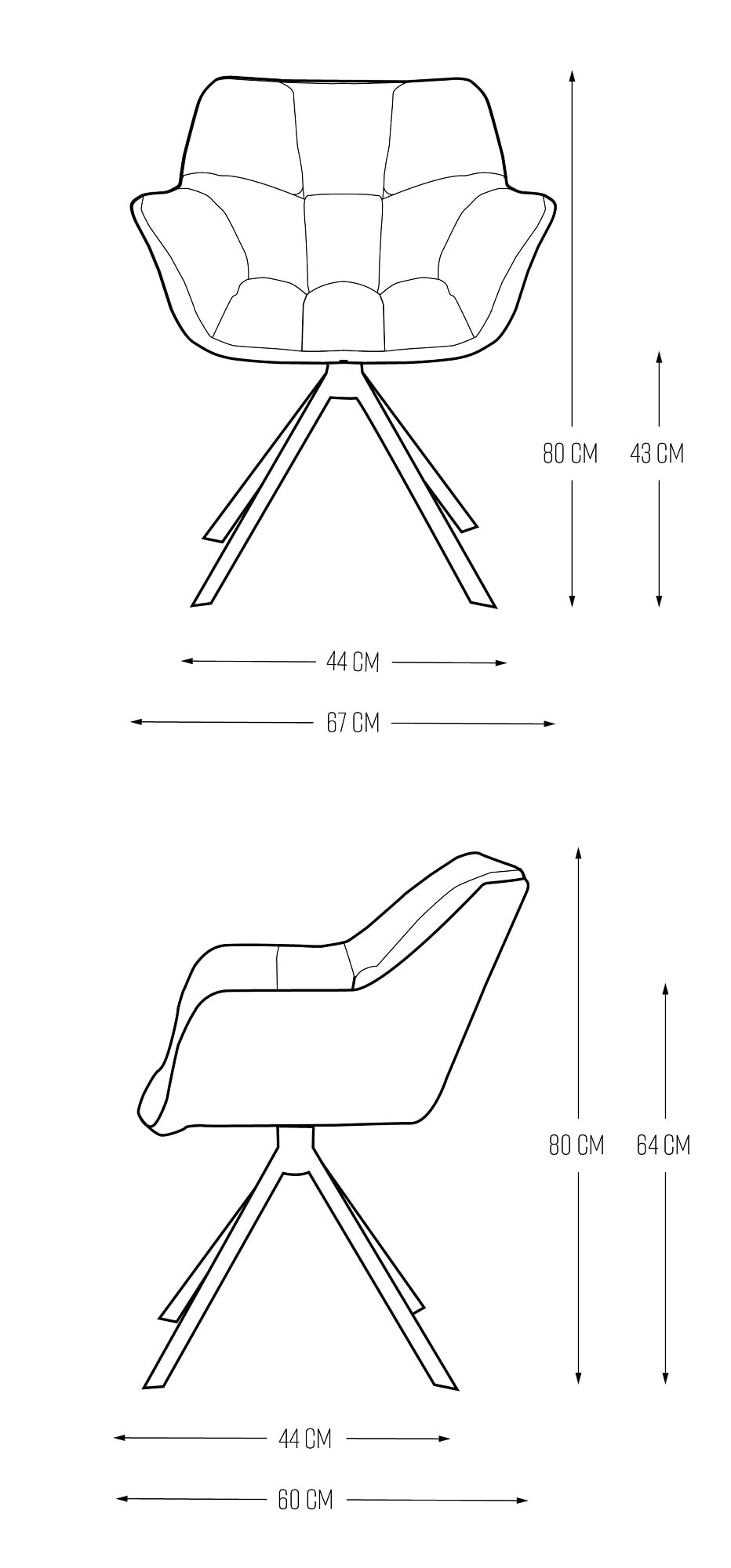 • Hoogte armleuning: 64 cm