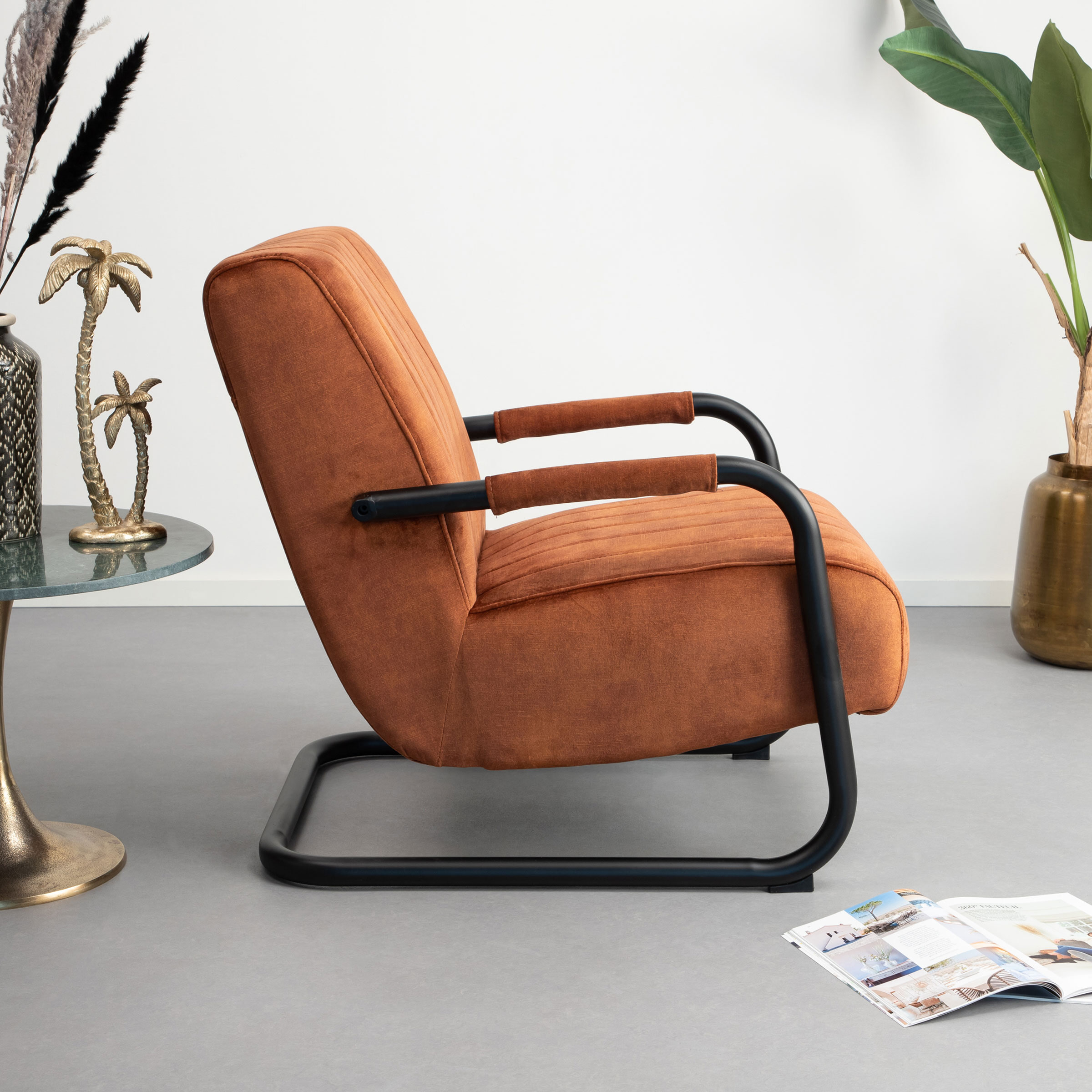 Het zwarte metalen onderstel zorgt in combinatie met de velvetstof voor een twist. Dit frame loopt door in de armleuningen. Geef fauteuil ‘Raisa’ een prominente plek in je woonkamer of zet ‘m in je slaapkamer. Zo wordt jouw slaapkamer niet alleen een plek waar je slaapt, maar ook waar je heerlijk tot rust komt met een kop thee en een goed boek voordat je je bed instapt.