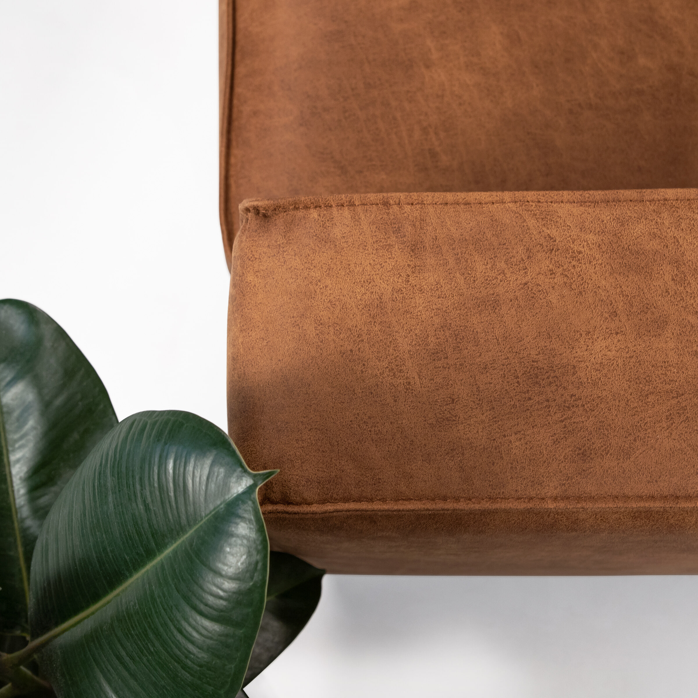 Deze bank uit de Sohome collectie is bekleed met microleder. Dit is een mooie stof die fijn aanvoelt. Een opvallend detail is de vlindernaad aan de randen van de loungebank. De metalen sledepoot onder de bank maken het geheel helemaal af.