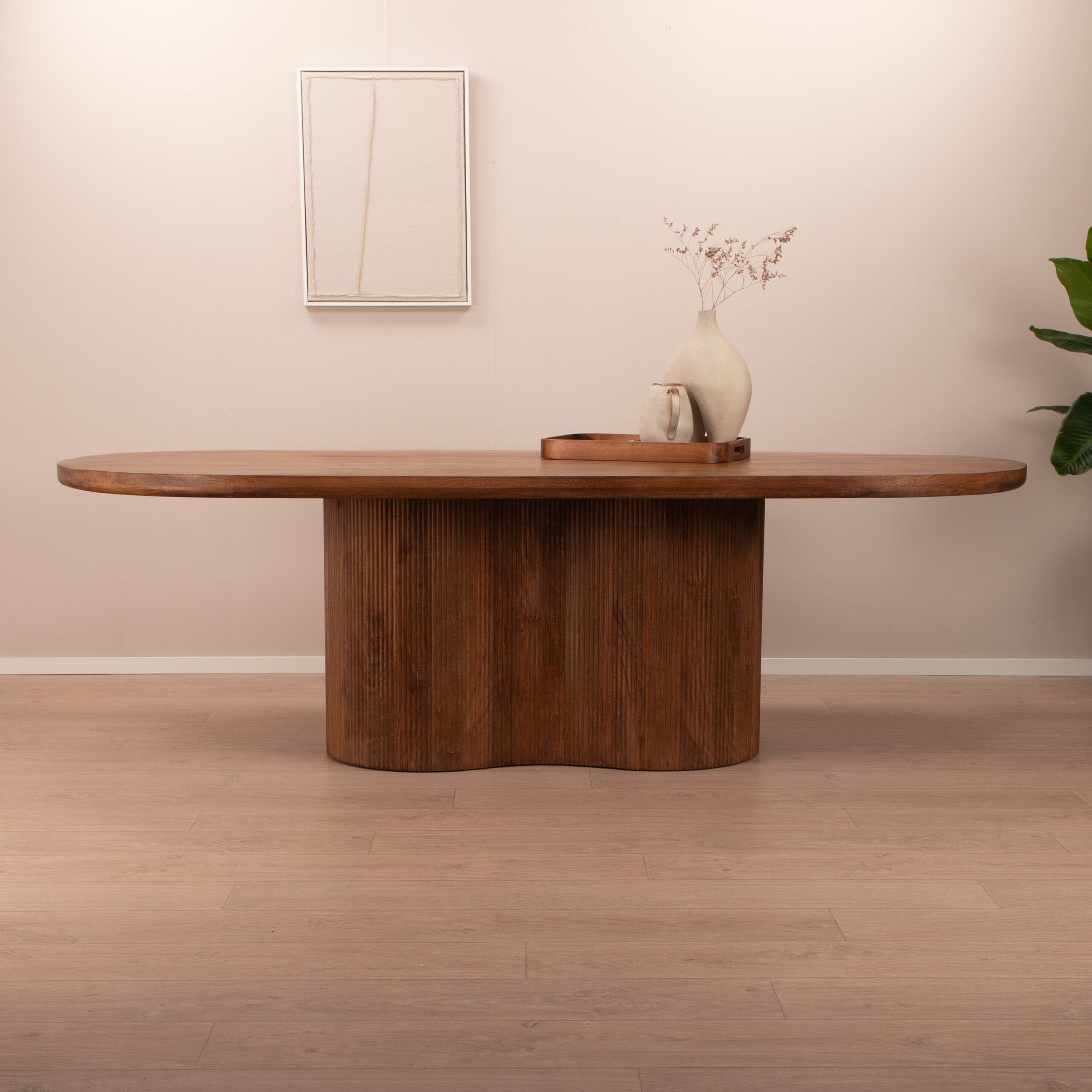 Ontdek de unieke Sevilla eetkamertafel van Livingfurn die uit duurzaam hardhout is vervaardigd. Deze prachtige eetkamertafel kenmerkt zich door de middenpoot met een golvend design, dat een vleugje elegantie toevoegt aan elke ruimte. Met de Sevilla eetkamertafel haalt u een waar pronkstuk in huis, perfect passend in uw interieur.
