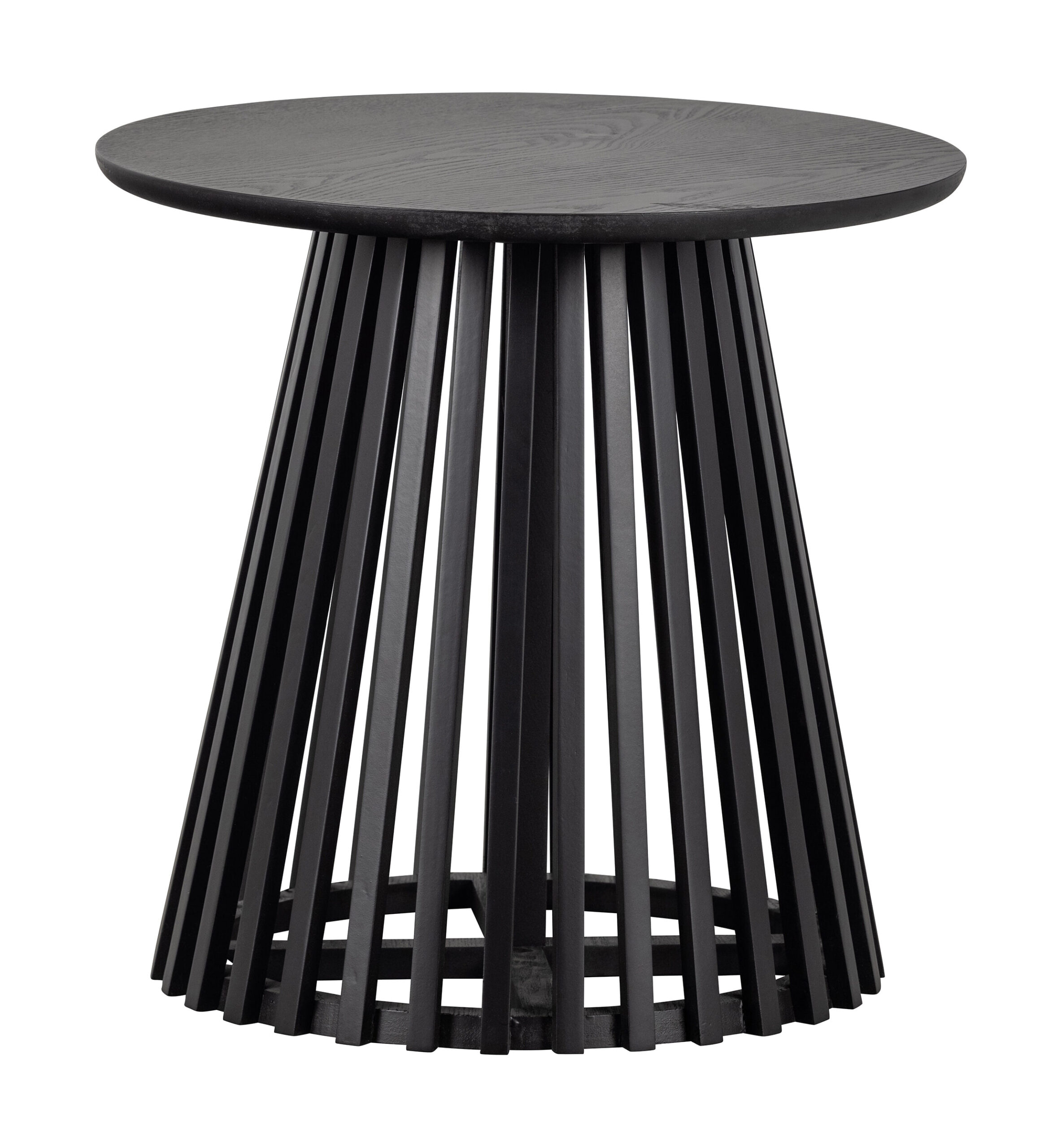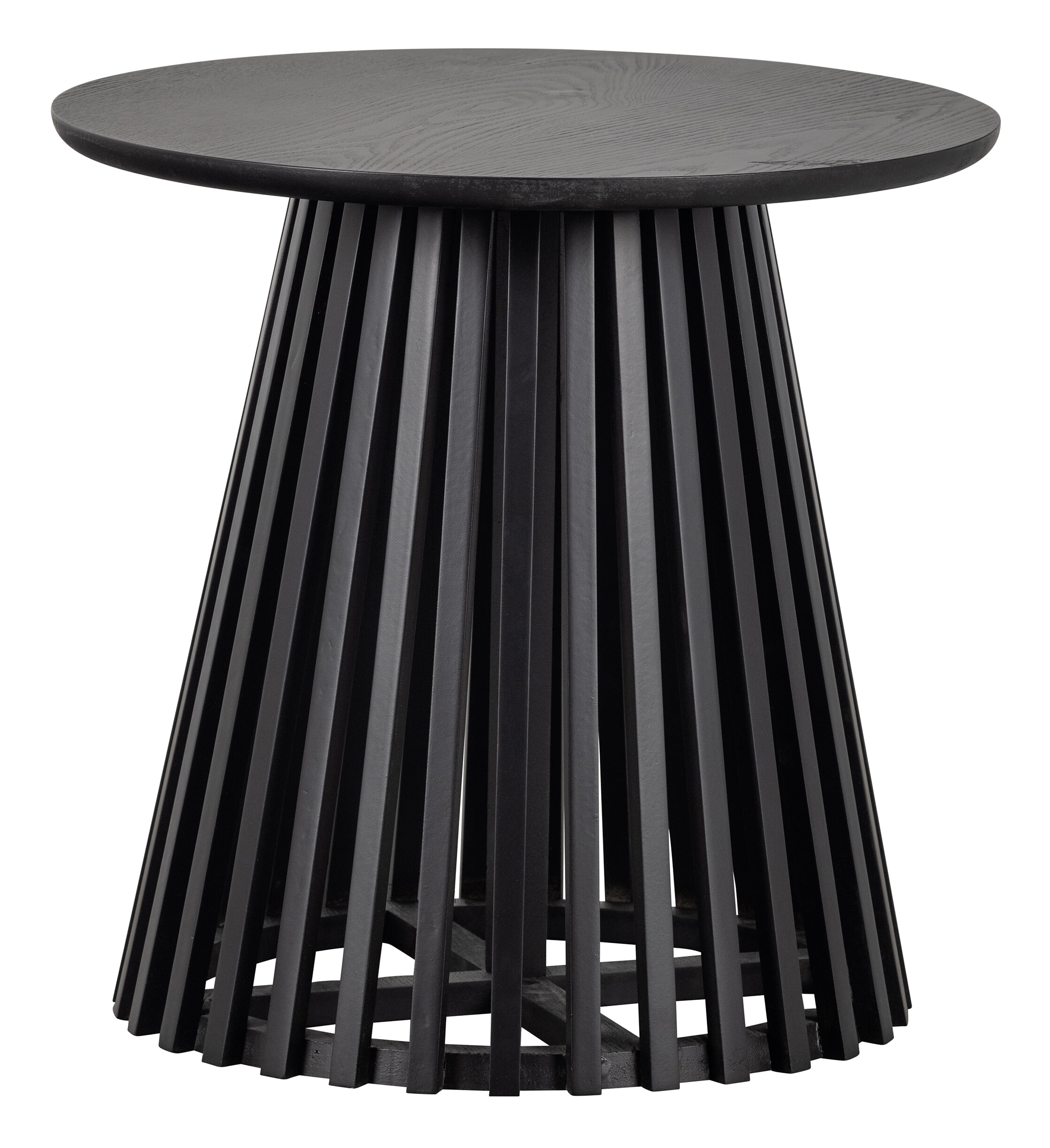 Slats High heeft een hoogte van 48 cm. Het tafelblad is ø 50 cm en heeft een dikte van 2 cm. De latten van de poot zijn verbonden aan houten ringen, aan de onderzijde is deze ø 45 cm en bij het blad ø 20 cm.