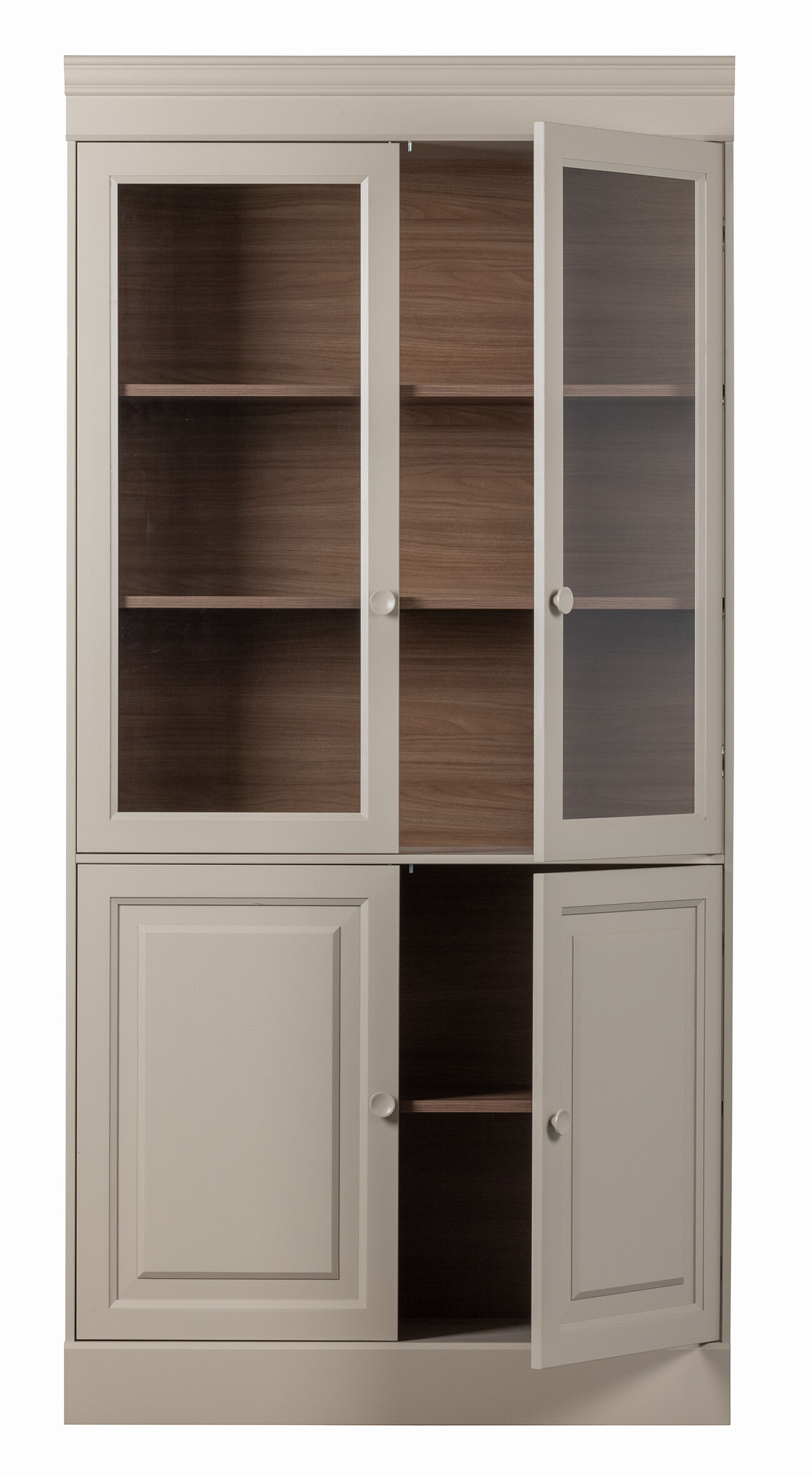 Het onderste deel is gesloten, wat zorgt voor een mooi evenwicht in het ontwerp. De sierlijst aan de bovenzijde en de verfijnde afwerking geven de kast een chique, bijna tijdloos karakter. Chow past perfect in een interieur waar klassieke charme en eigentijdse elegantie samenkomen.