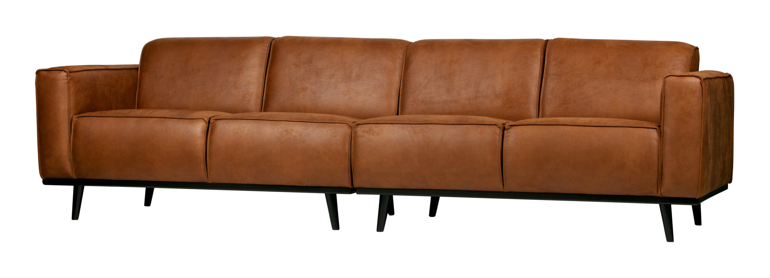 De naam van deze bank zegt genoeg, toch? Een bank als deze staat als een duidelijk element in huis. Een bank bepaalt de sfeer van het interieur en deze bank biedt een goede basis voor meerdere woonstijlen. Het design van Statement is basic, maar valt door de omvang natuurlijk wel op. Deze ruime 4-zits bank biedt ruimte genoeg voor het hele gezin en zit heerlijk. Deze bank Statement past perfect in de collectie van WOOOD, is puur en stoer en bestaat uit meerdere varianten, stoffen en kleuren. Deze variant is voorzien van Recycle leer in een cognac kleur.