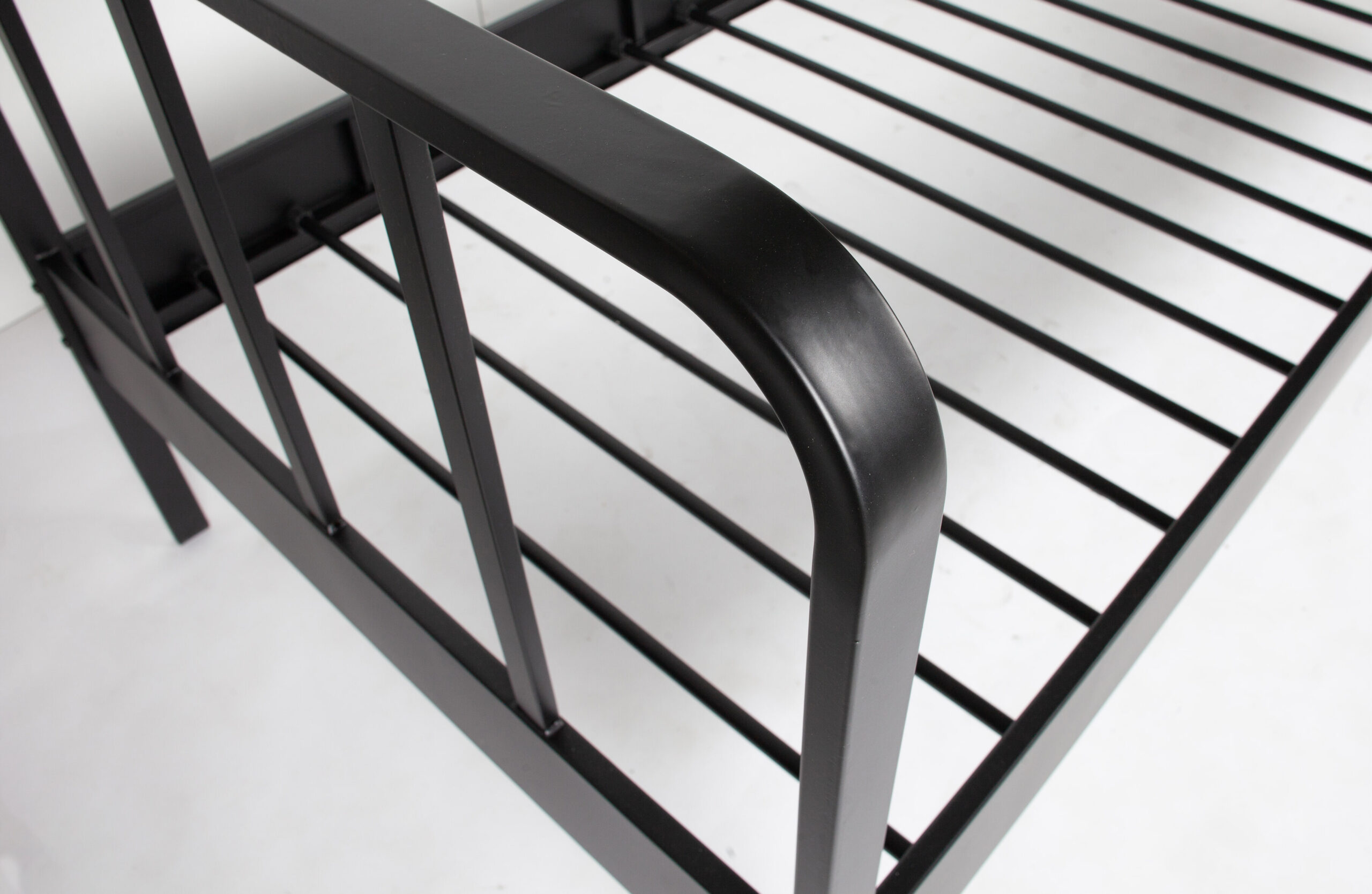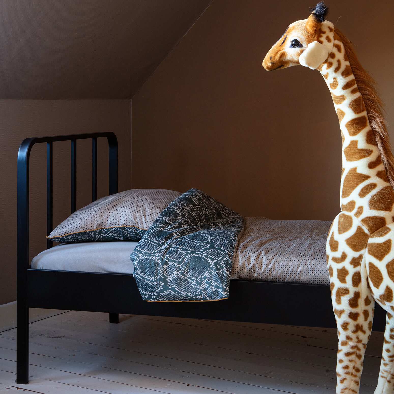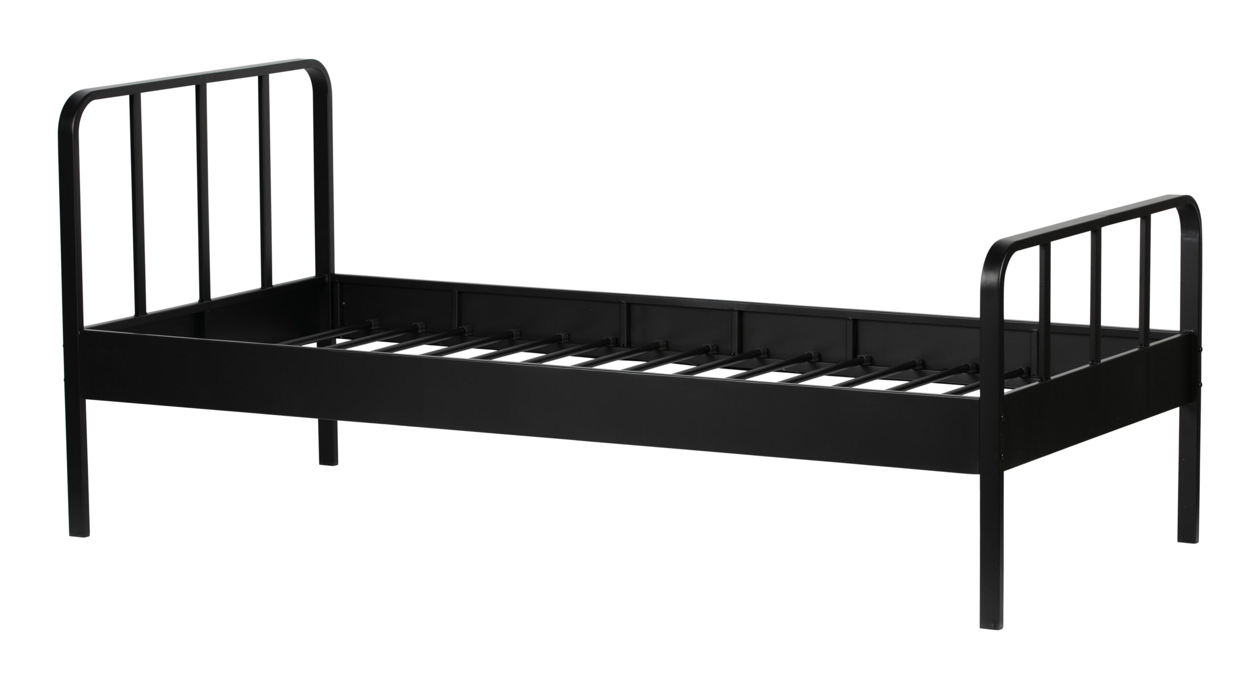 Dit stoere en moderne bed Mees komt uit de collectie van het Nederlandse merk WOOOD. Het is een echte aanwinst voor elke kinderkamer! Het frame is gemaakt van staal dat is afgewerkt met een zwarte poedercoating. De lattenbodem is gemaakt van metaal en heeft 16 spijlen. Het bed Mees is geschikt voor matrasmaat 90×200 cm. Het bed wordt exclusief matras geleverd.