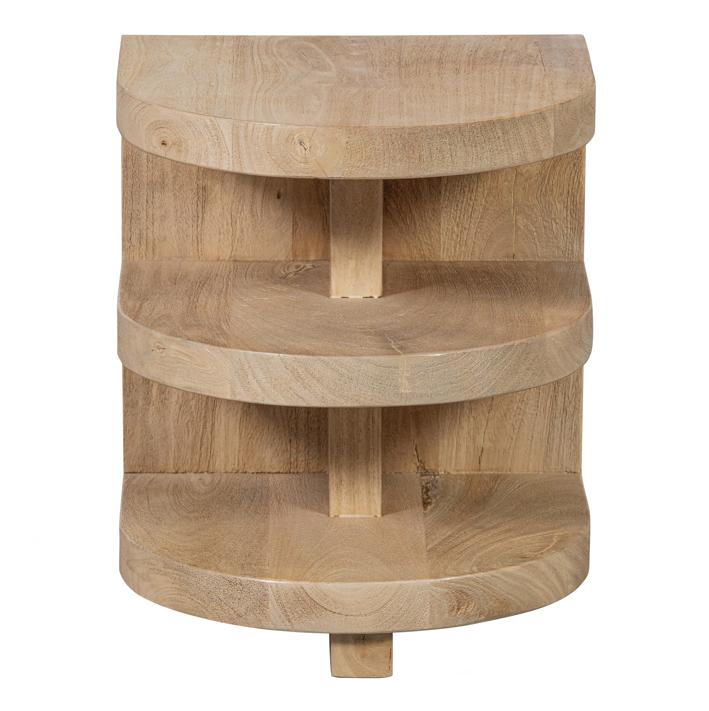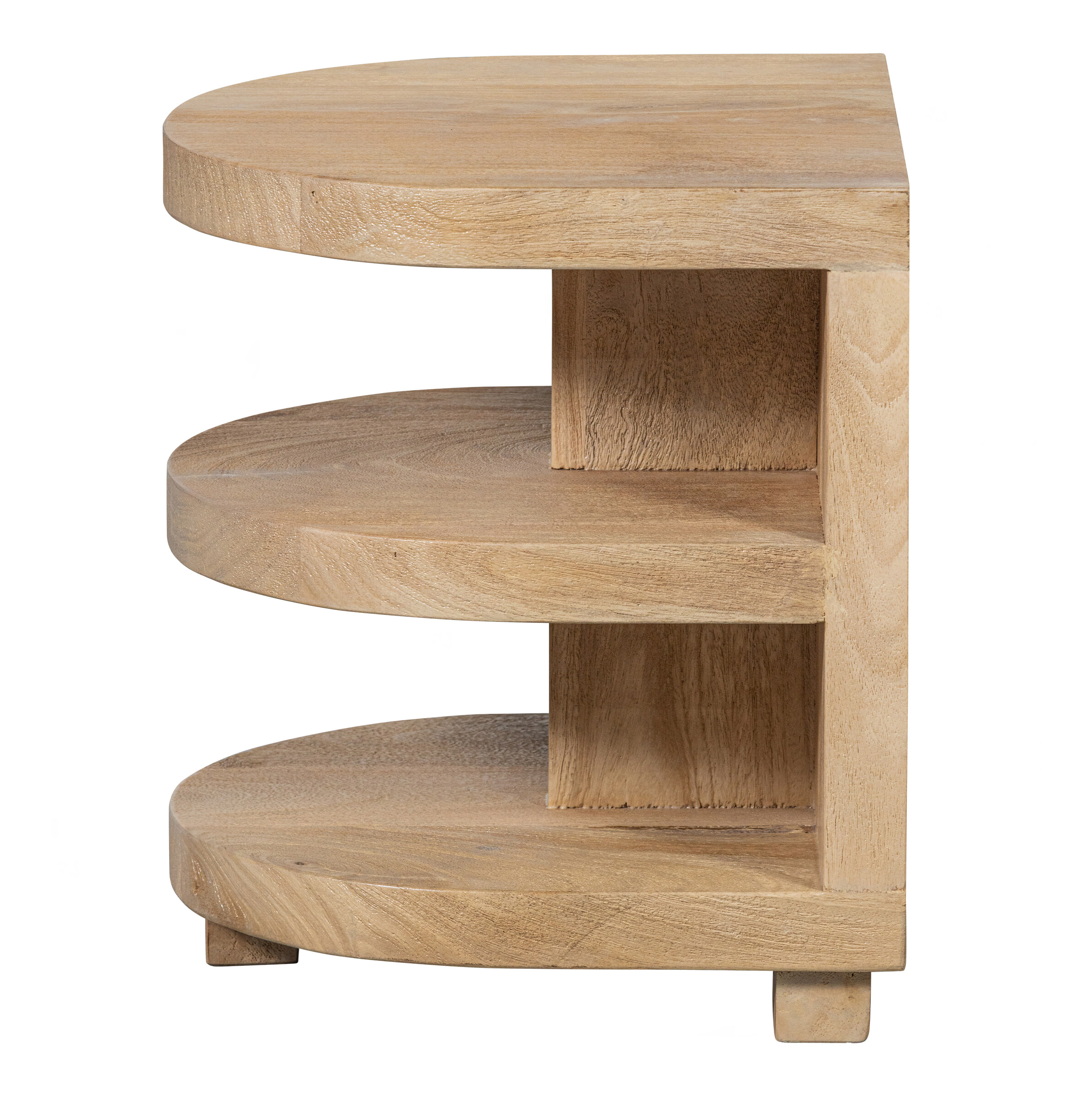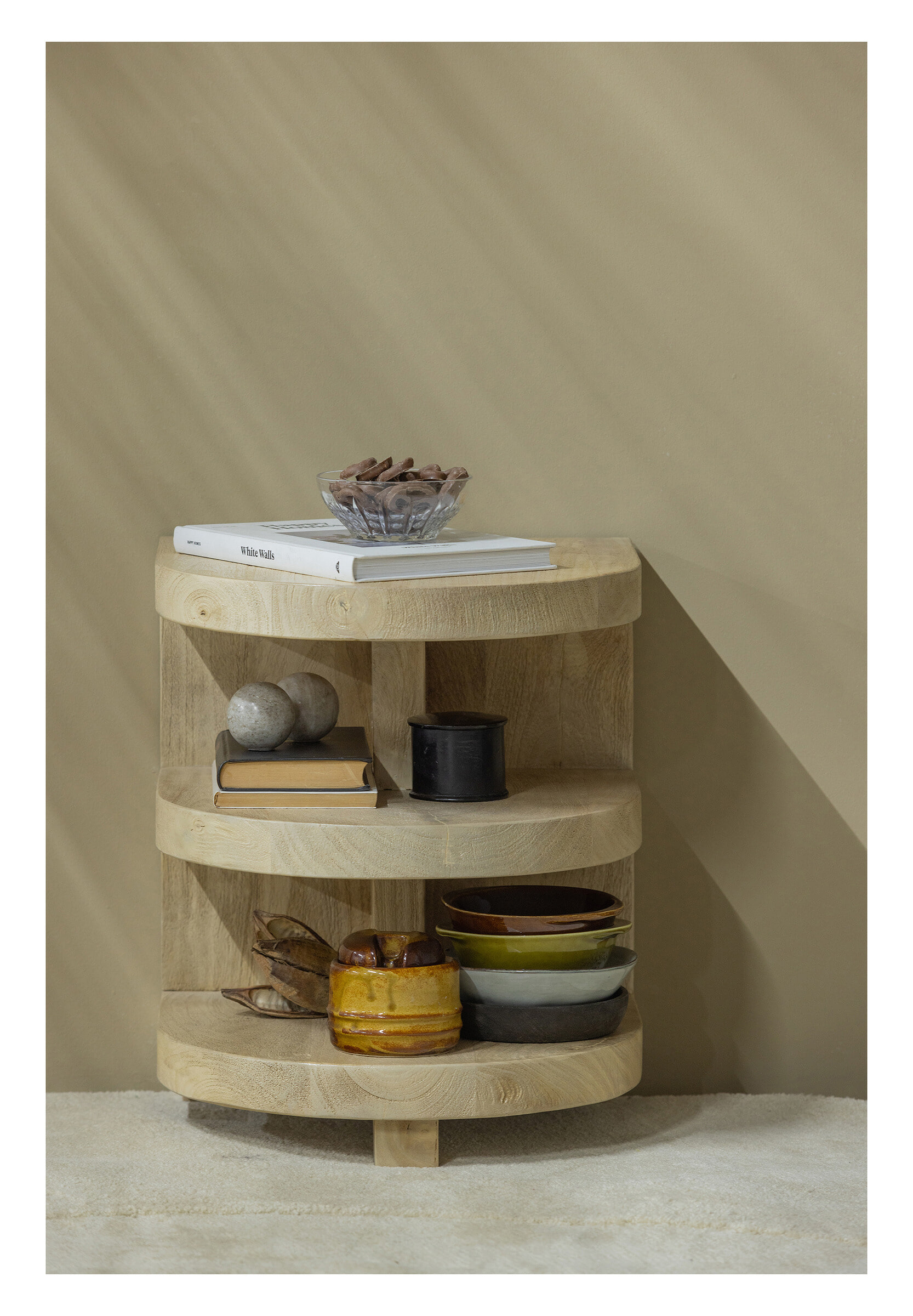 De Darren halronde bijzettafel komt uit de collectie van het Nederlandse interieurmerk WOOOD en is opvallend door het afgeronde design en robuuste houtgebruik. Het mangohouten item heeft een matte, naturel finish wat Darren een tijdloze uitstraling geeft.